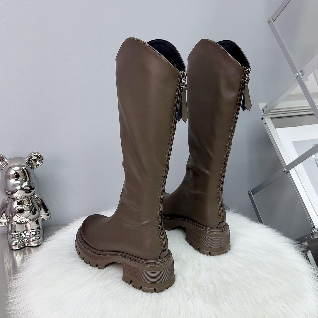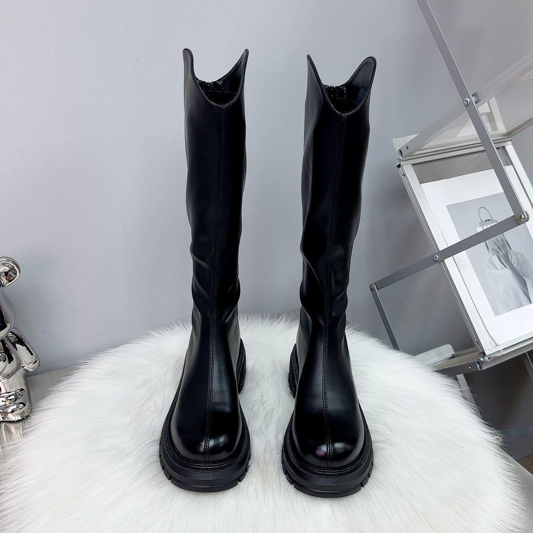 赵露si同款长靴子高筒厚底增高马蹄跟机车靴骑士靴女ins潮35-40
