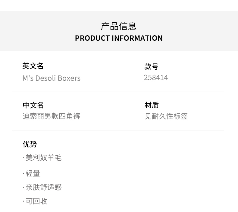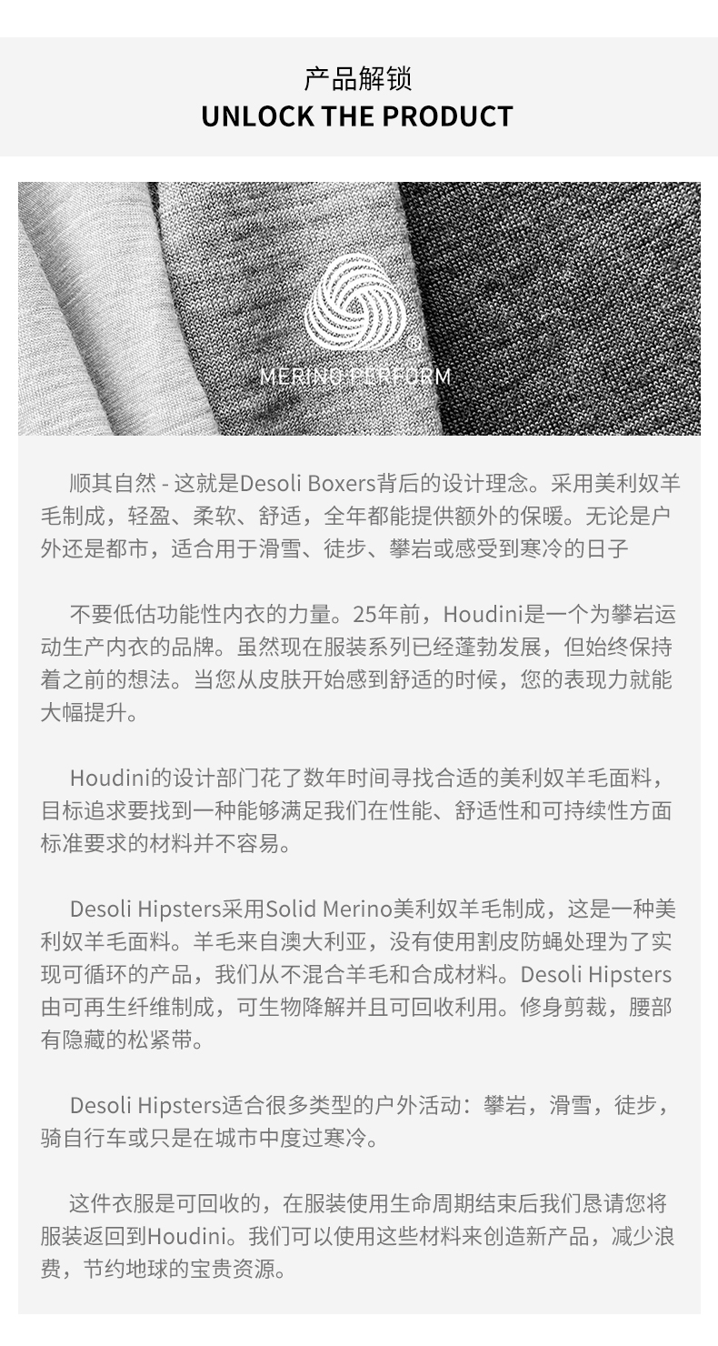 HOUDINI胡丁尼Desoli 迪索丽 男款美利奴羊毛内衣短裤258414