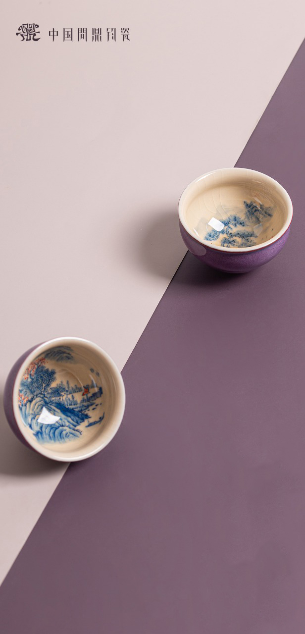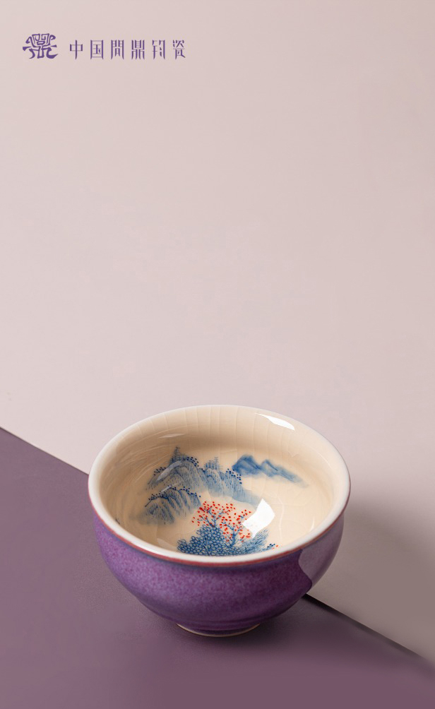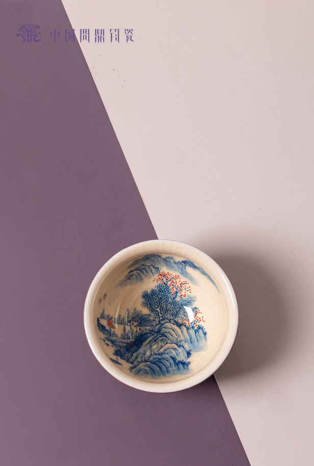 问鼎钧瓷鹅黄青花闲意杯(山栖谷隐)