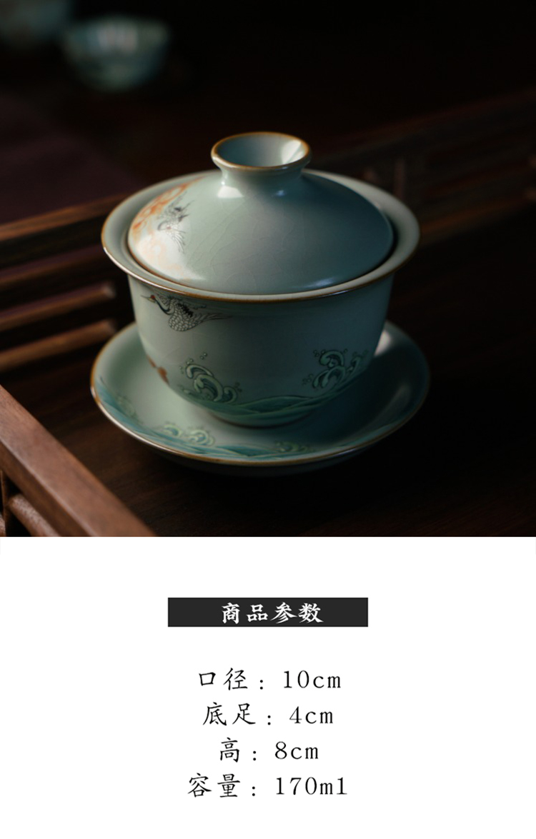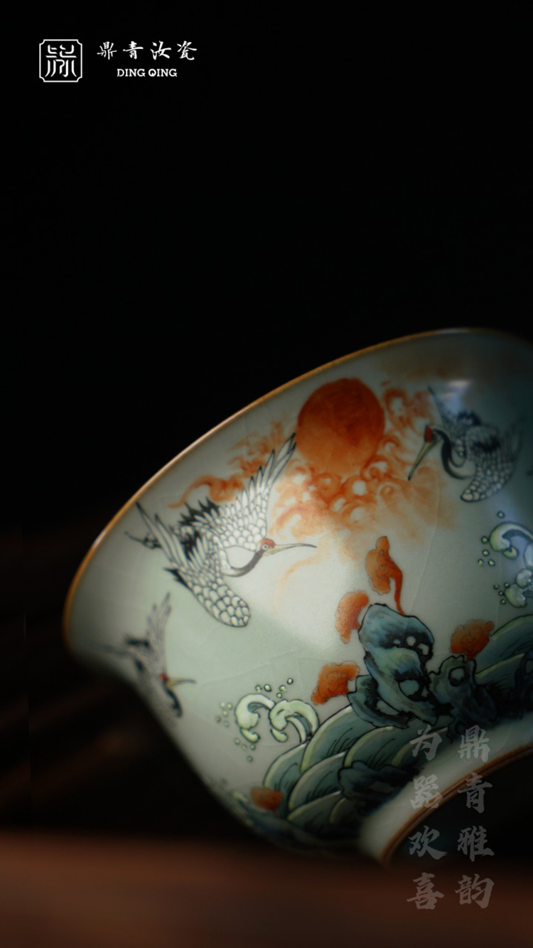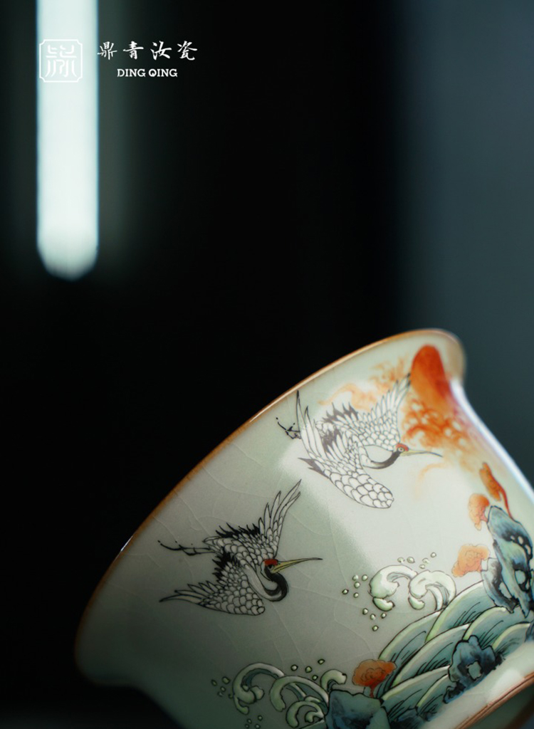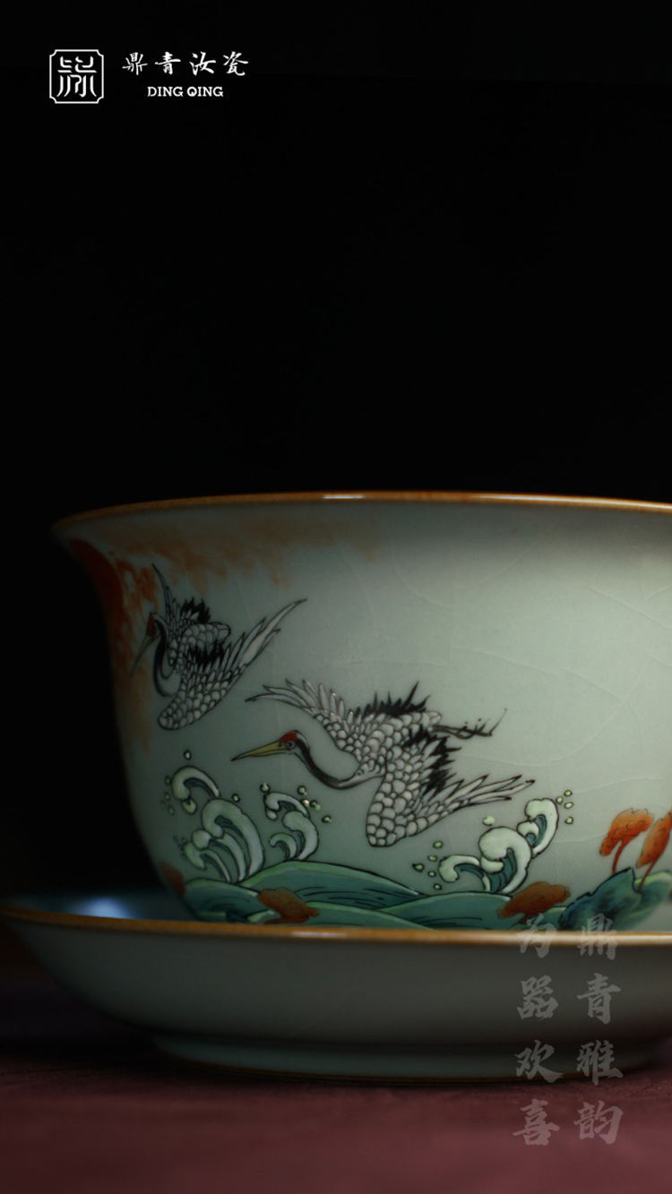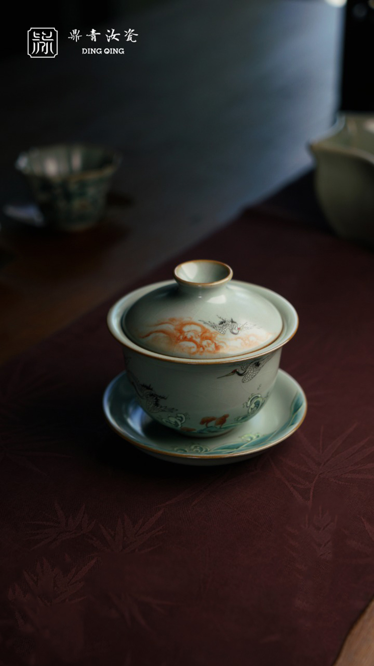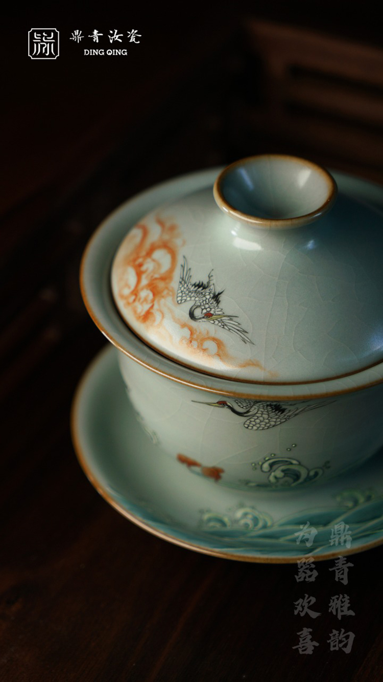 问鼎鼎青系列澜清盖碗(六鹤同春)(缺货)