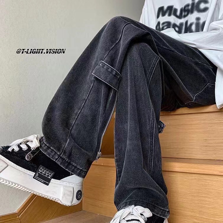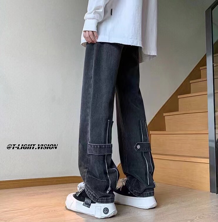 高街风后腿拼接多拉链牛仔裤 isn热门情侣款 适合男女穿着 不挑人 此款做工复杂 拉链设计 可以随意拉伸 两穿的版型 逼格很高 真的很绝逼的一款牛仔裤 店主自留的一款牛仔裤 强烈推荐 ~
