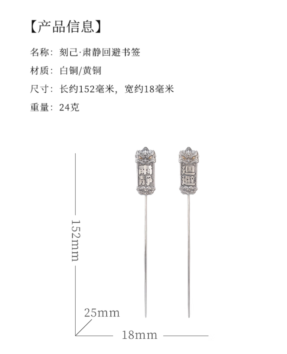 刻己 - 铜书签“肃静、回避” 复古国潮文创饰品【官方授权 】【48小时发货】