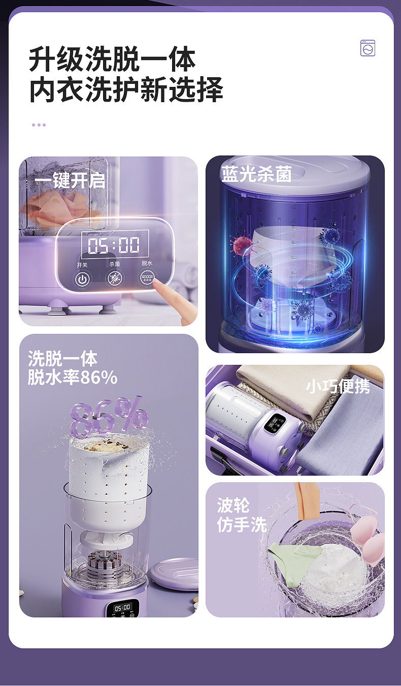 洗脱一体无线迷你洗衣机便携内衣裤袜子专用小型洗衣杯神器