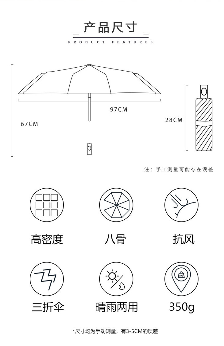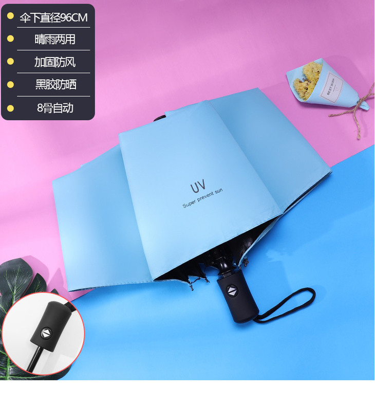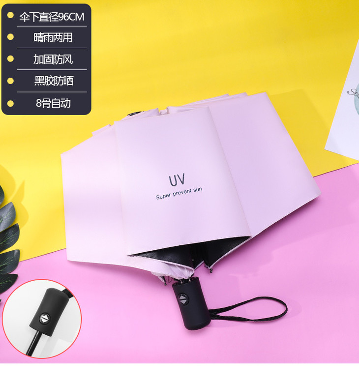 简约黑胶防晒遮阳伞 自动伞