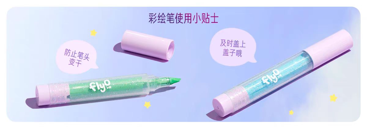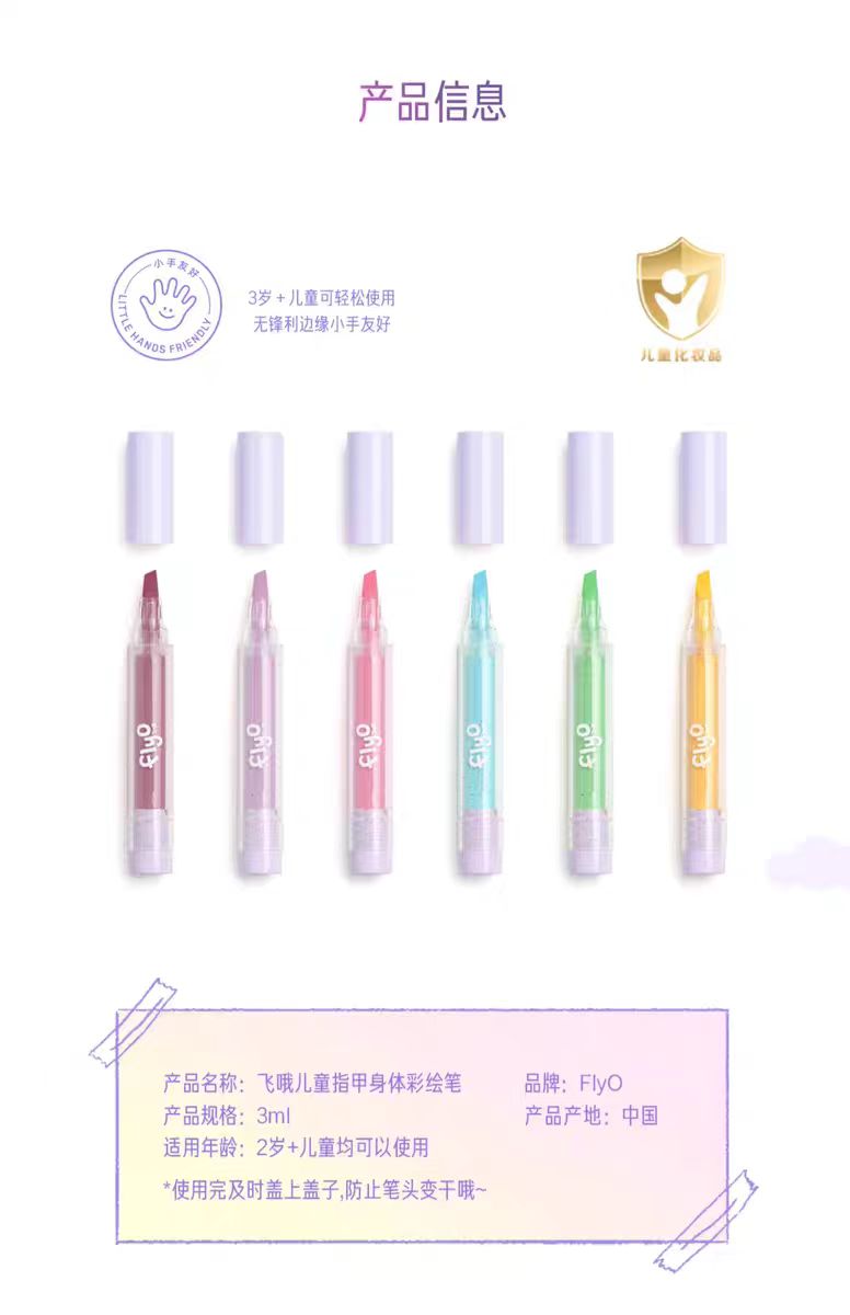4楼Eubelle欧蓓 FlyO飞哦儿童指甲身体彩绘笔3ml*6支 面部彩妆笔幻彩棒 儿童礼物无毒 2岁以上 活动价:349元