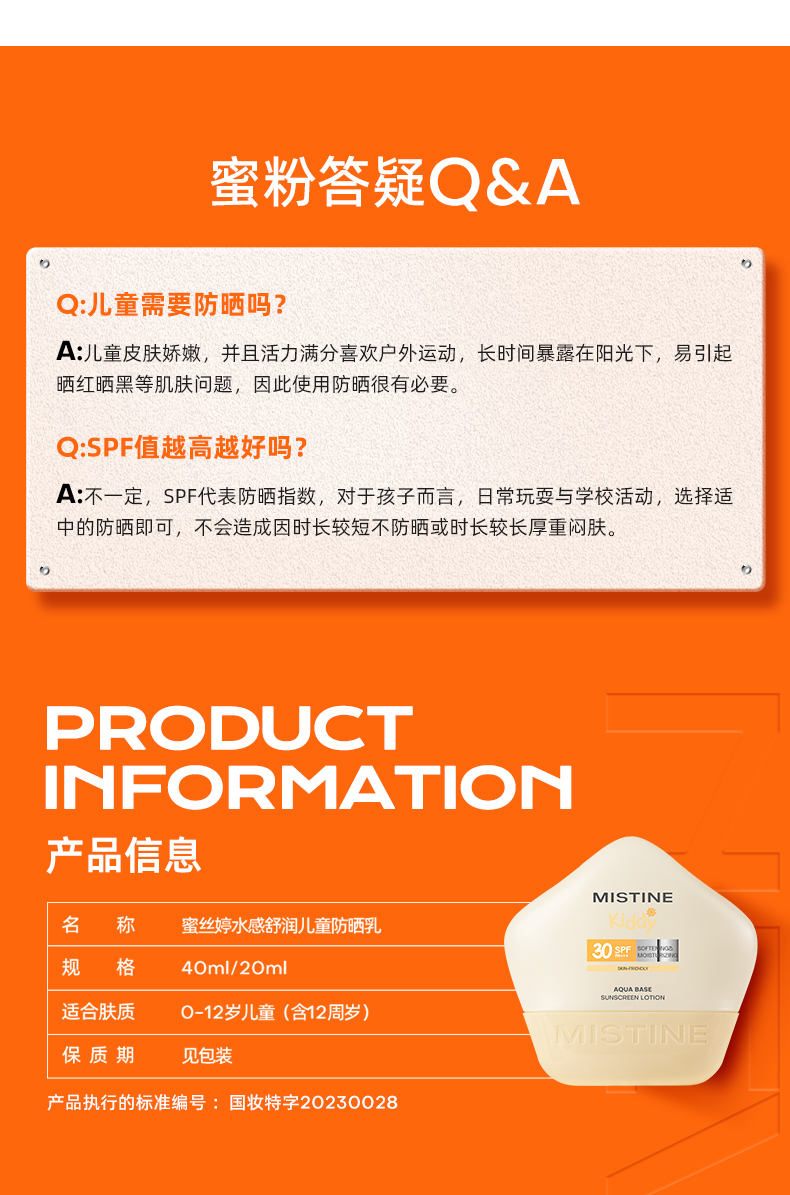 【门店直发】Mistine蜜丝婷儿童防晒霜夏季新品SPF30宝宝男女童防晒乳40ml