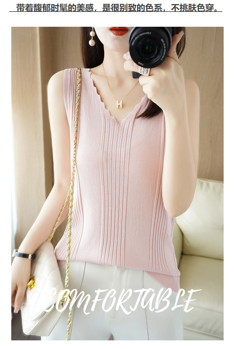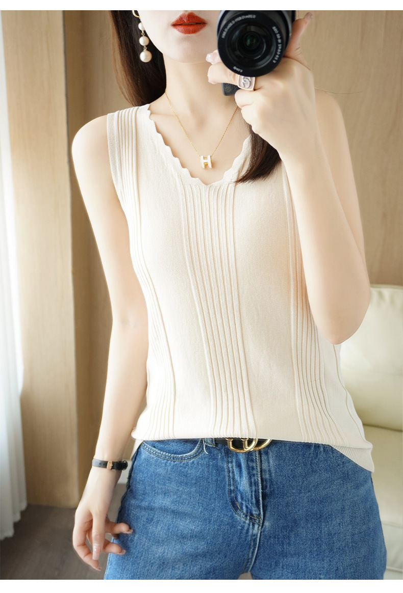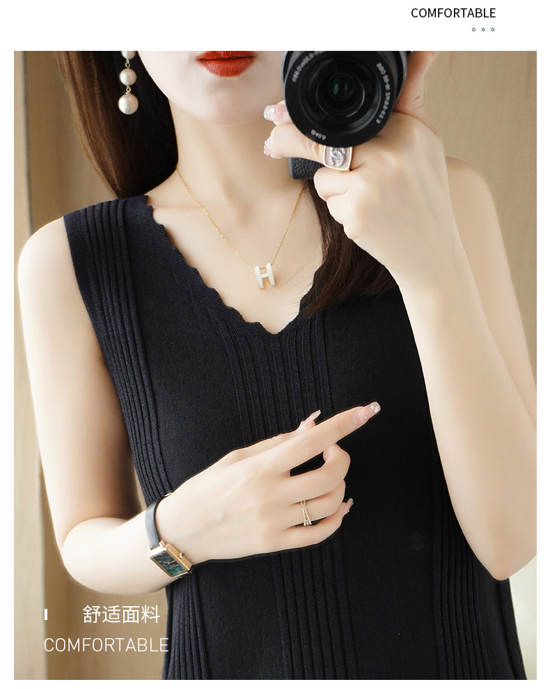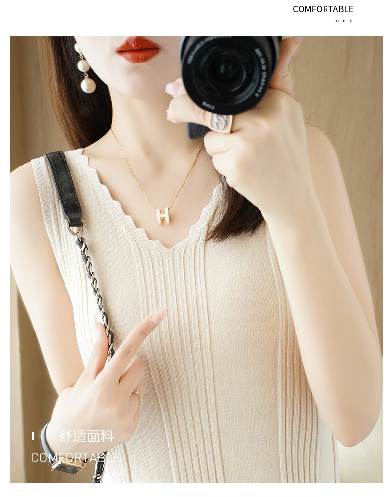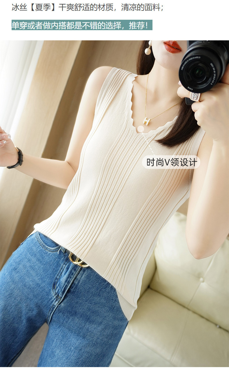 QHJY-JY2275时尚曲珠冰丝吊带背心女V领宽松显瘦内搭薄款针织衫外穿无袖上衣