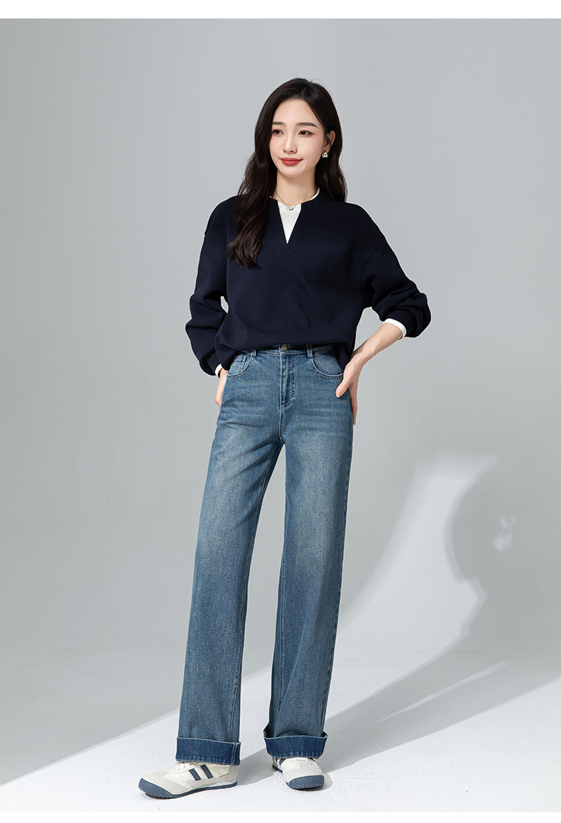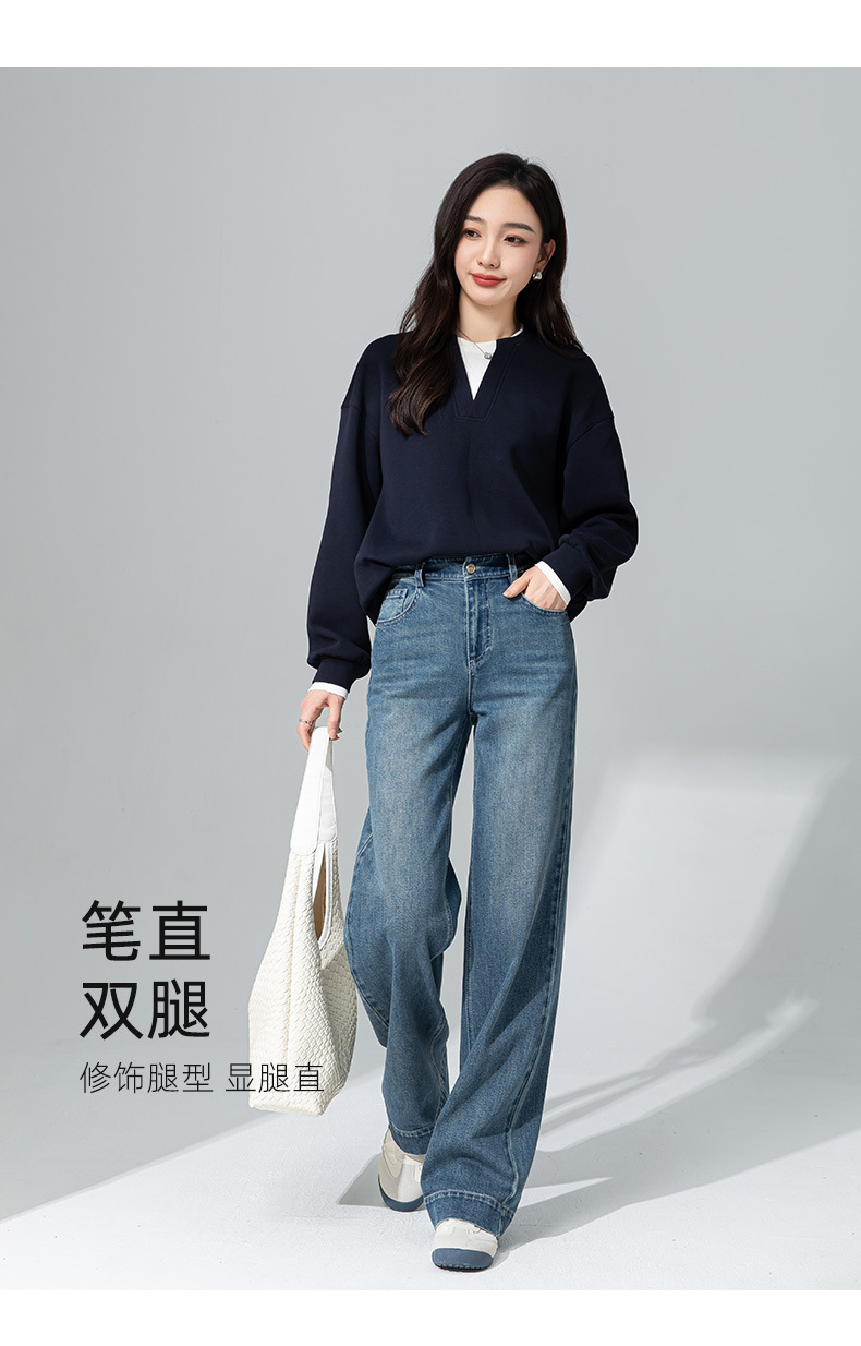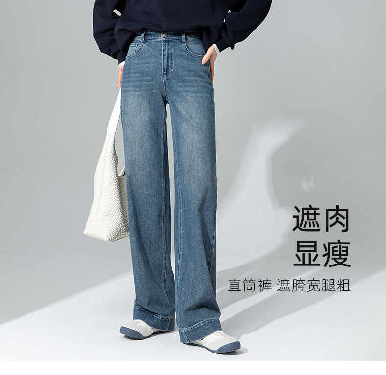 【高货xg】全新升级【铂金会员174/天猫229/差价55】(53434) 洛诗琳窄版阔腿牛仔裤女2025年春季新款宽松直筒拖地裤