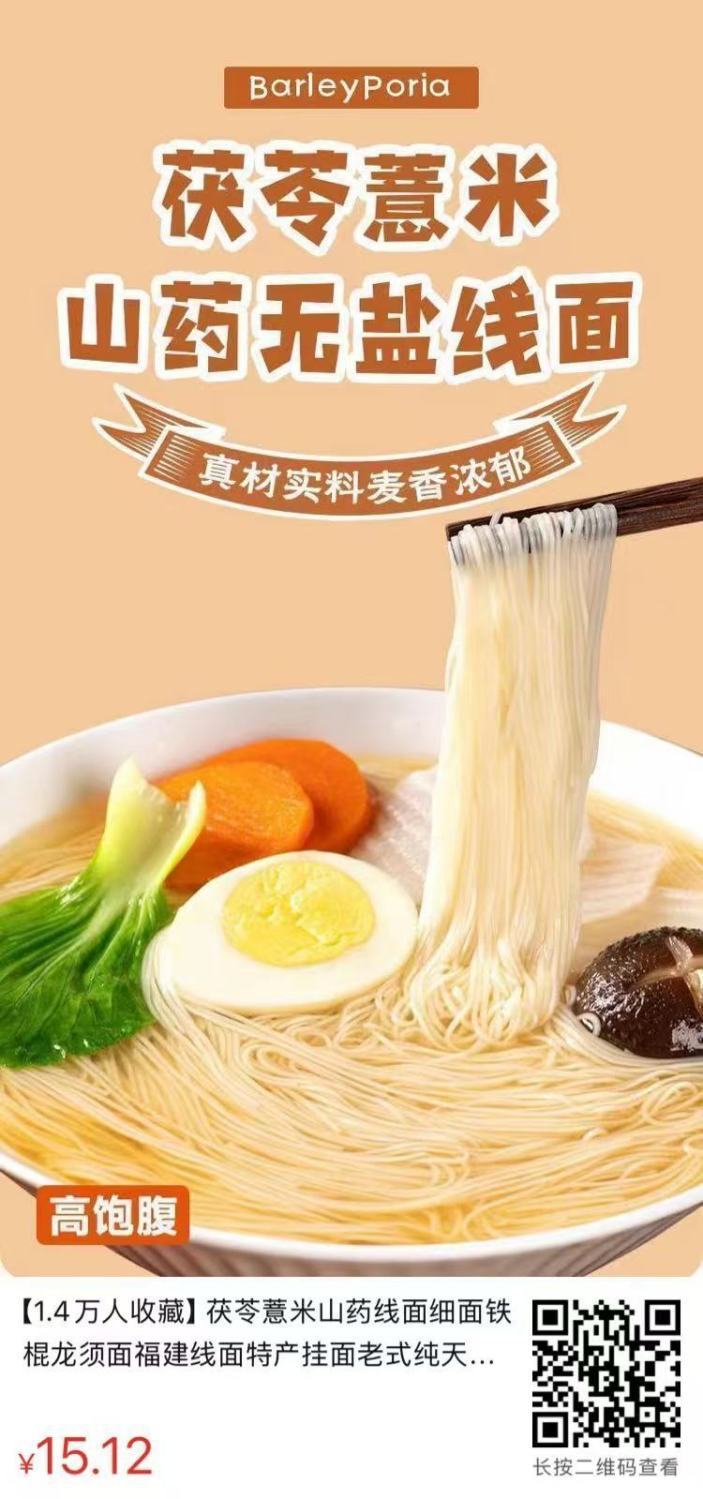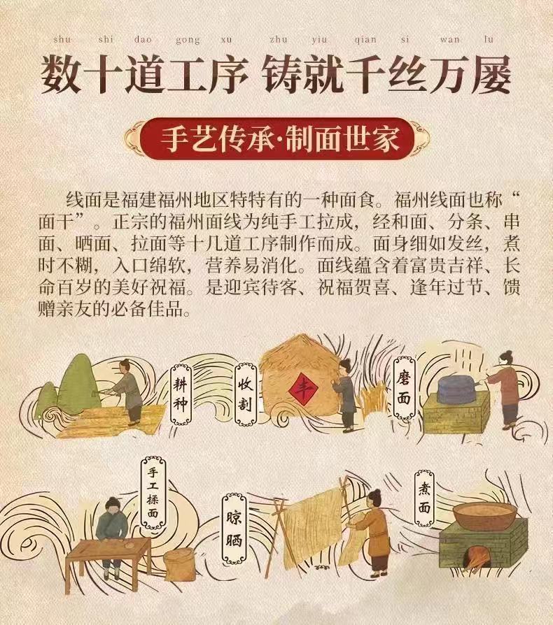 【手工工艺❗无盐更健康】福建无盐茯苓薏米山药线面细面铁棍龙须面闽南线面挂面早餐儿童。ri