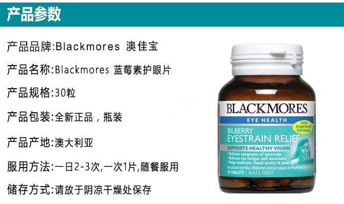 Blackmores Bilberry蓝莓素越橘精华 30粒 护眼缓疲劳