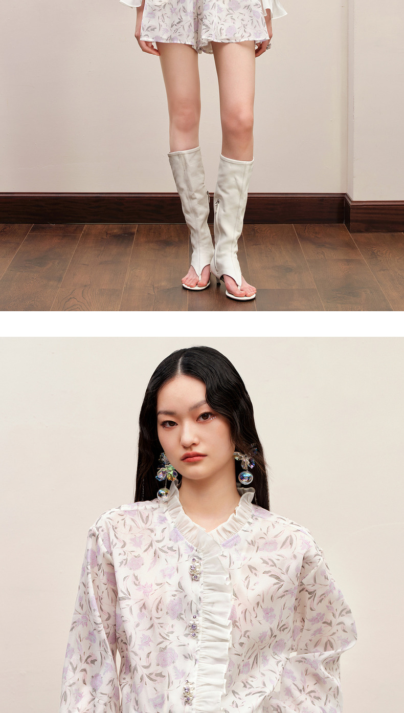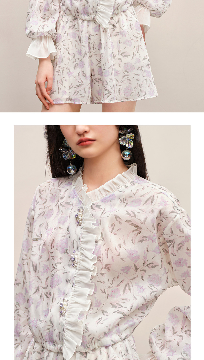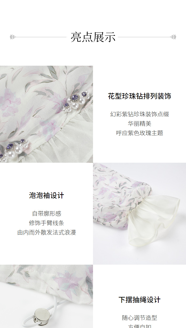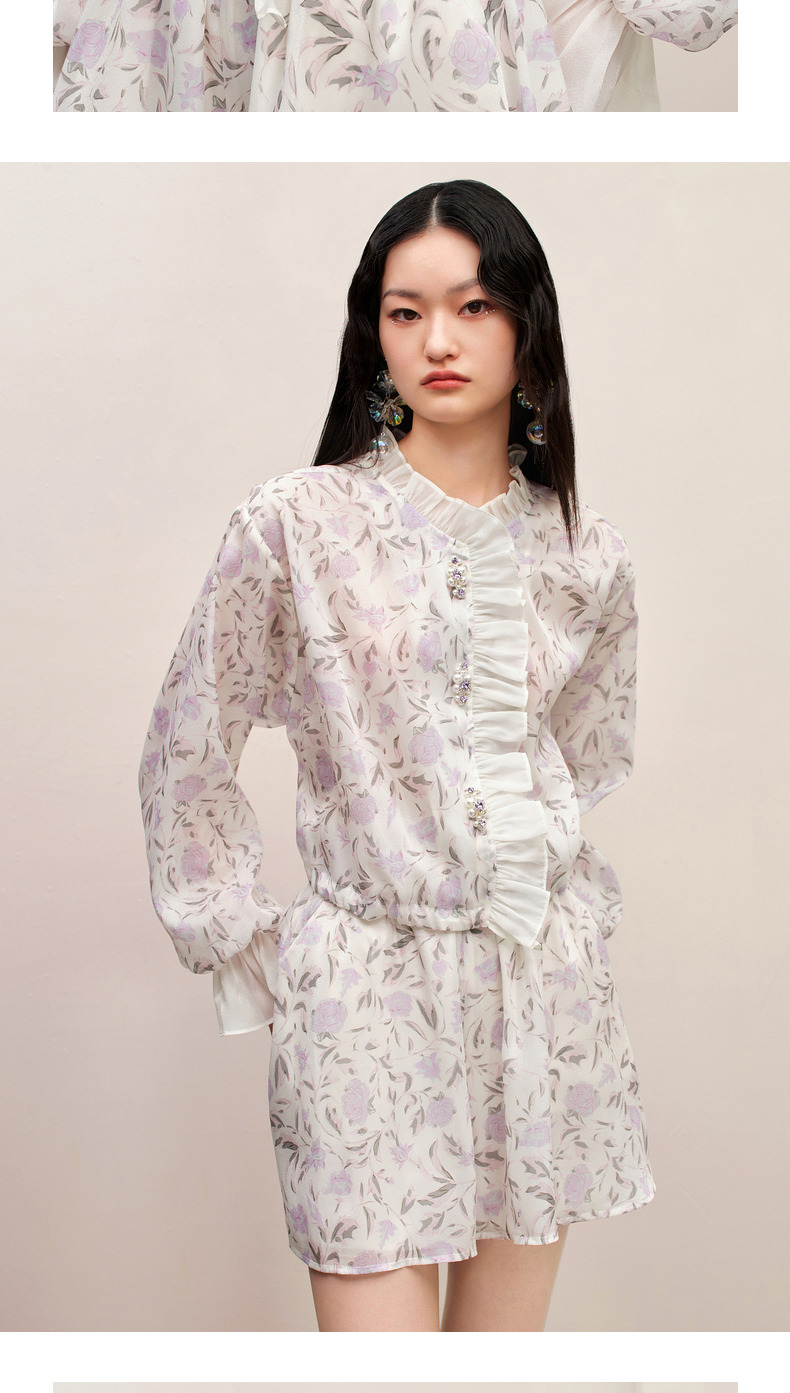 玛克门店发货:MAXRIENY玫瑰印花衬衫套装甜美浪漫氛围感欧根纱外套(货号:MC88JA551)
