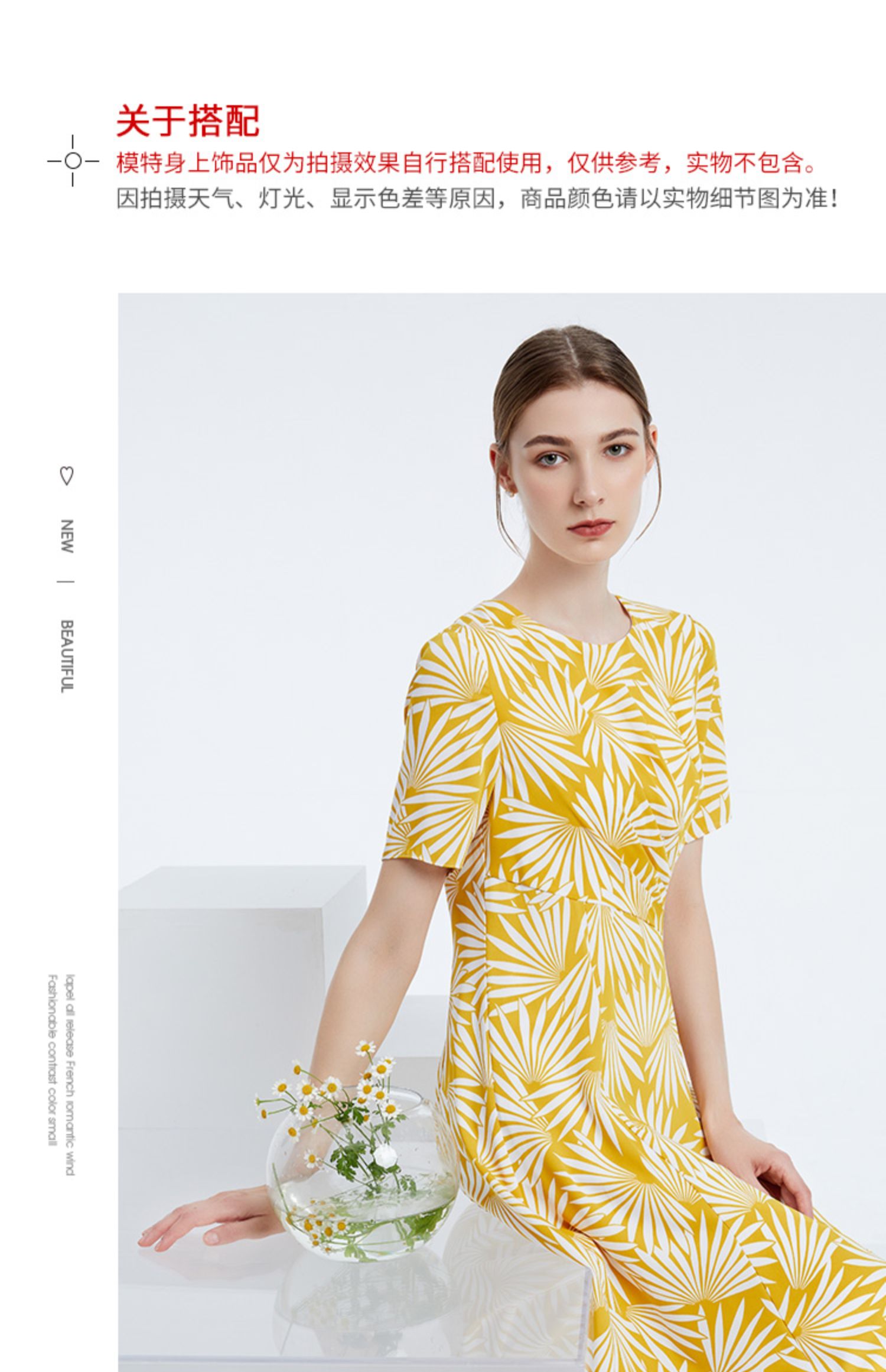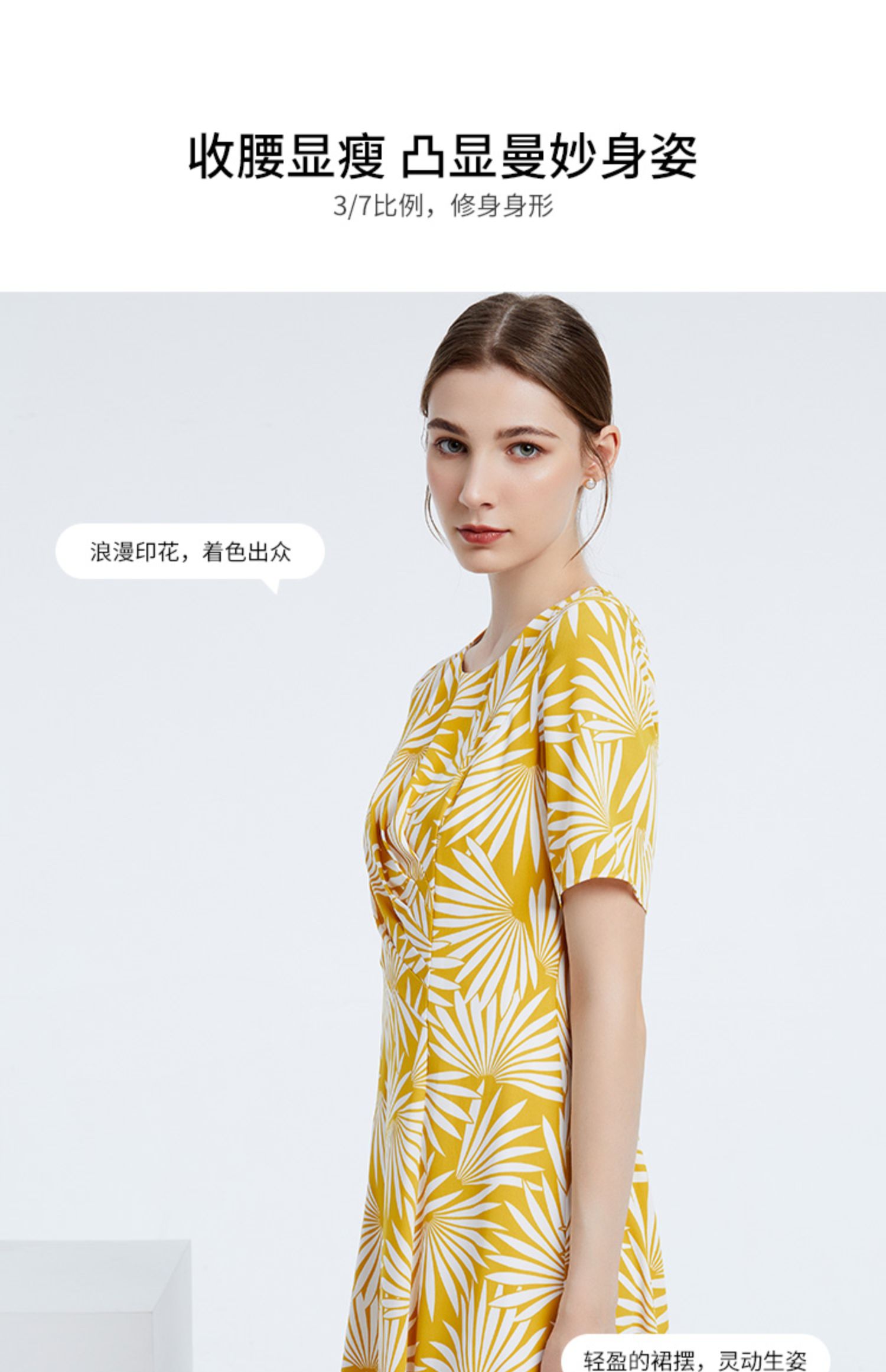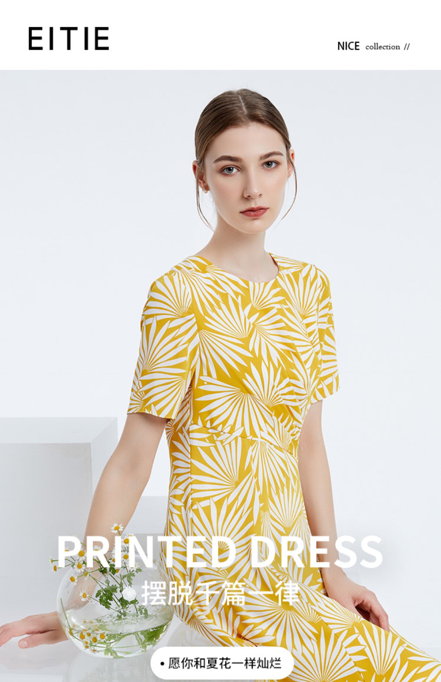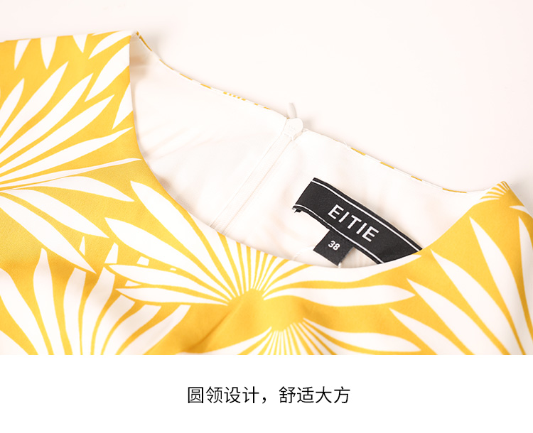 EITIE爱特爱夏季新款时尚百搭气质清新印花收腰A字显瘦连衣裙6607348
