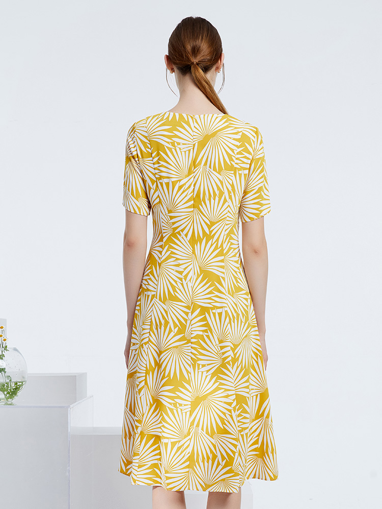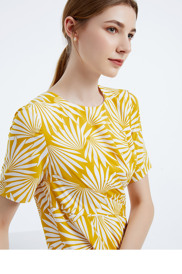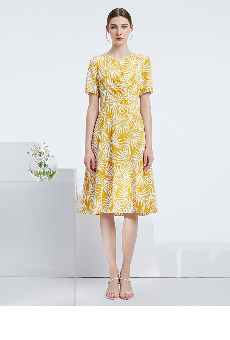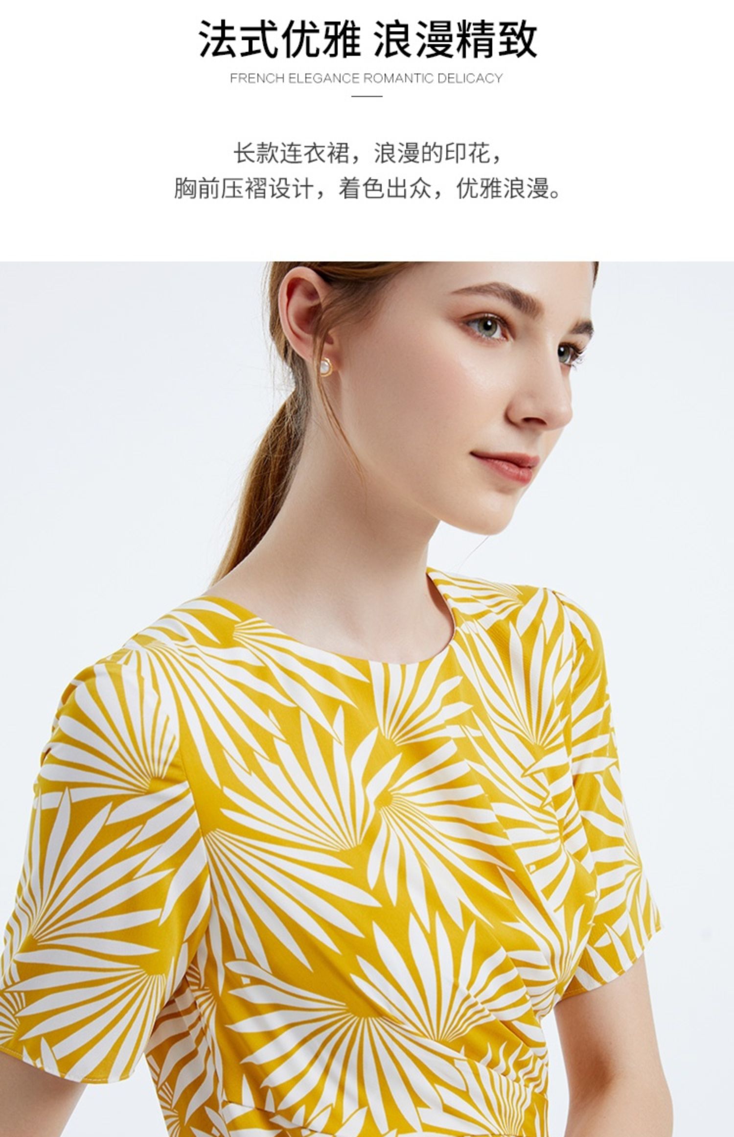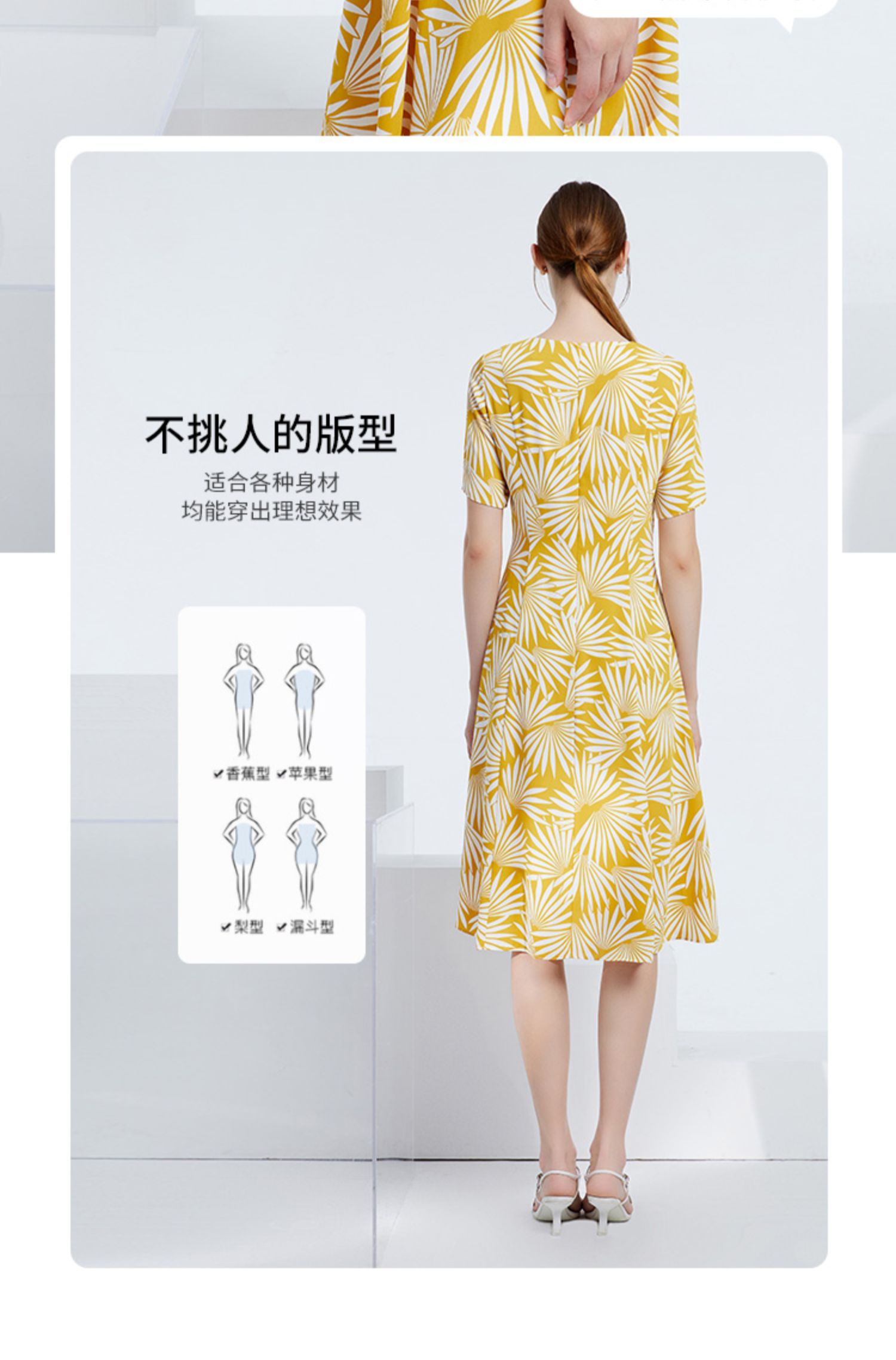 EITIE爱特爱夏季新款时尚百搭气质清新印花收腰A字显瘦连衣裙6607348