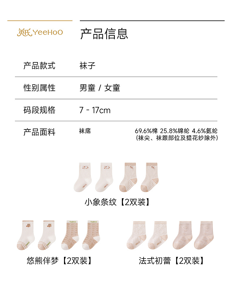 【商场同款】英氏儿童袜子短袜四季款男宝宝女宝宝袜子2双装新款