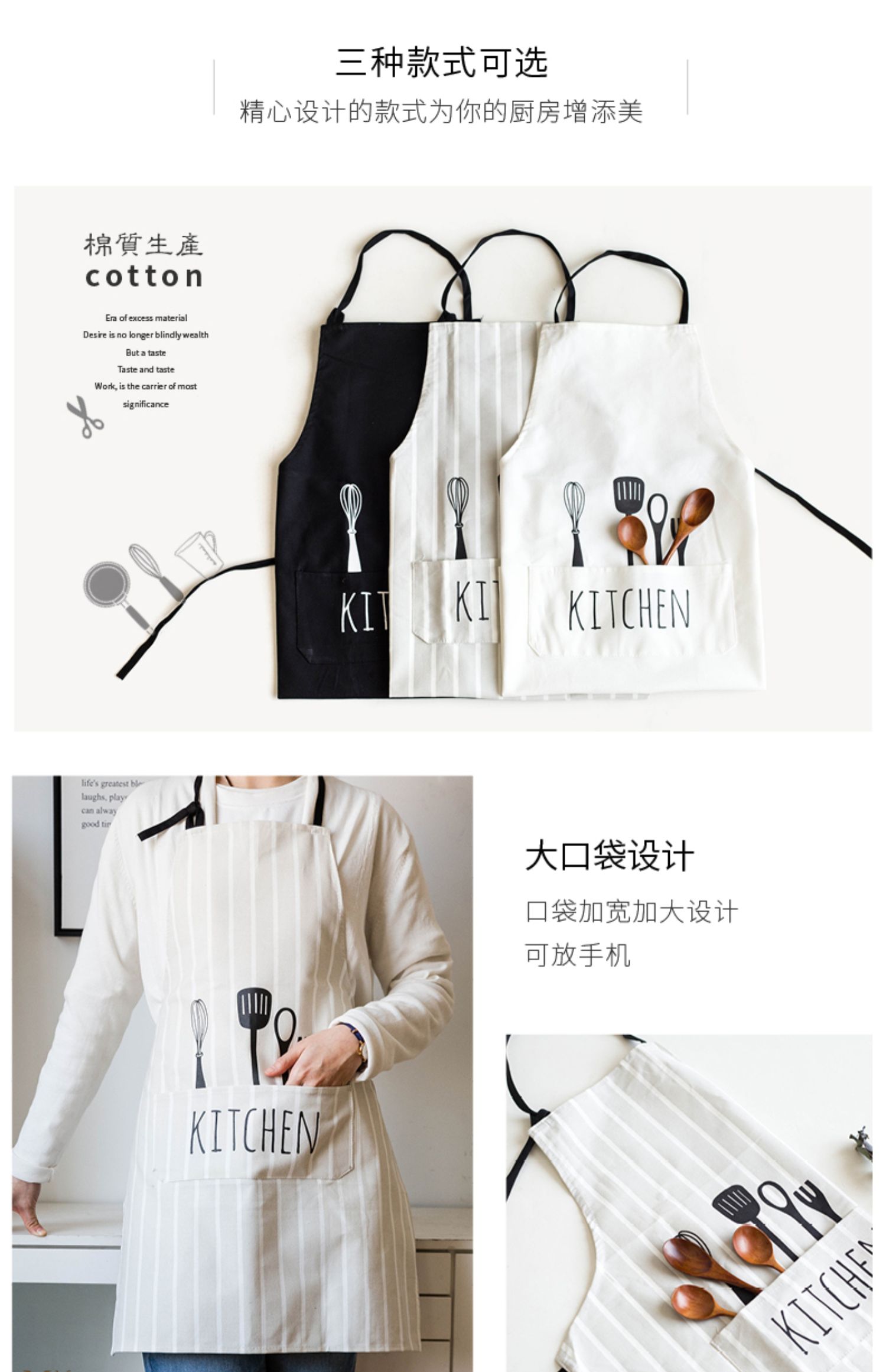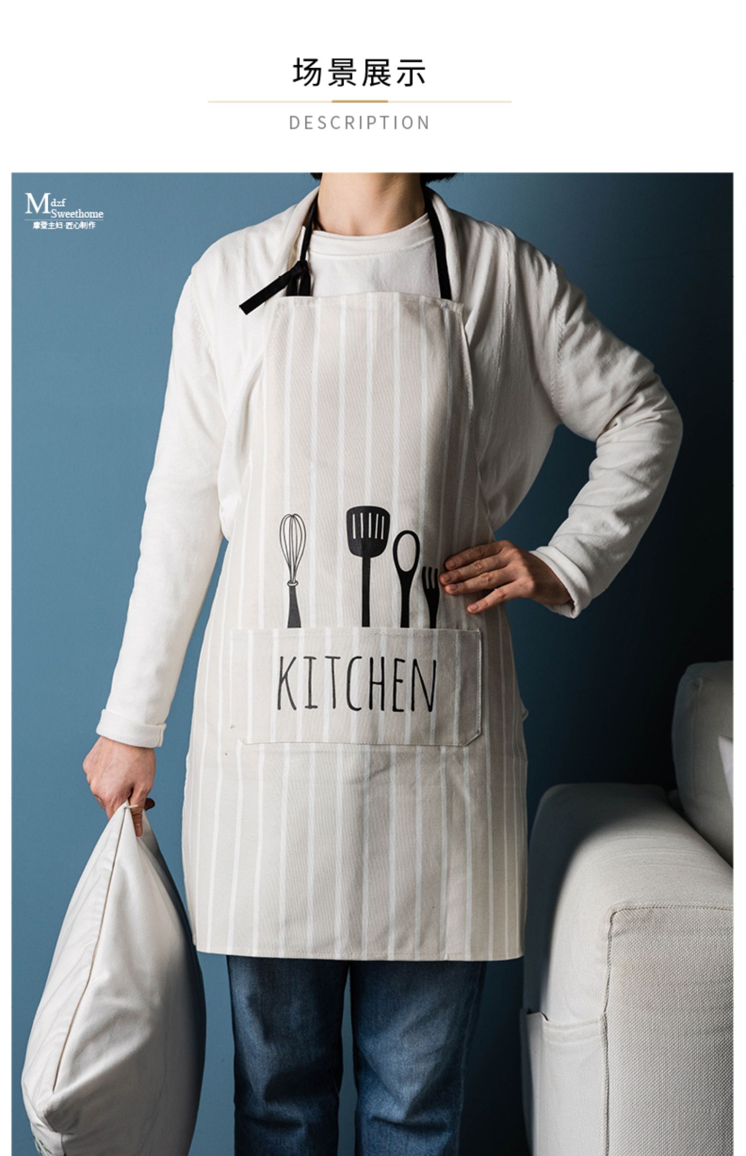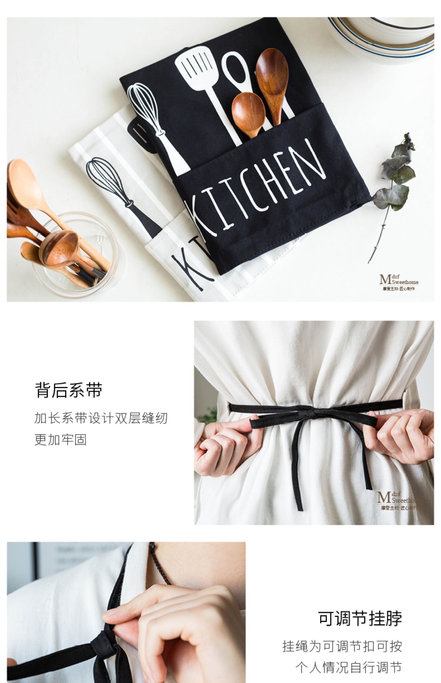 摩登主妇围裙新款家用夏季厨房工作服女时尚罩衣薄款情侣透气围腰