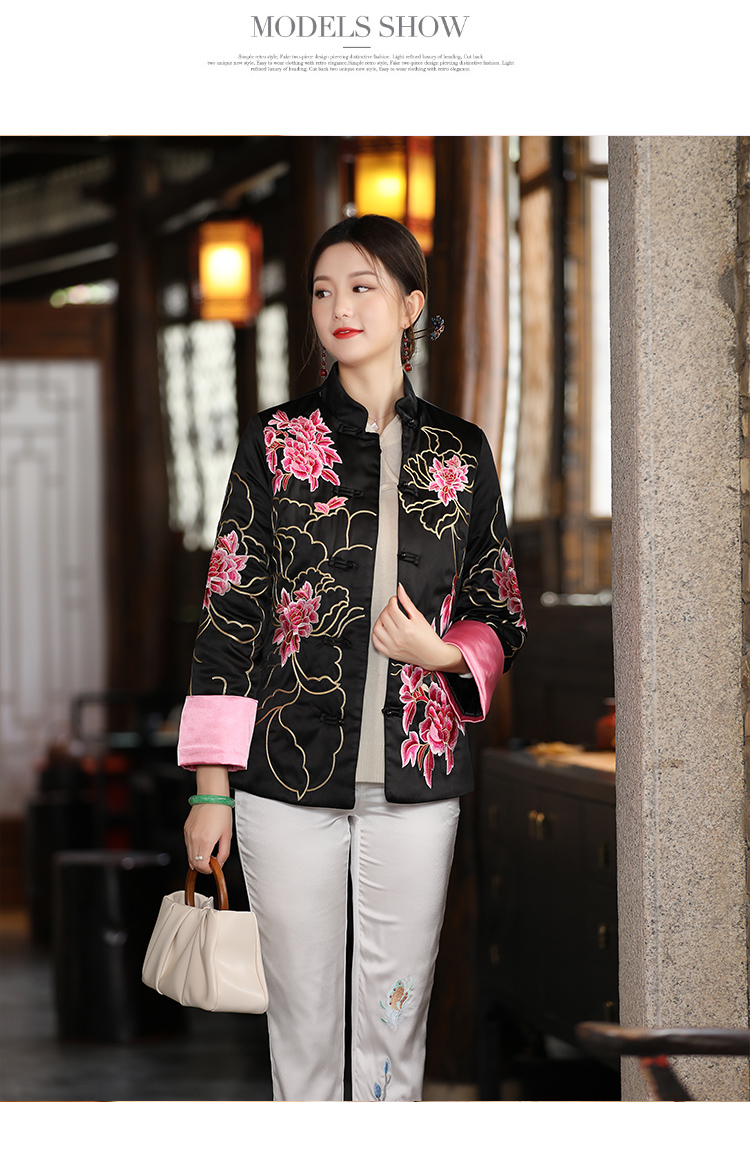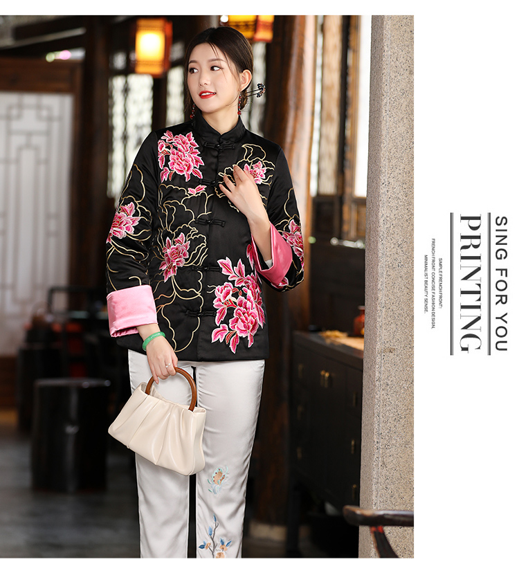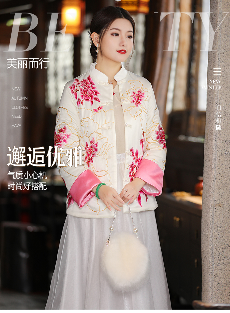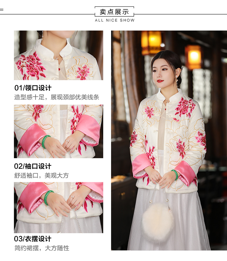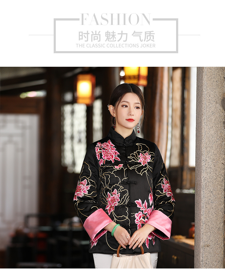 2021冬季新款国风时尚新中式国色牡丹重工刺绣夹棉外套 LX21049