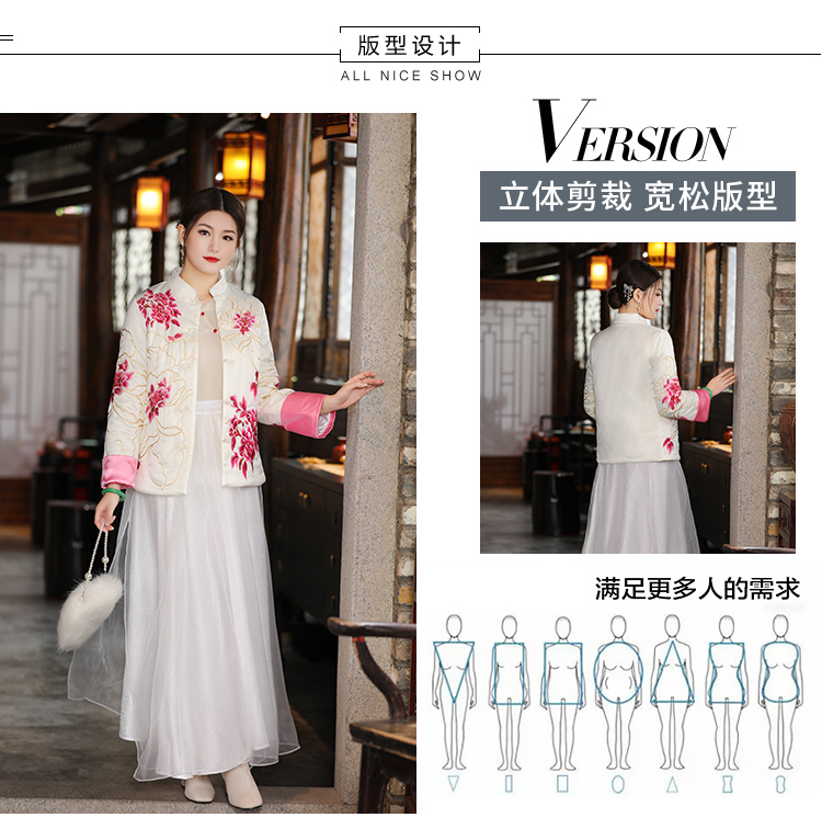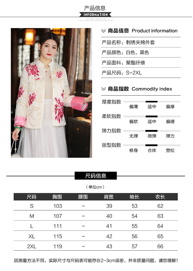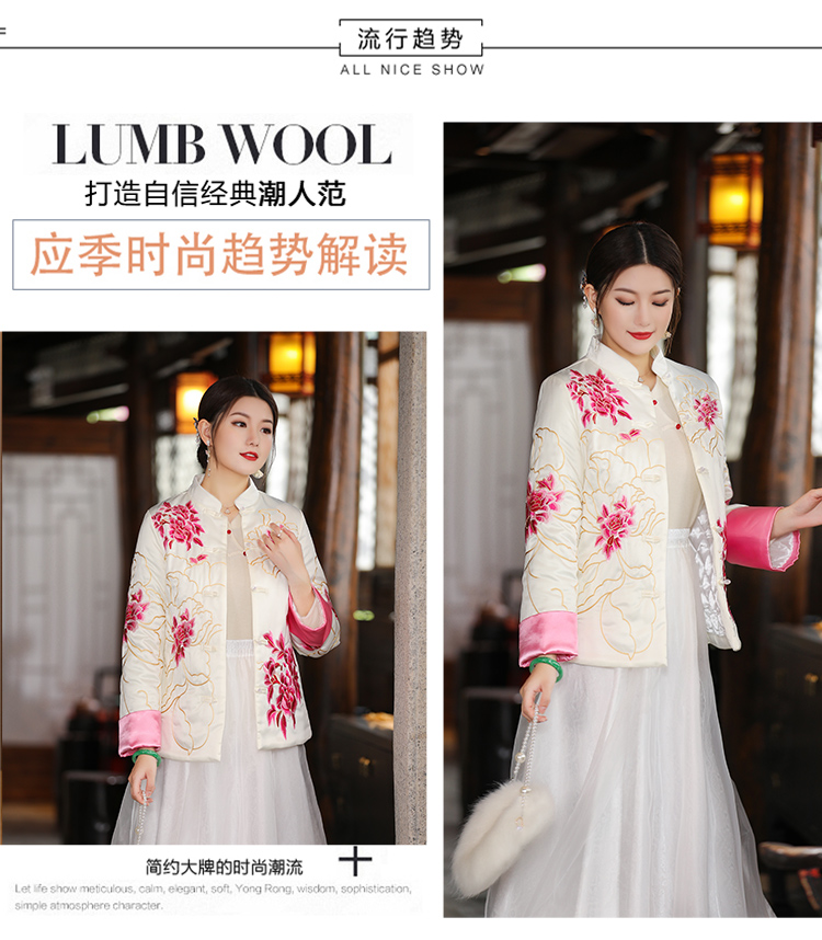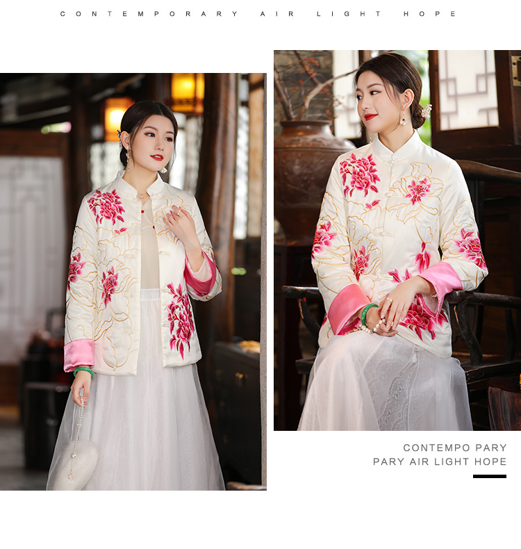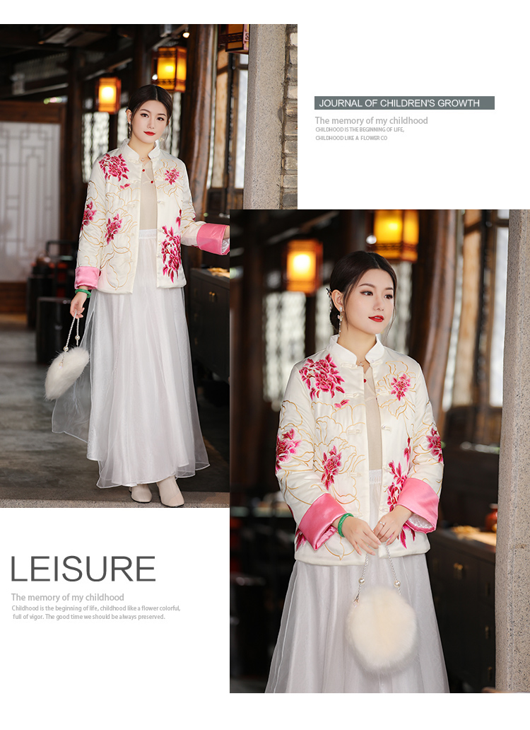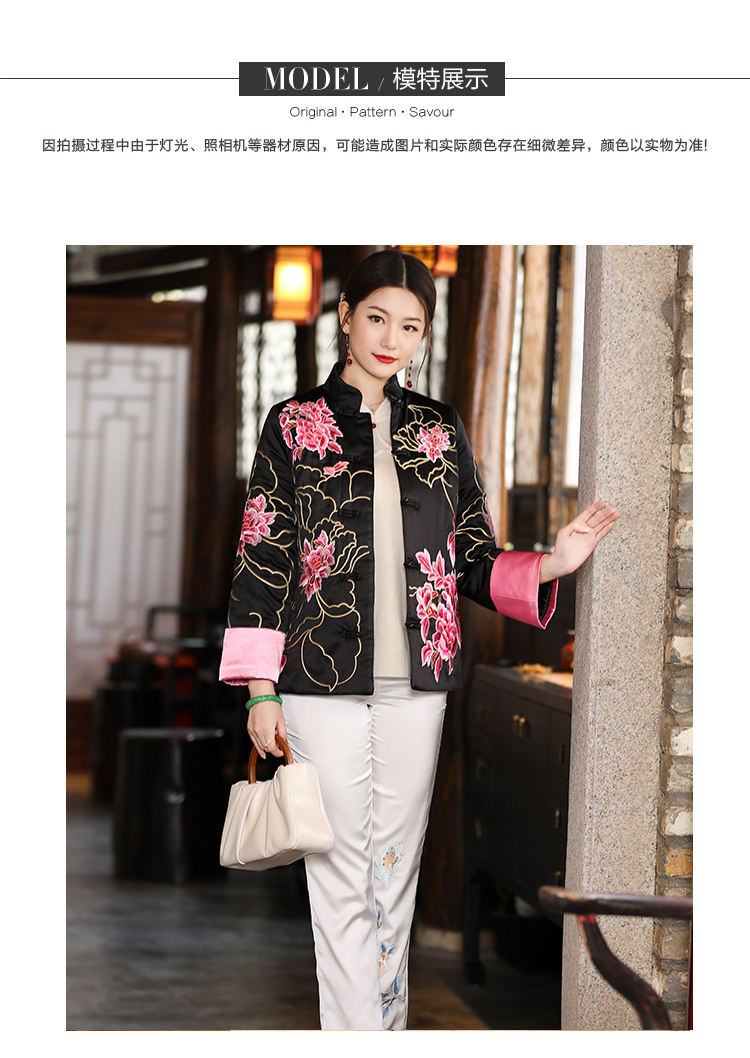 2021冬季新款国风时尚新中式国色牡丹重工刺绣夹棉外套 LX21049
