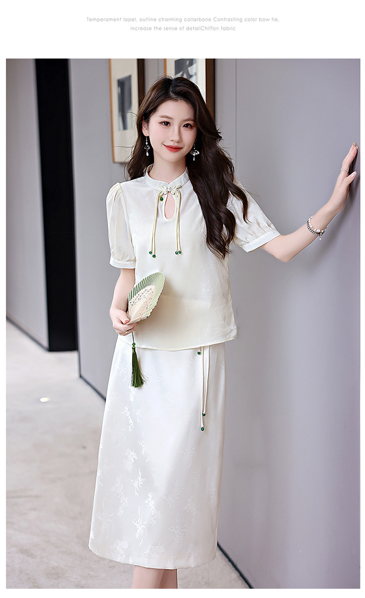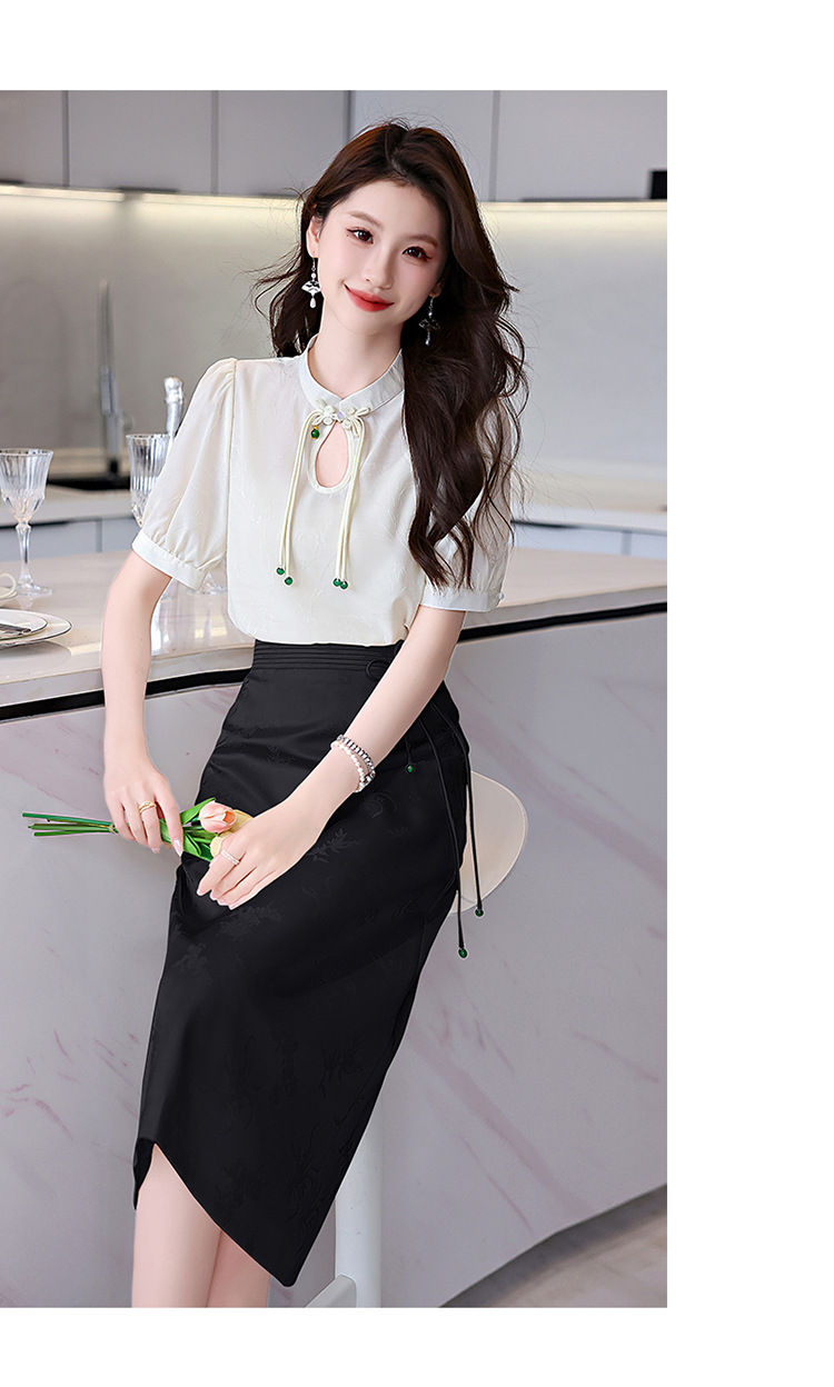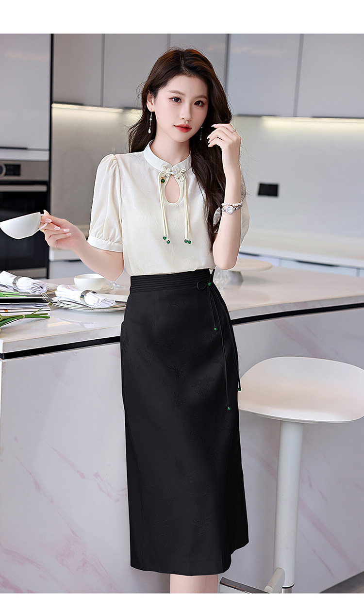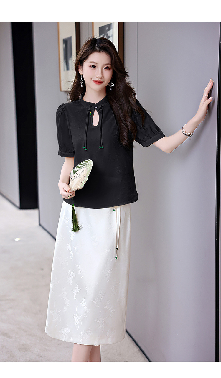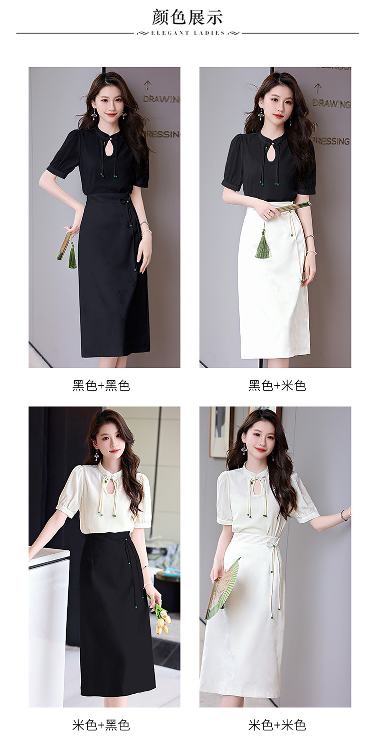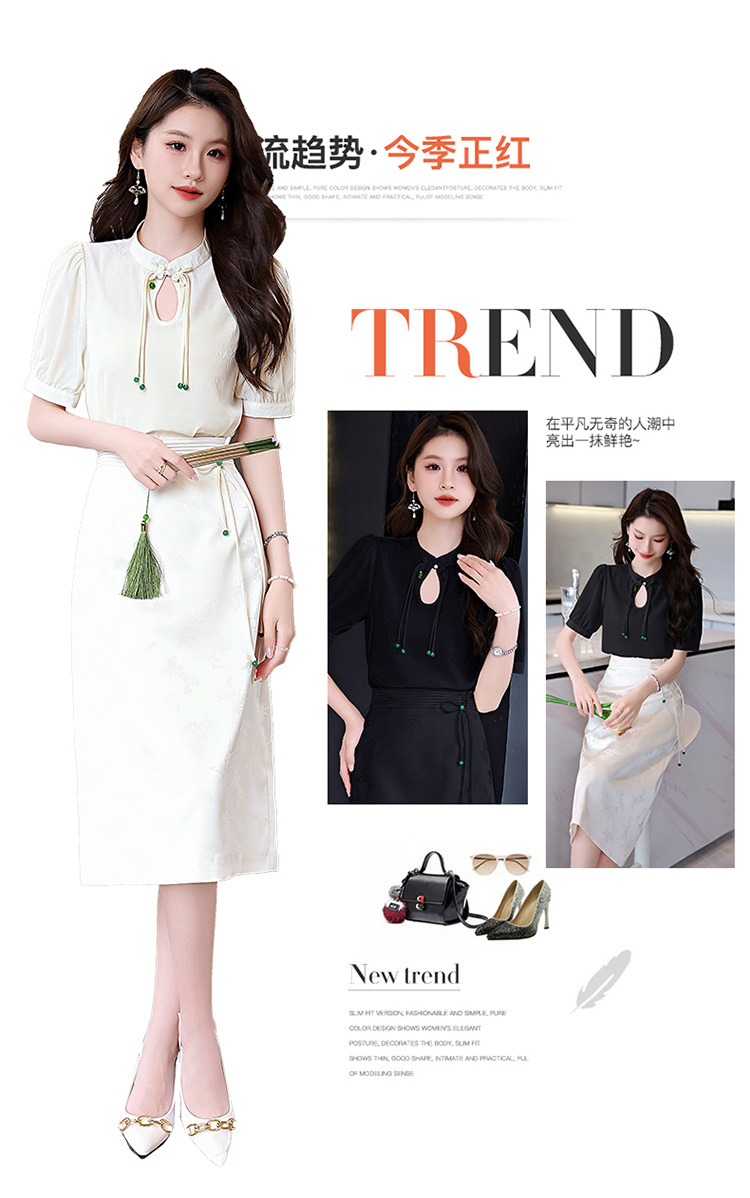 新中式立领盘扣衬衣,搭配显瘦半身裙套装HR-SSQJRA829-6