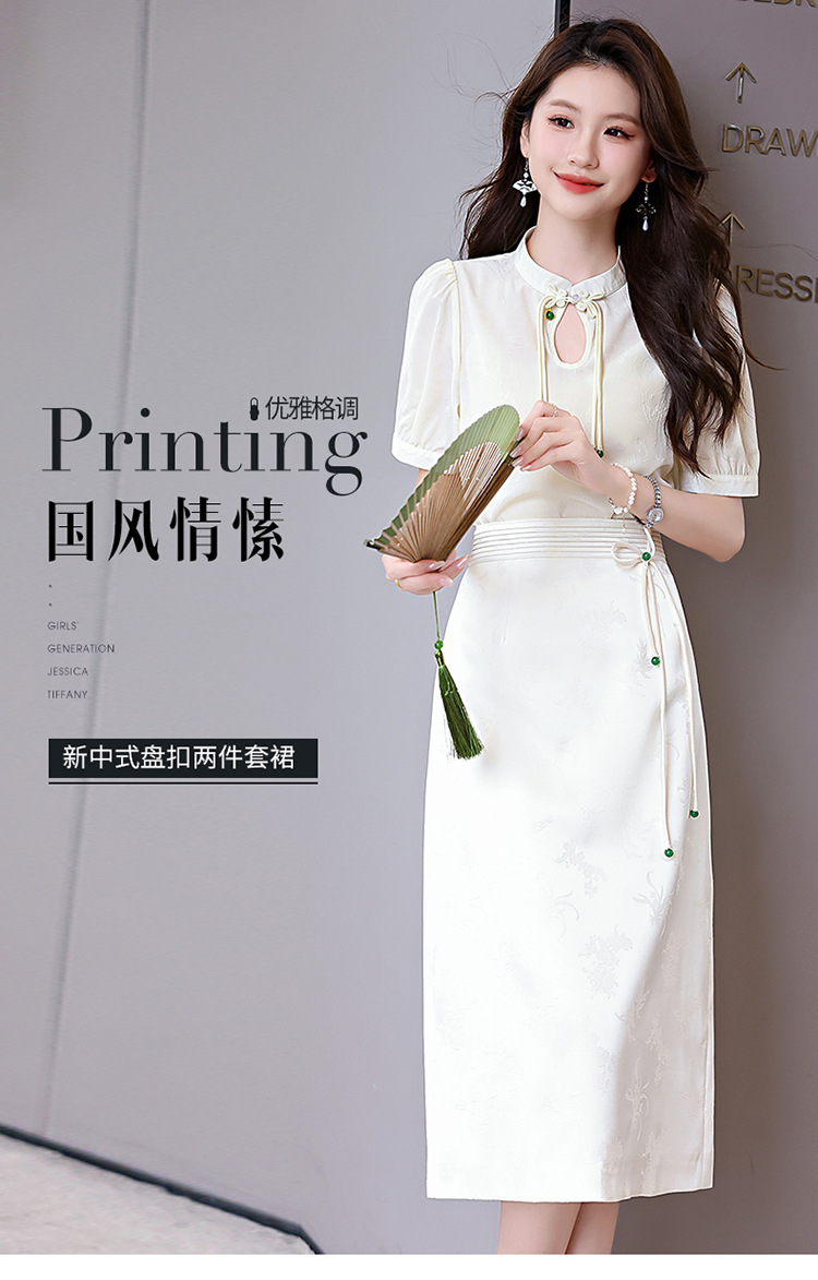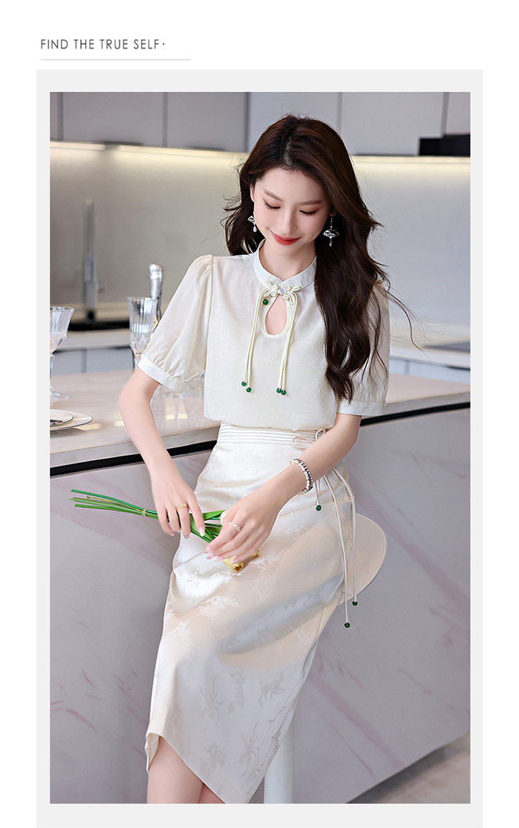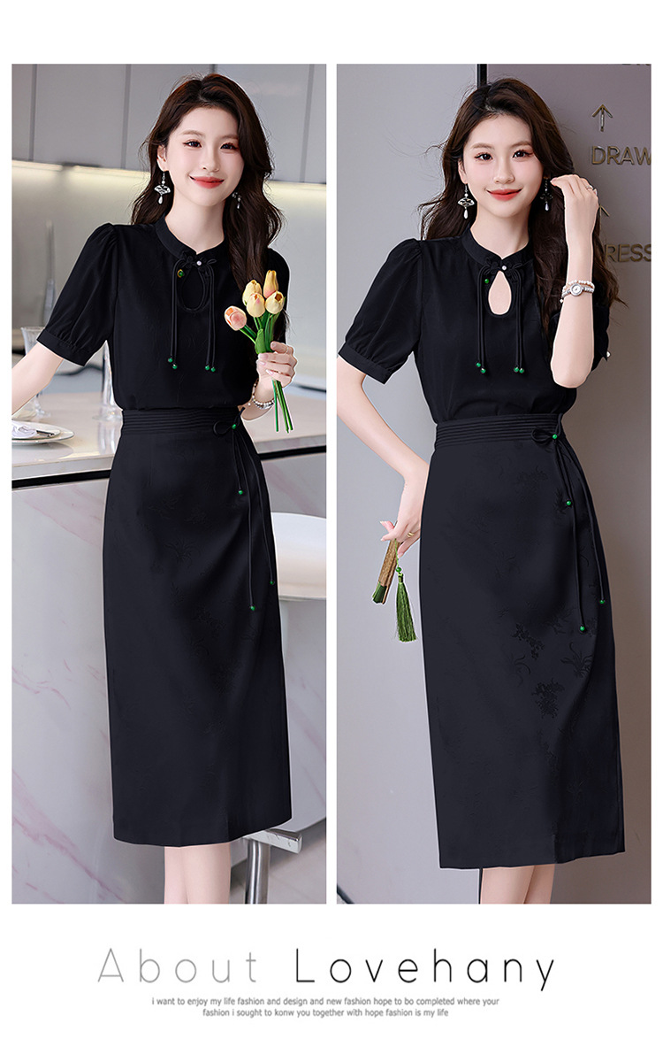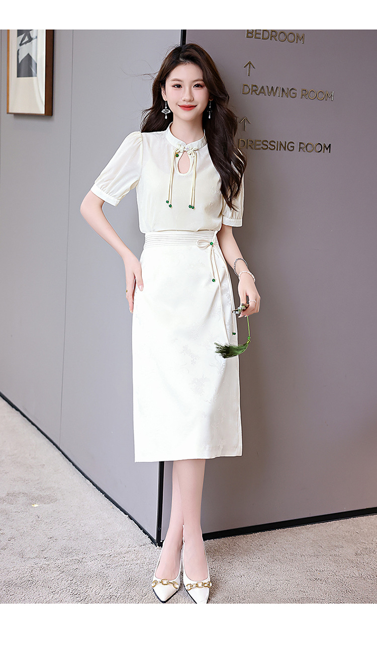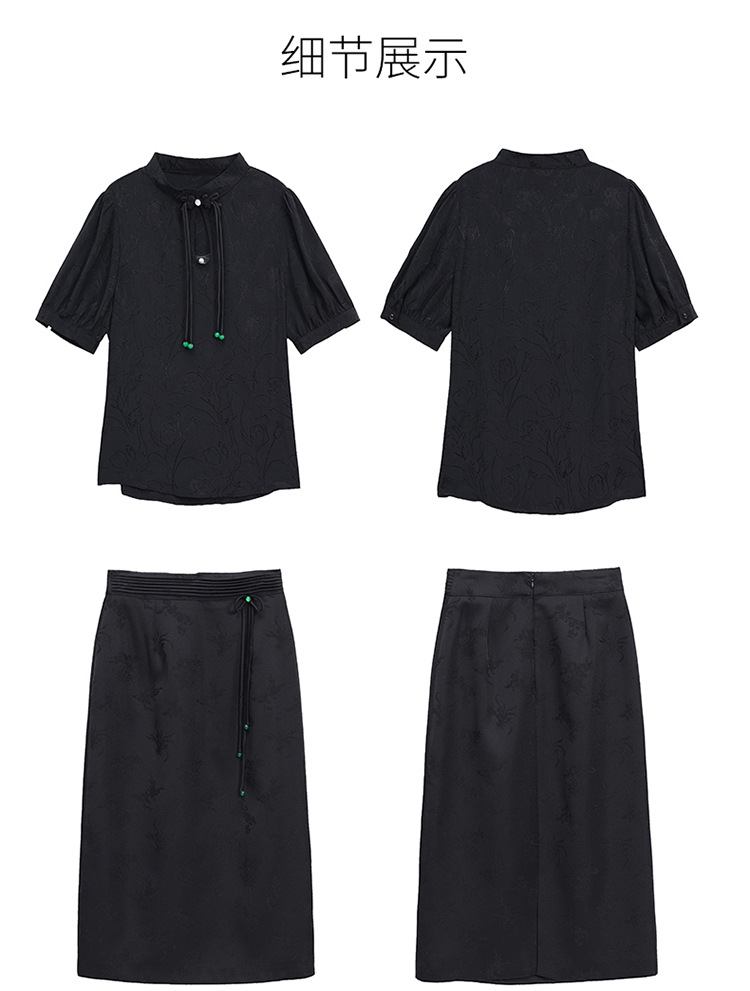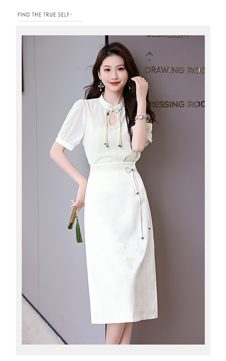 新中式立领盘扣衬衣,搭配显瘦半身裙套装HR-SSQJRA829-6