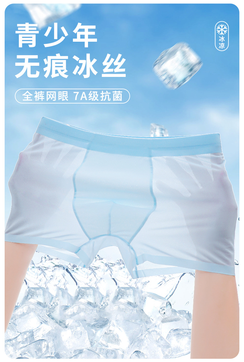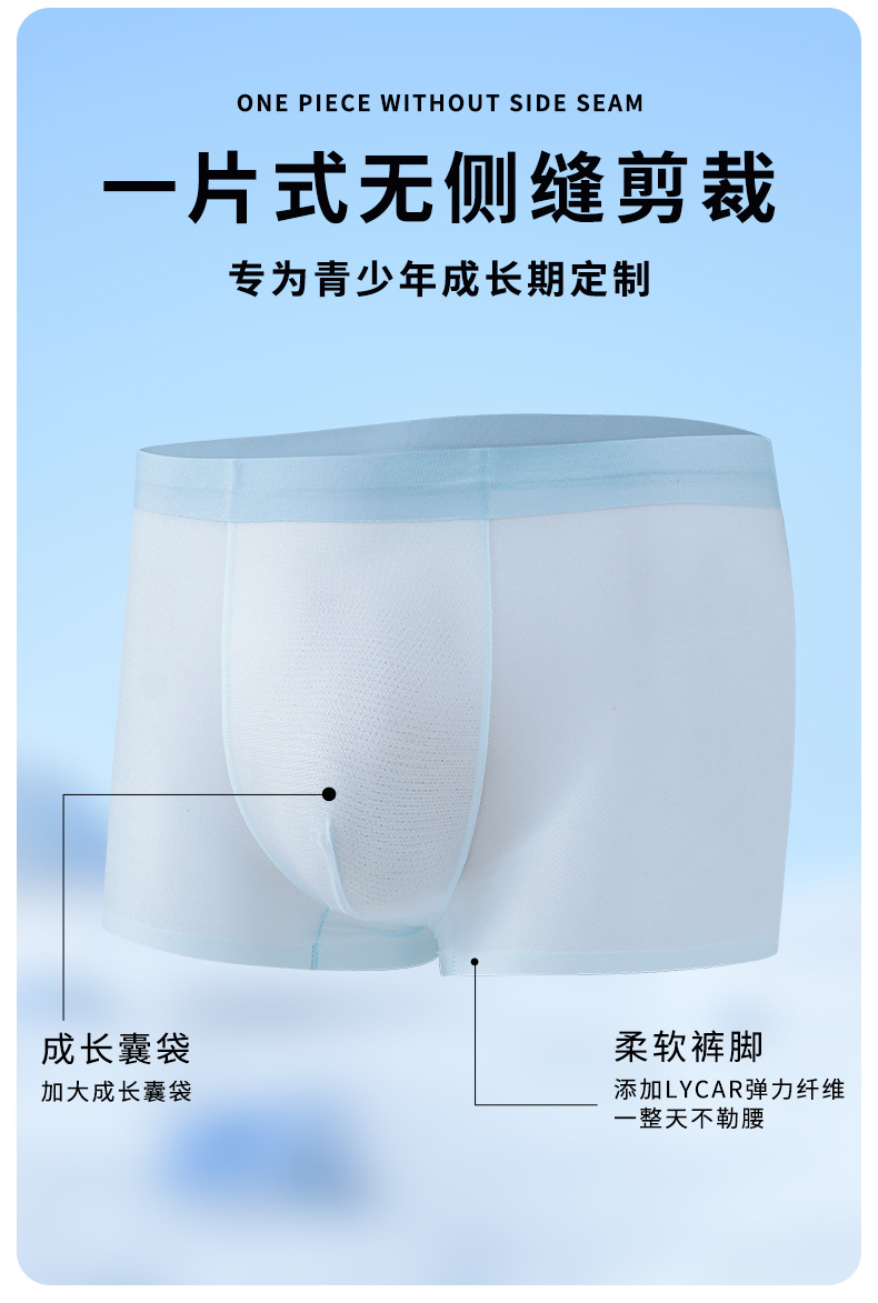 【4条装】璐童梦青少年男孩7A级抑菌内裆内裤莫代尔冰丝无痕夏季薄款抗菌吸湿排汗透气男生胖童适合30-130斤