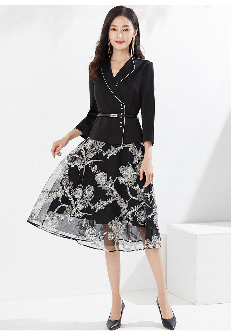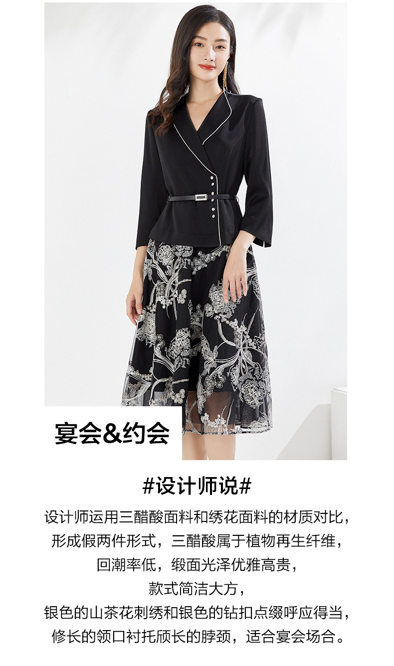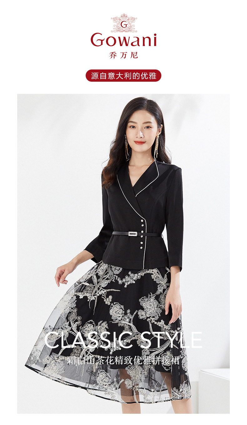乔万尼新款设计款连衣裙假两件套装礼服小香风EF3E815