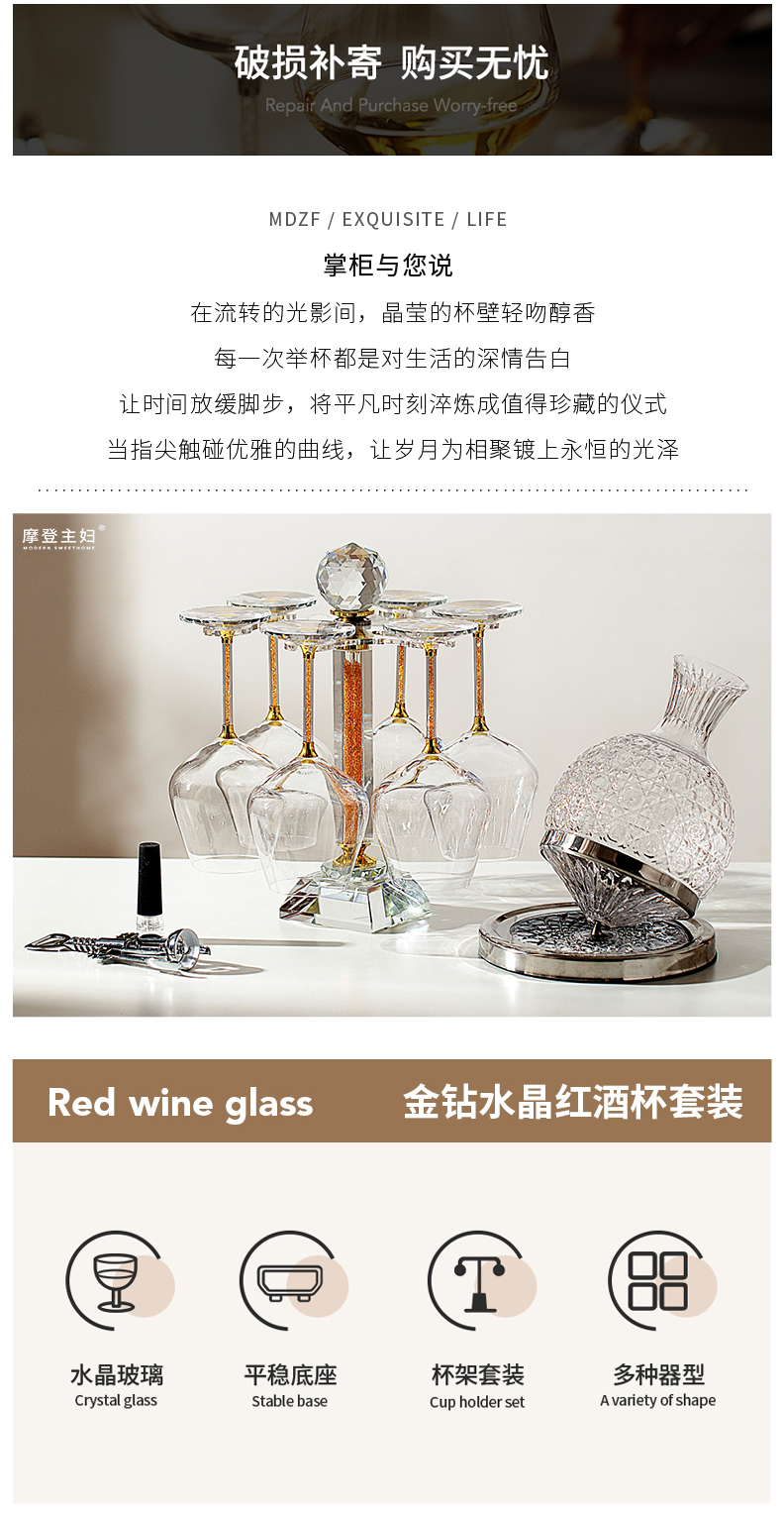 摩登主妇红酒杯套装轻奢分酒器家用玻璃杯葡萄酒杯醒酒器高脚杯子