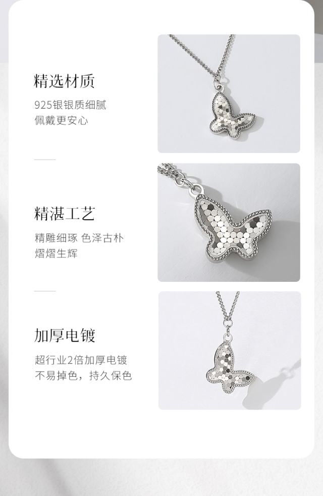 Winy925纯银梦幻蝶舞项链送女友闺蜜节日生日礼物