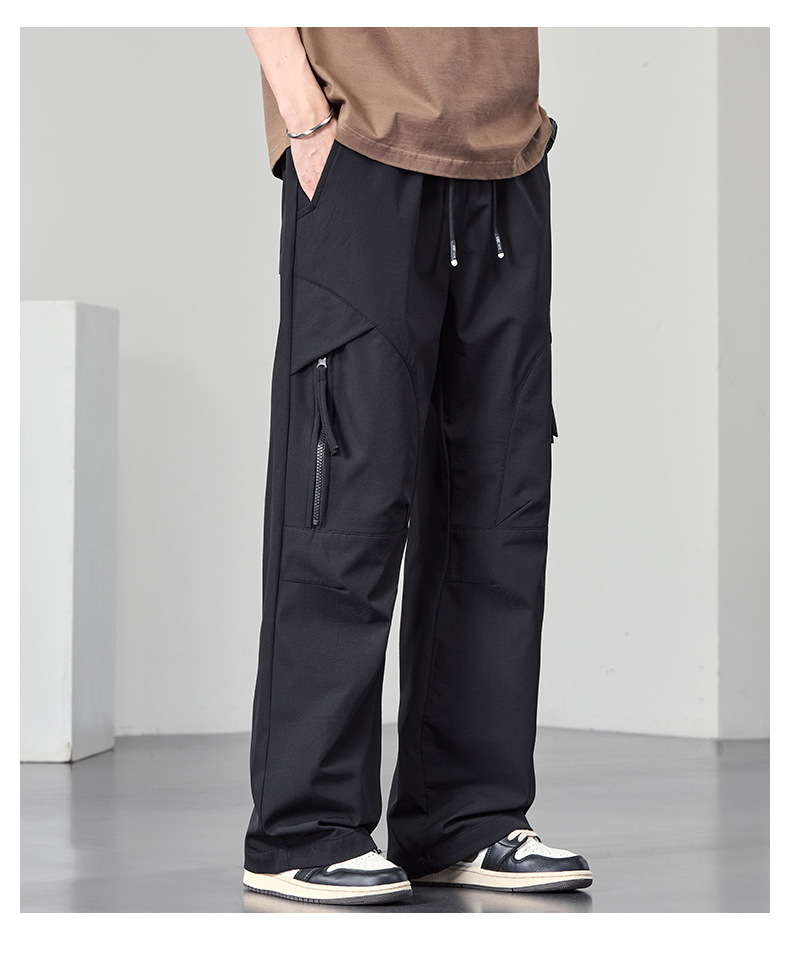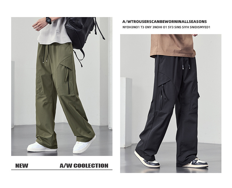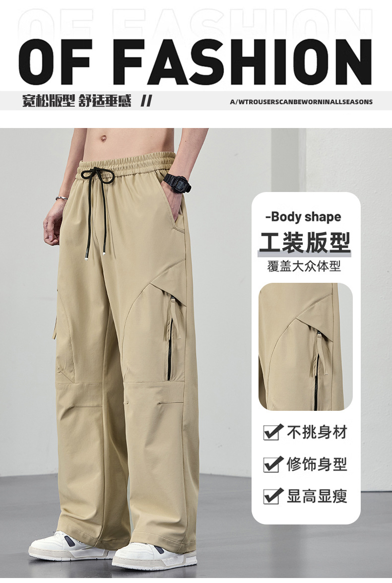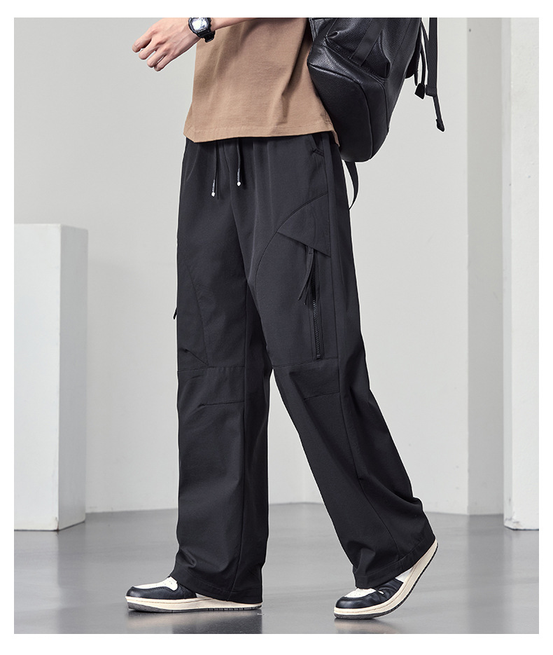 【DYF】大依优型大码男装直筒休闲裤运动男士胖子潮流长裤双线格宽松休闲风