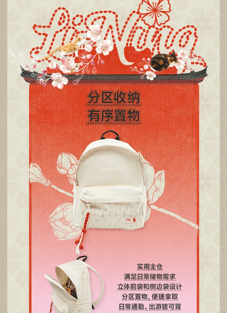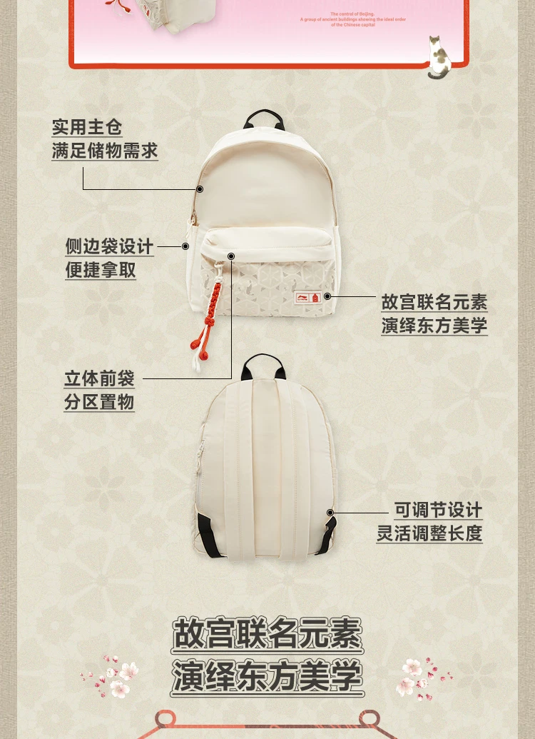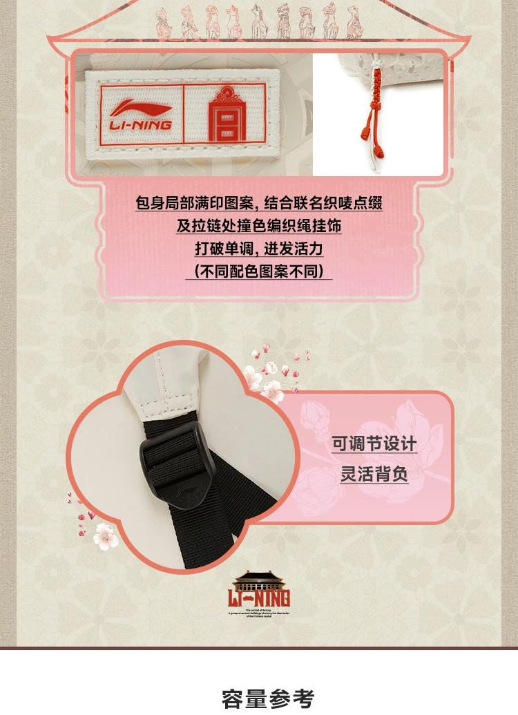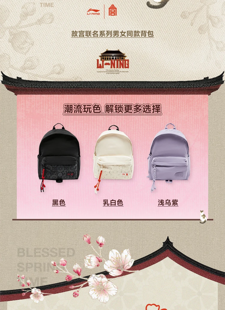 李宁中国文化系列故宫联名妙笔生花双肩包ABSV273