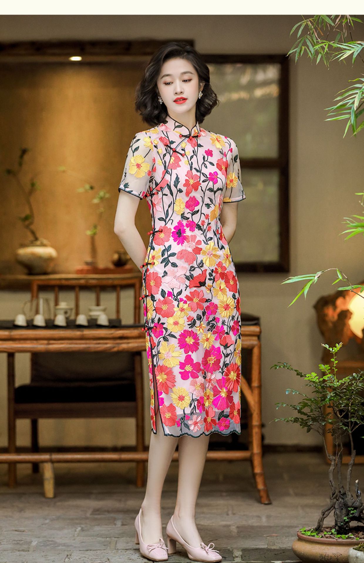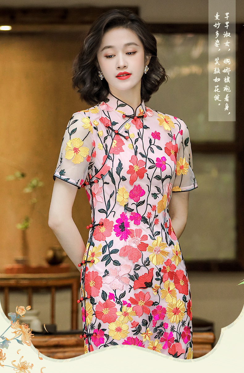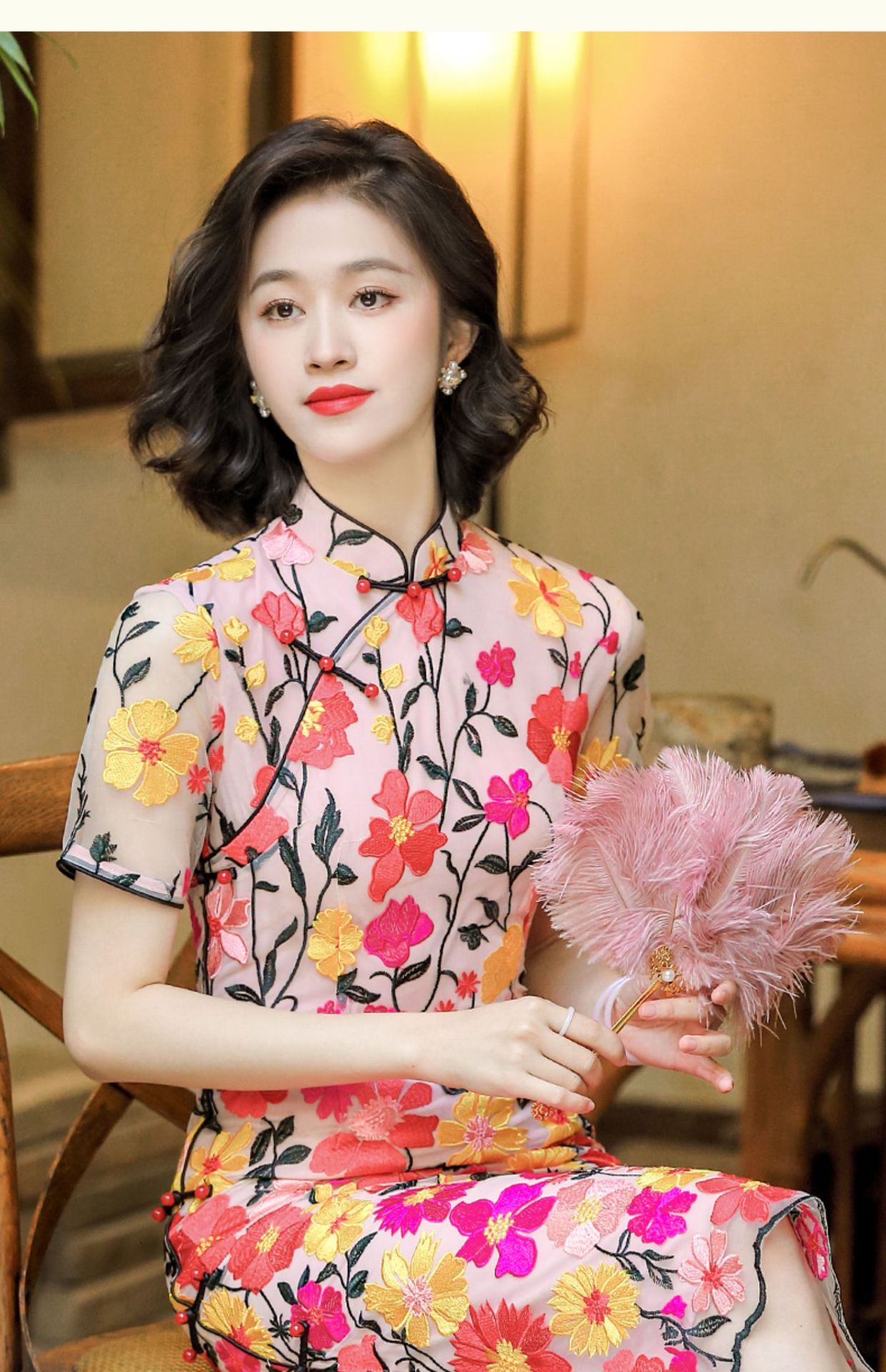 OY-24233中国风女装夏季新款复古中国风刺绣日常改良连衣裙24233