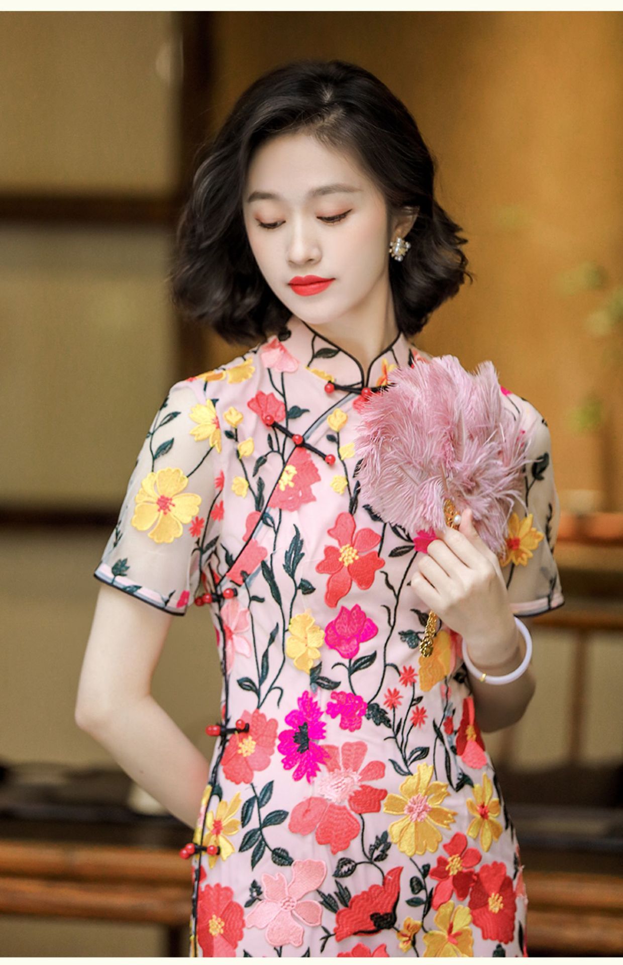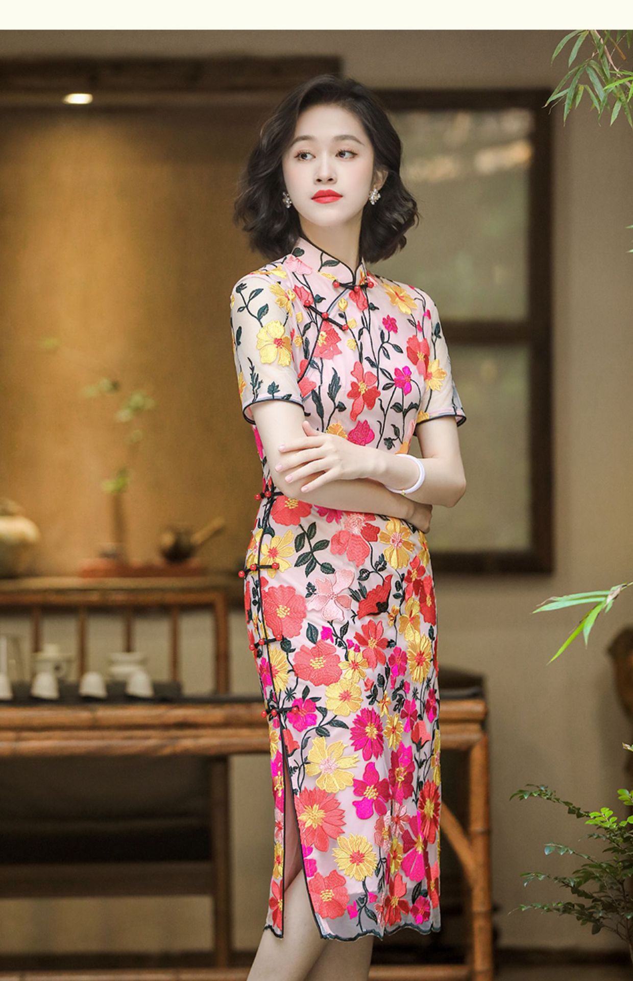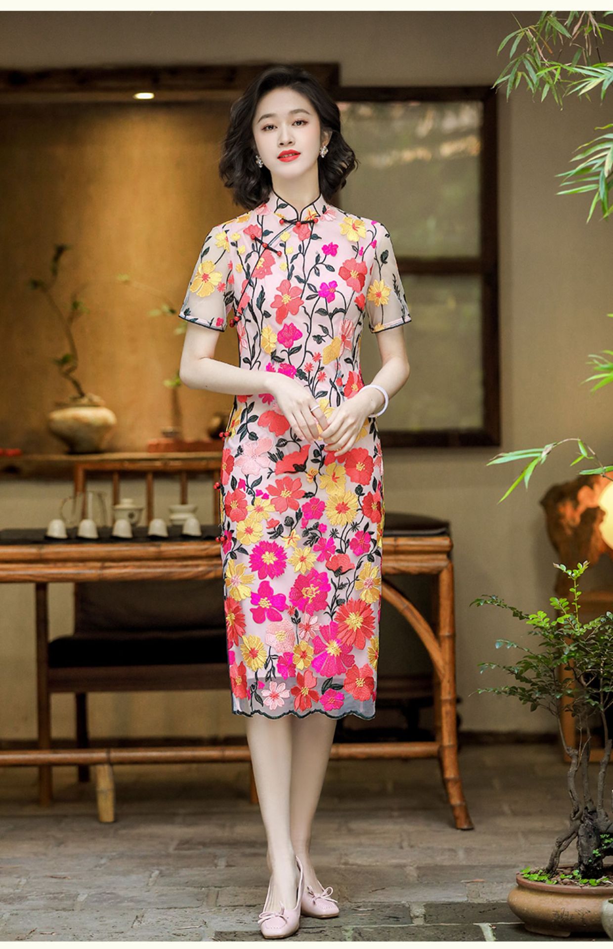 OY-24233中国风女装夏季新款复古中国风刺绣日常改良连衣裙24233