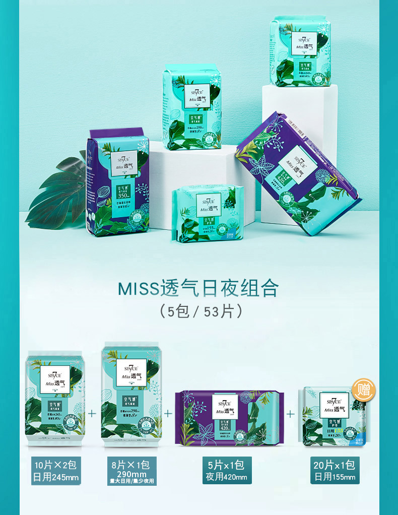 七度空间(SPACE7)Miss透气全周期卫生巾套装4包33片(245mm*20片+290mm*8片+420mm*5片)
