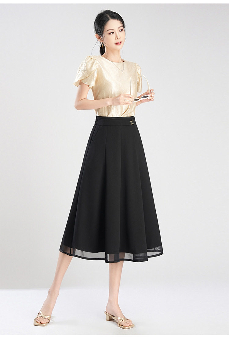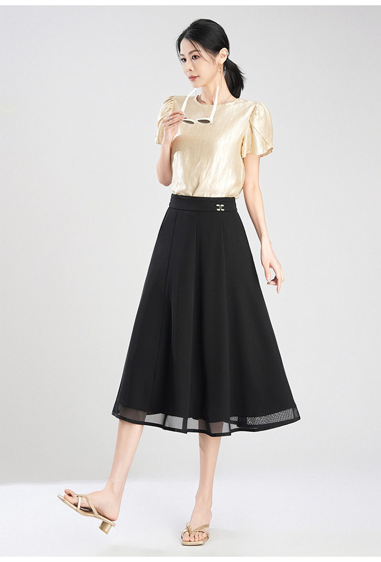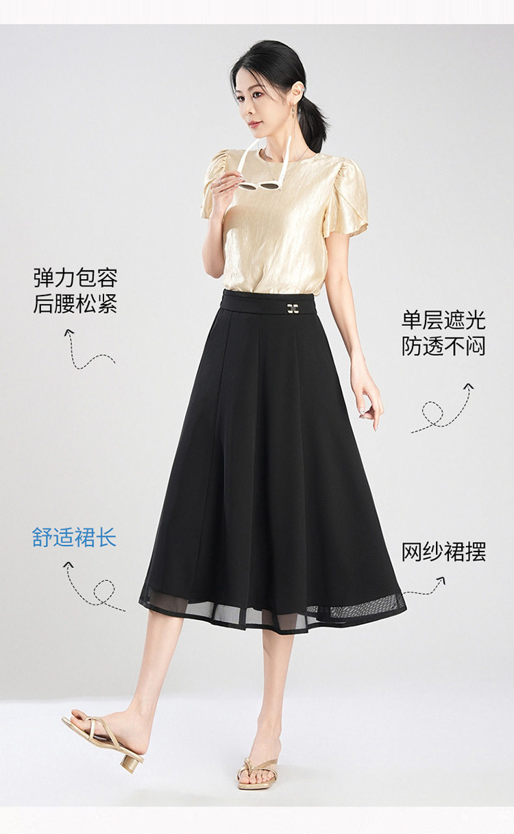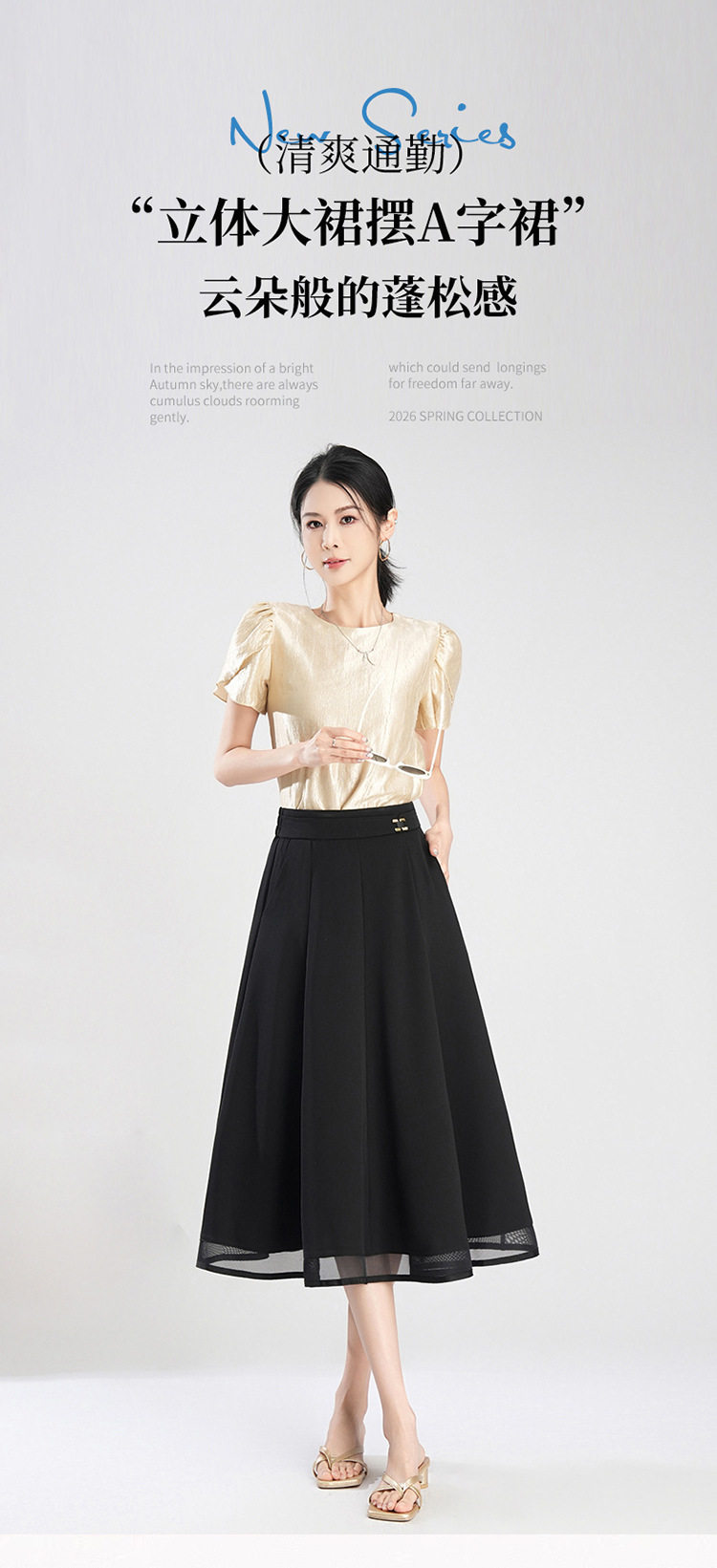 「自」全新升级【铂金会员146/天猫189/差价43】(21008)洛诗琳气质网纱边褶皱半身裙女2026新款高腰中长通A字裙