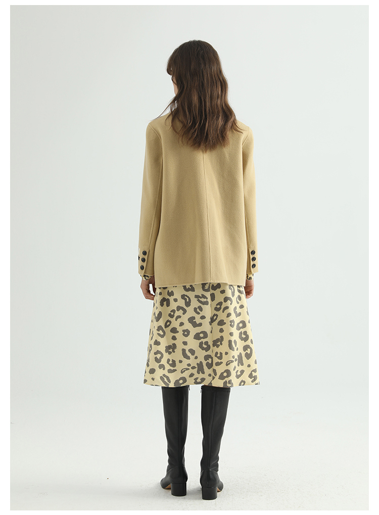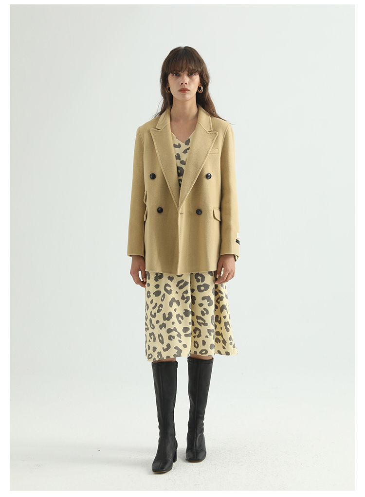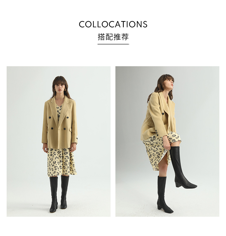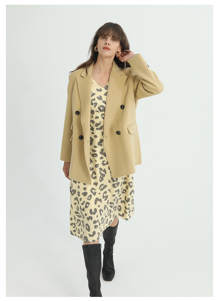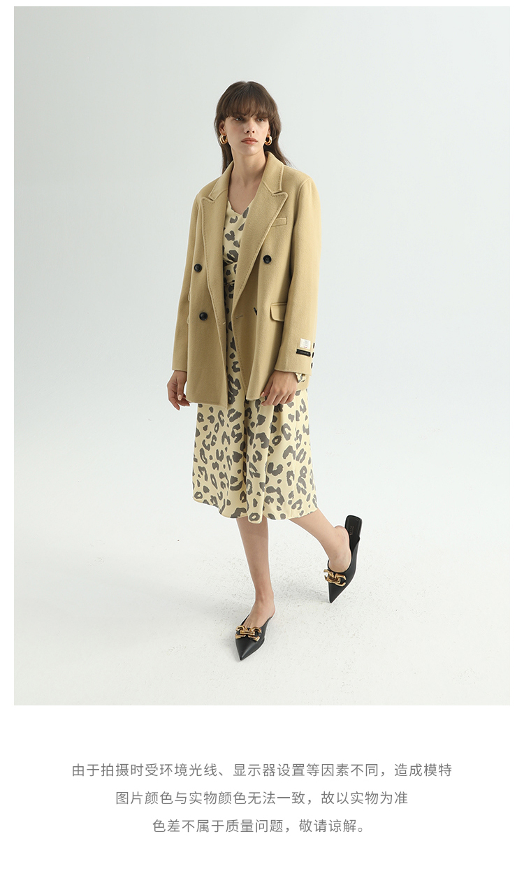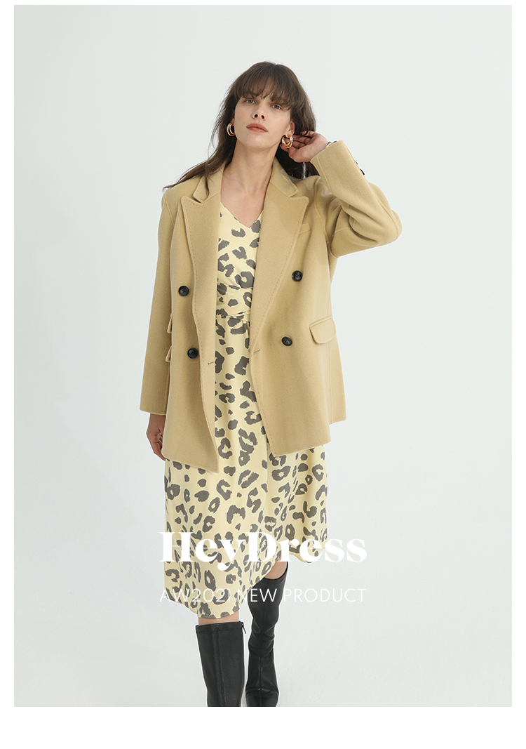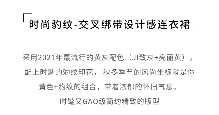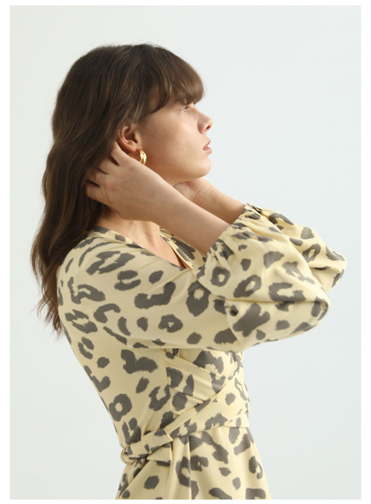 HeyDress豹纹V领连衣裙女收腰显瘦气质中长裙复古灯笼袖裙子