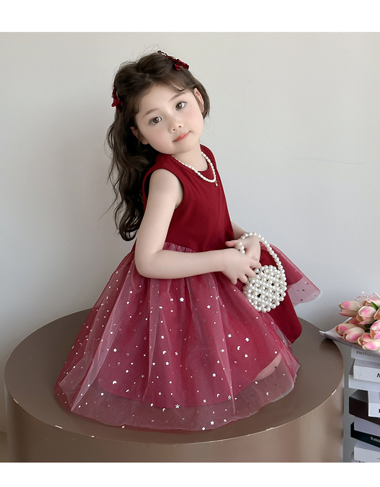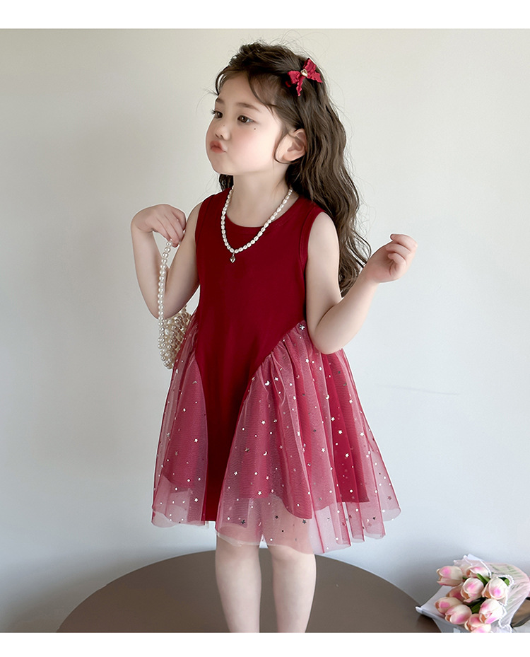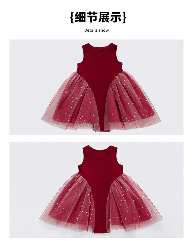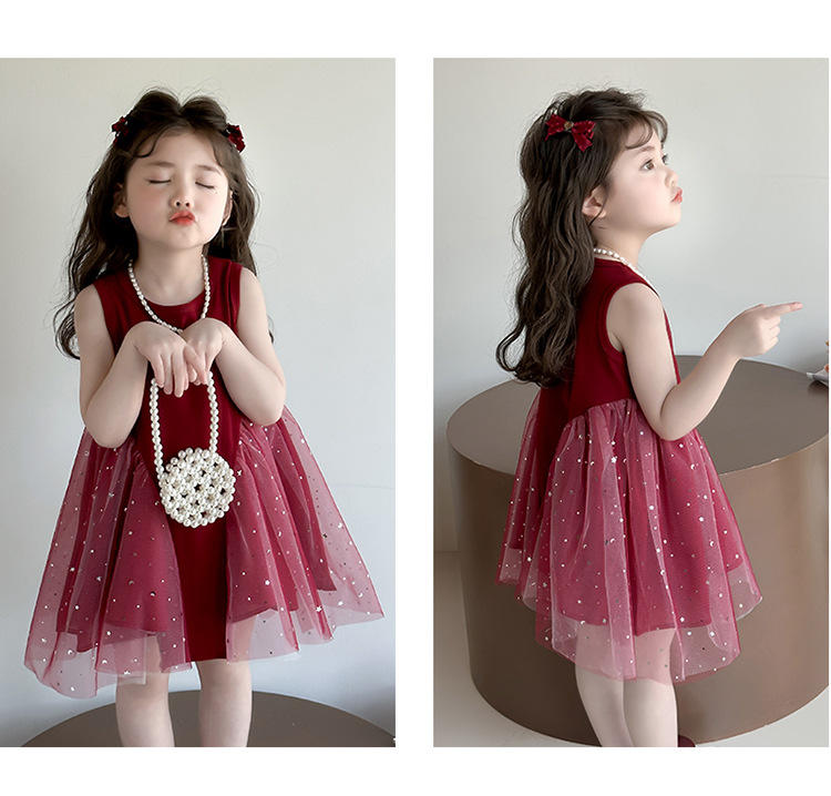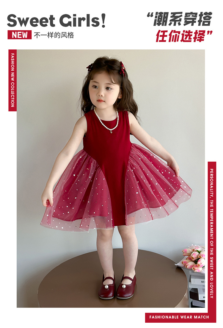 【新款亮晶晶纱裙,生日必备!】女童亮晶晶红纱裙 2025夏季新款 时尚小女孩洋气公主裙 中小儿童裙子-QQ
