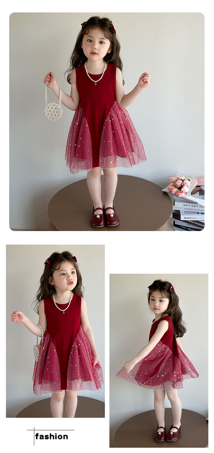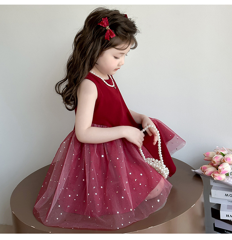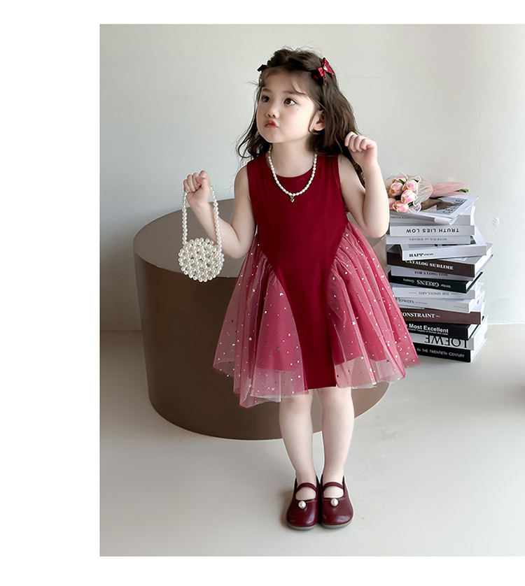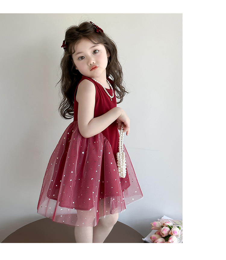 【新款亮晶晶纱裙,生日必备!】女童亮晶晶红纱裙 2025夏季新款 时尚小女孩洋气公主裙 中小儿童裙子-QQ