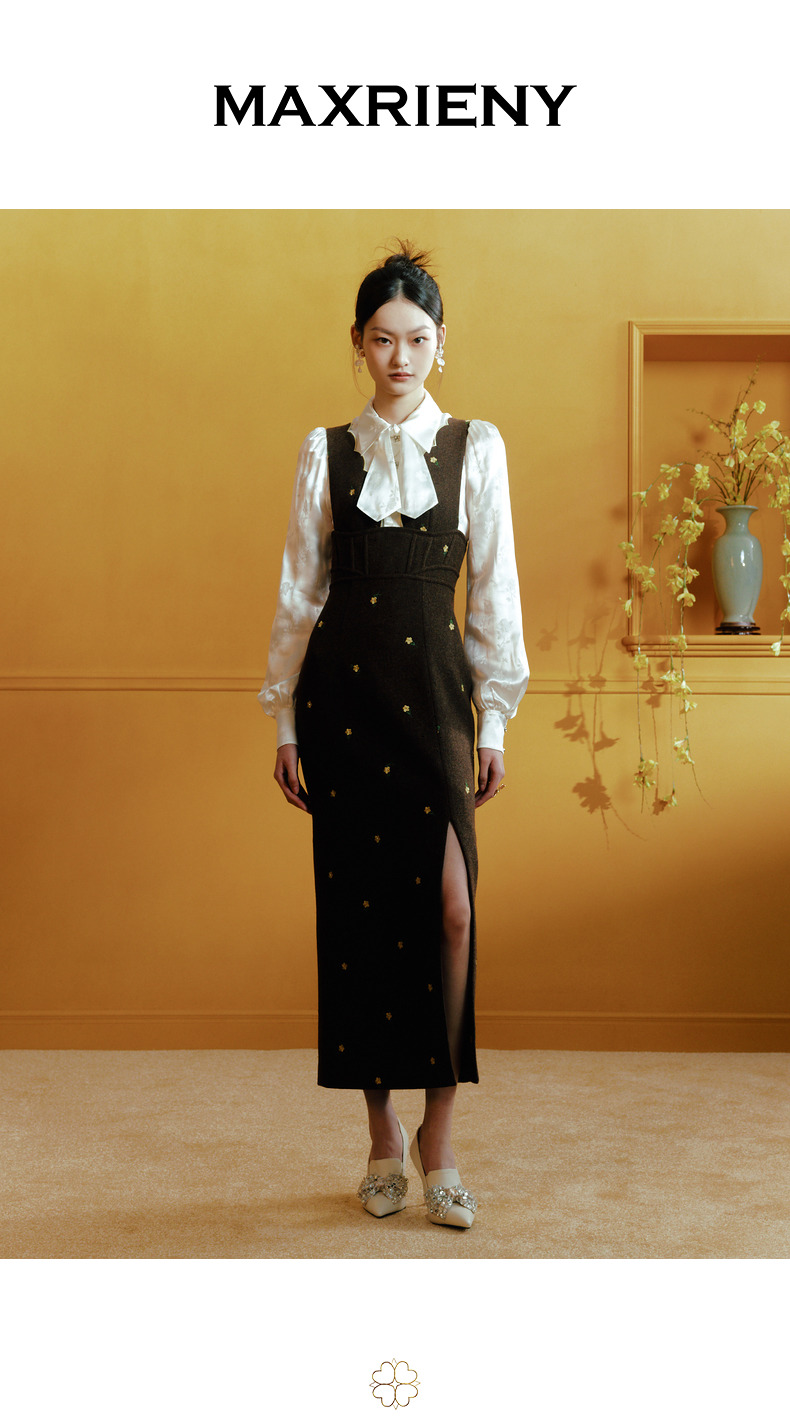 玛克门店发货:MAXRIENY复古宫廷连衣裙开衩裙子(货号:MC88DR775)