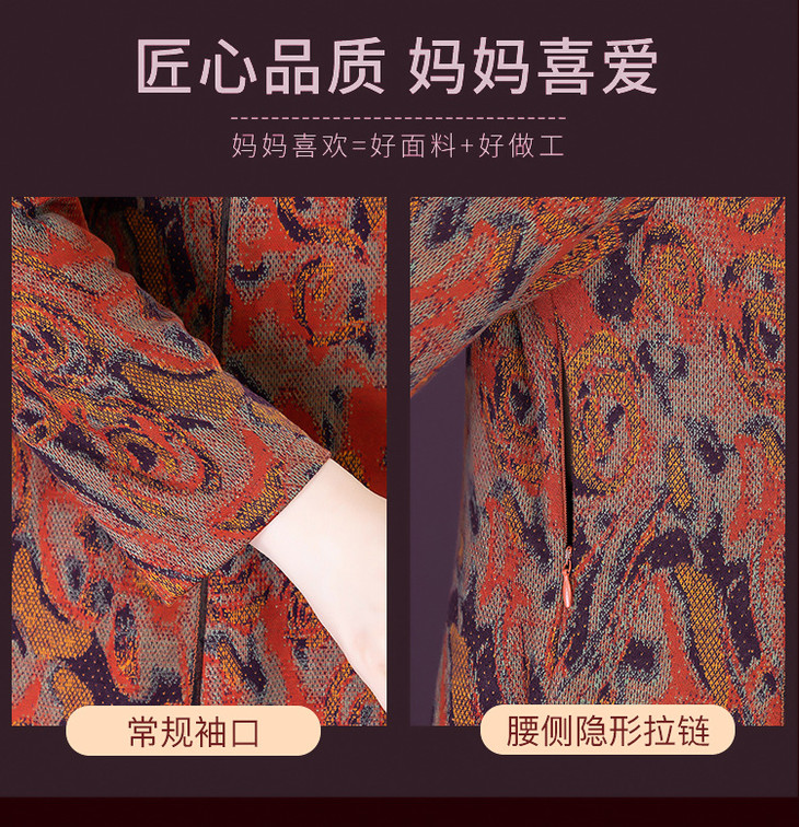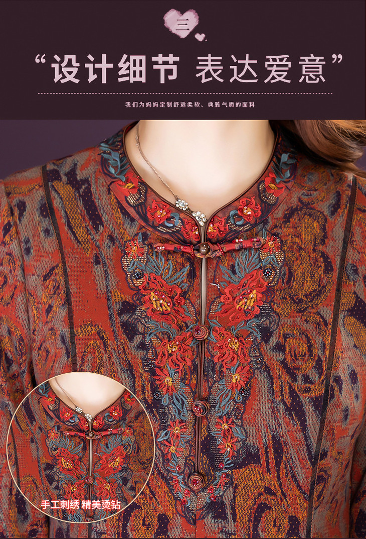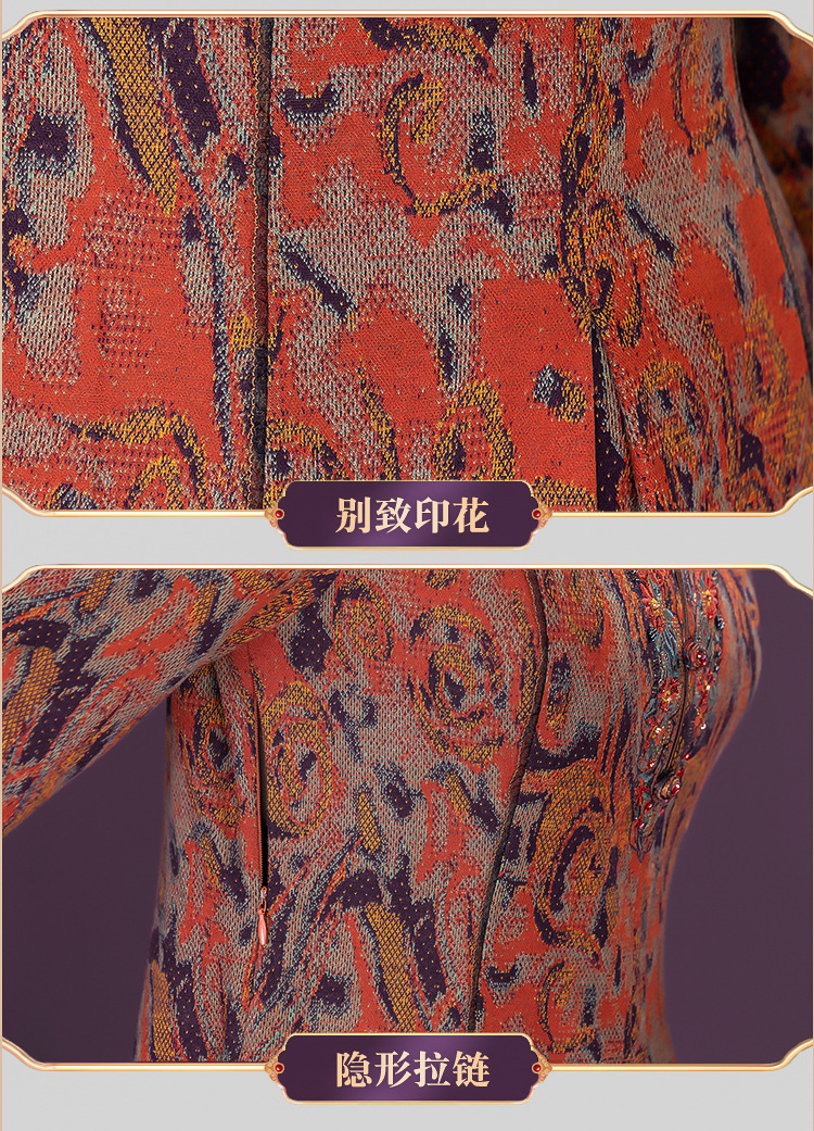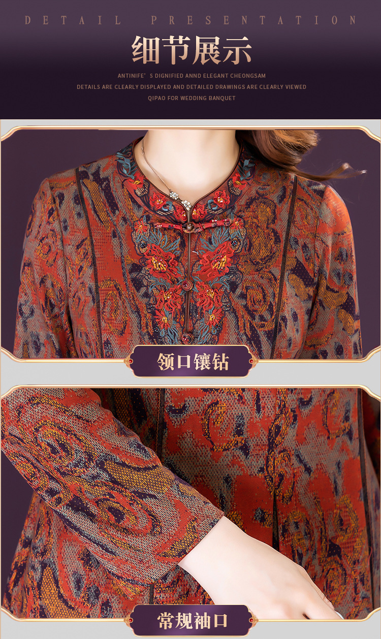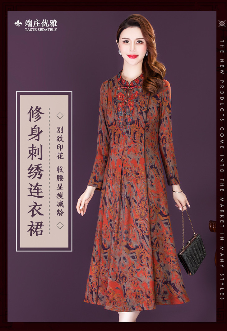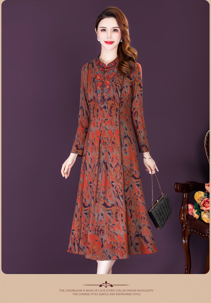 AHM-fyg8647新款复古优雅气质修身立领长袖中长款印花连衣裙