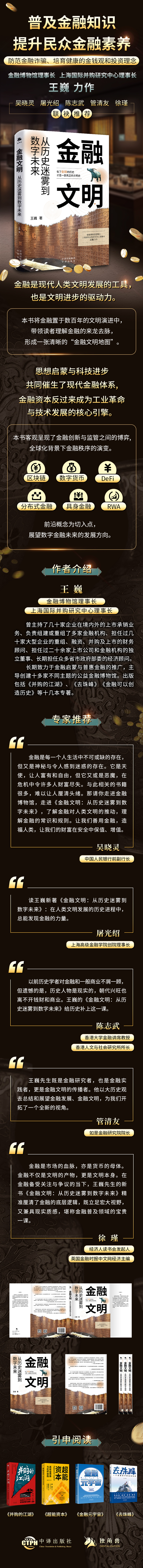 2.本书将金融置于数百年的文明演进中,带领读者理解金融的来龙去脉,形成一张清晰的“金融文明地图”。
