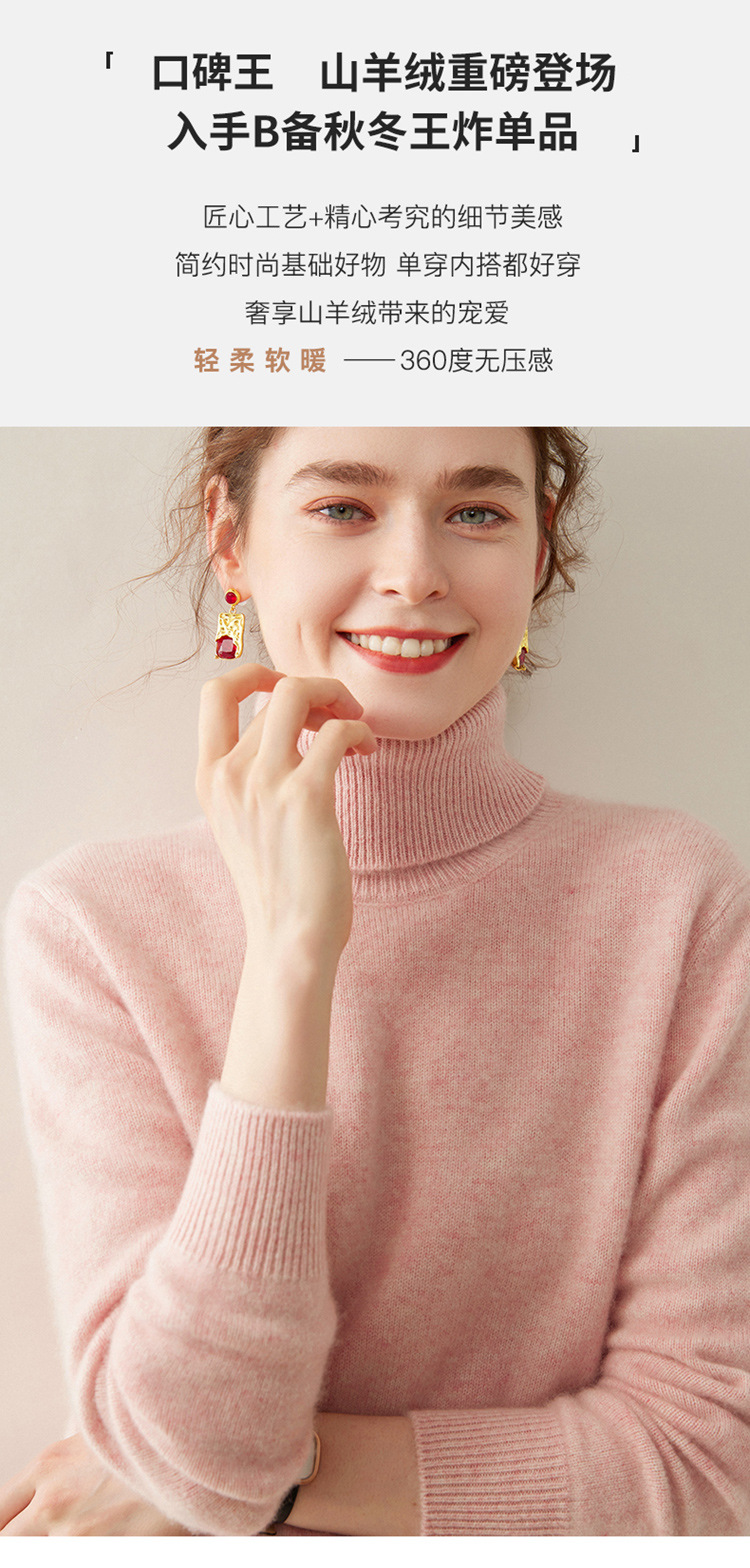 「自」全新升级【铂金会员496/天猫669/差价173】(44906)洛诗琳新款重工双股100羊绒衫2025秋冬优雅加厚高领毛衣女