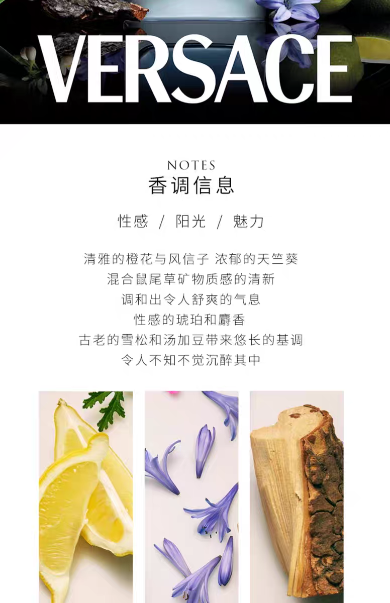 Versace范思哲经典同名男士香水100ml淡香(简装带喷头无盖) 跨境购