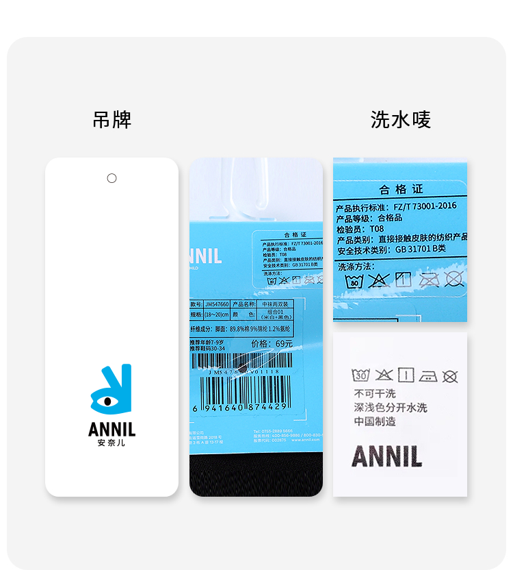 女童男童中袜两双装冬季新款安奈儿童装JM547660