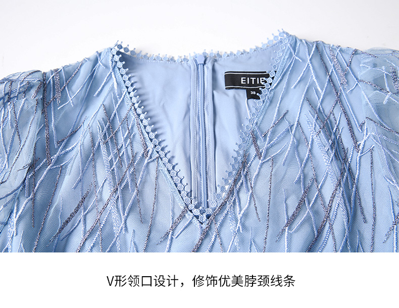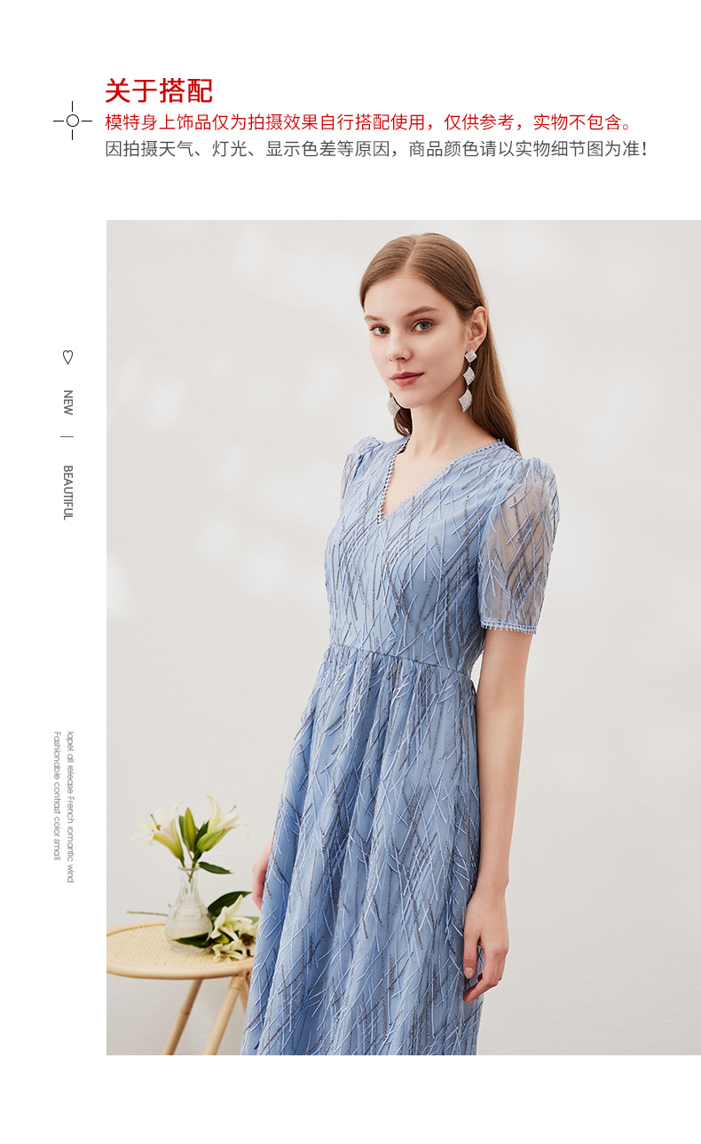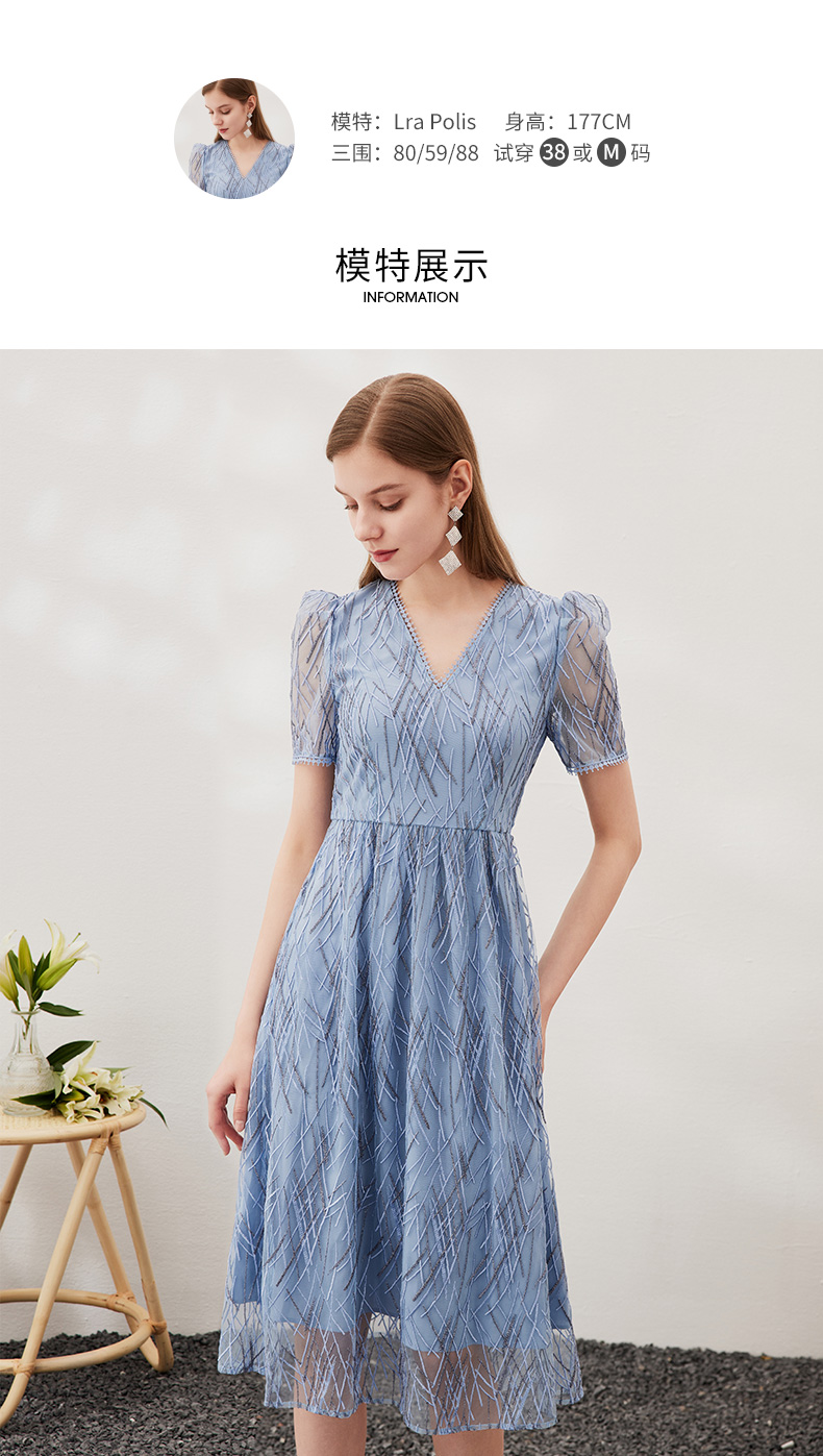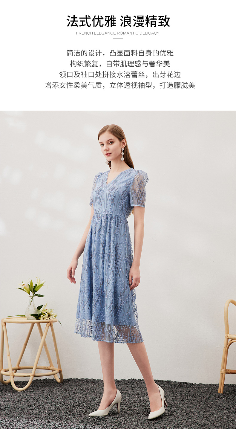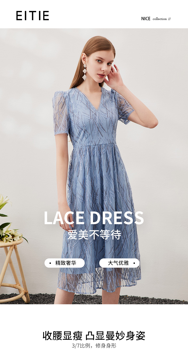 EITIE爱特爱春季新款优雅修身显瘦V领蕾丝拼接连衣裙女7007721