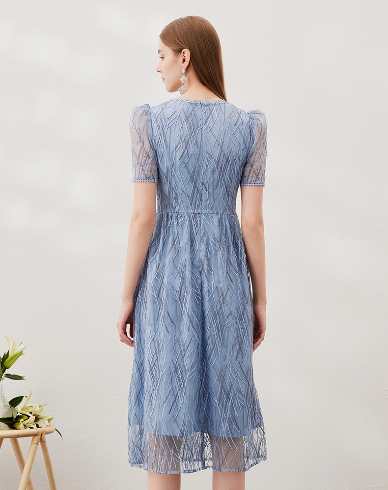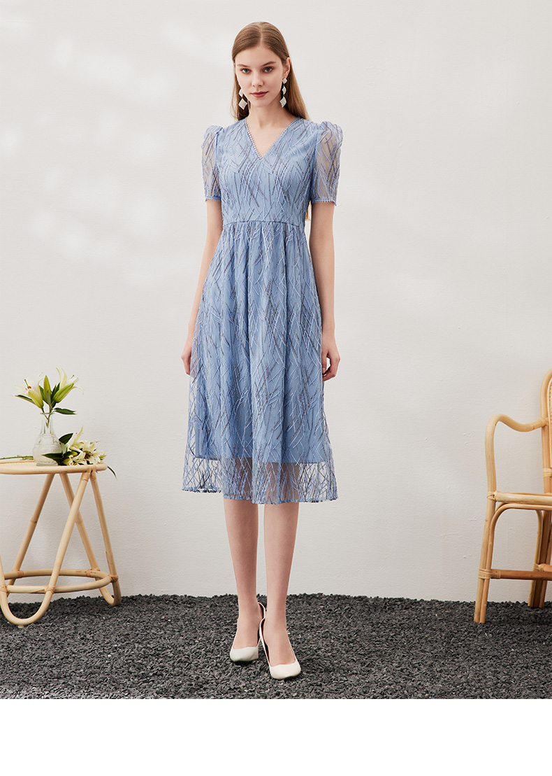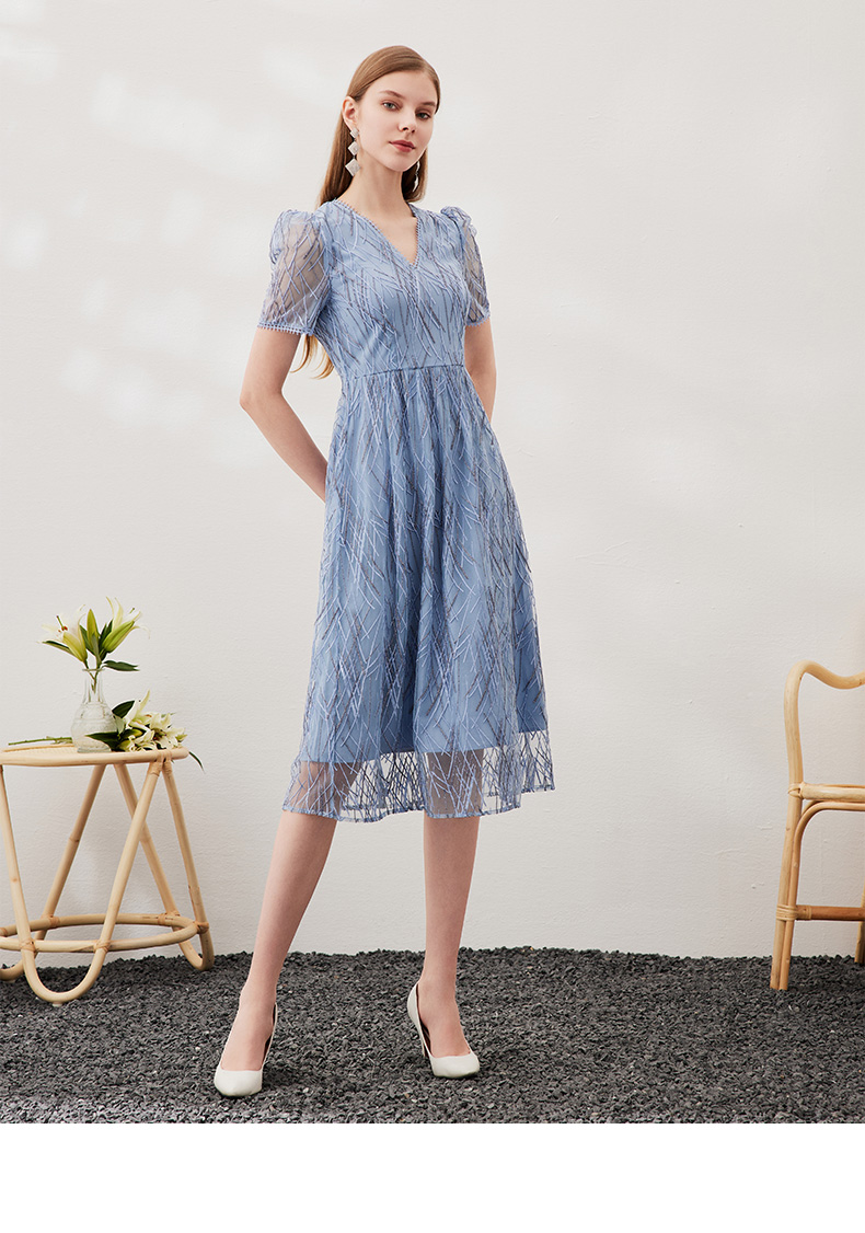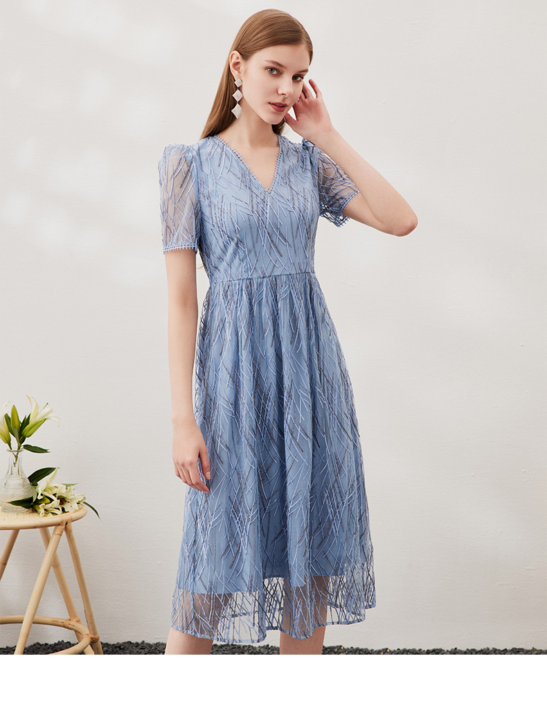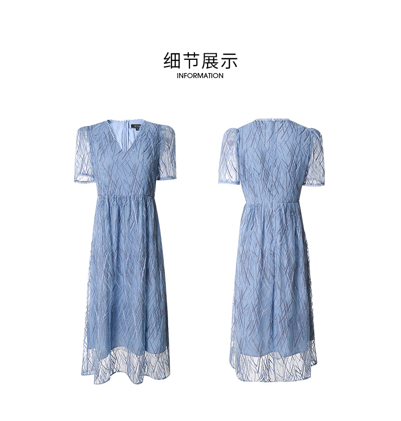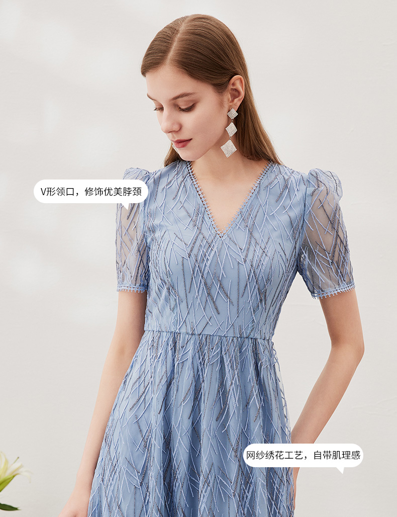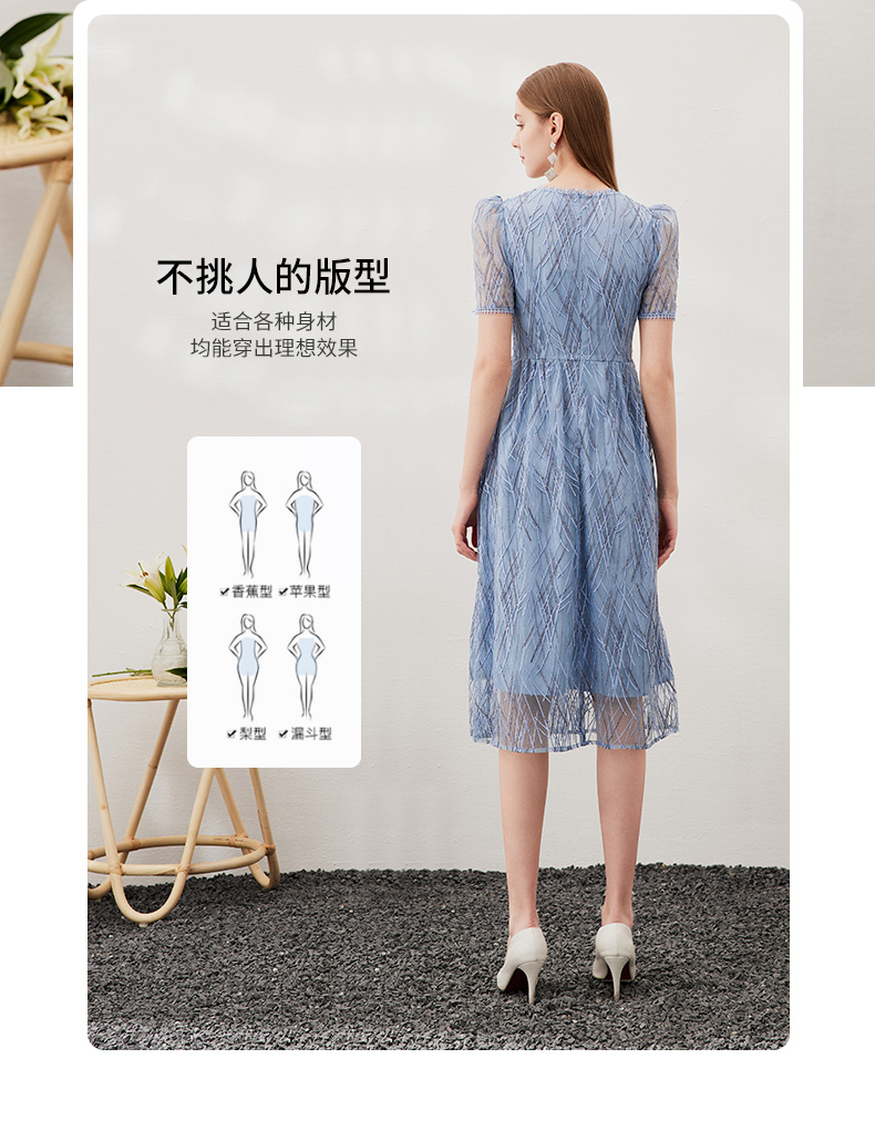 EITIE爱特爱春季新款优雅修身显瘦V领蕾丝拼接连衣裙女7007721