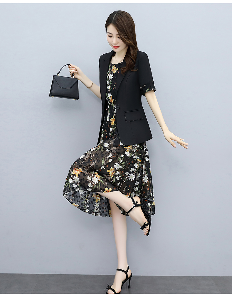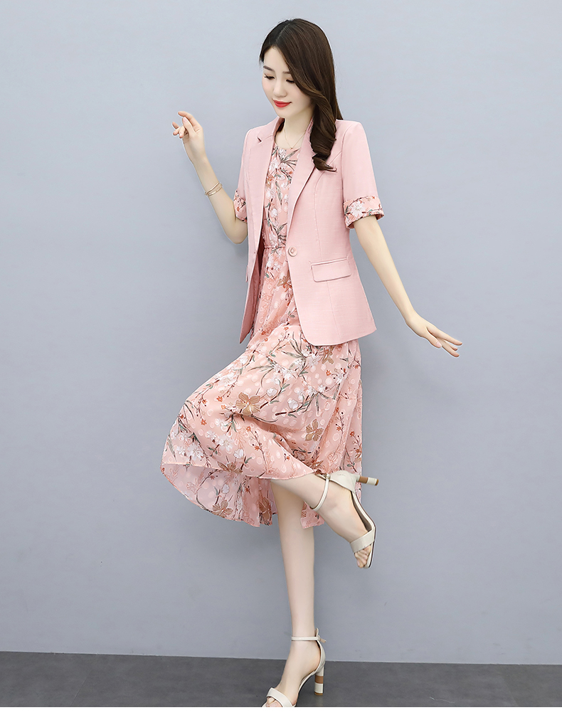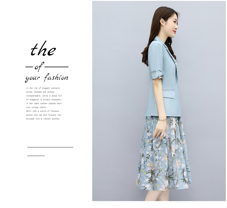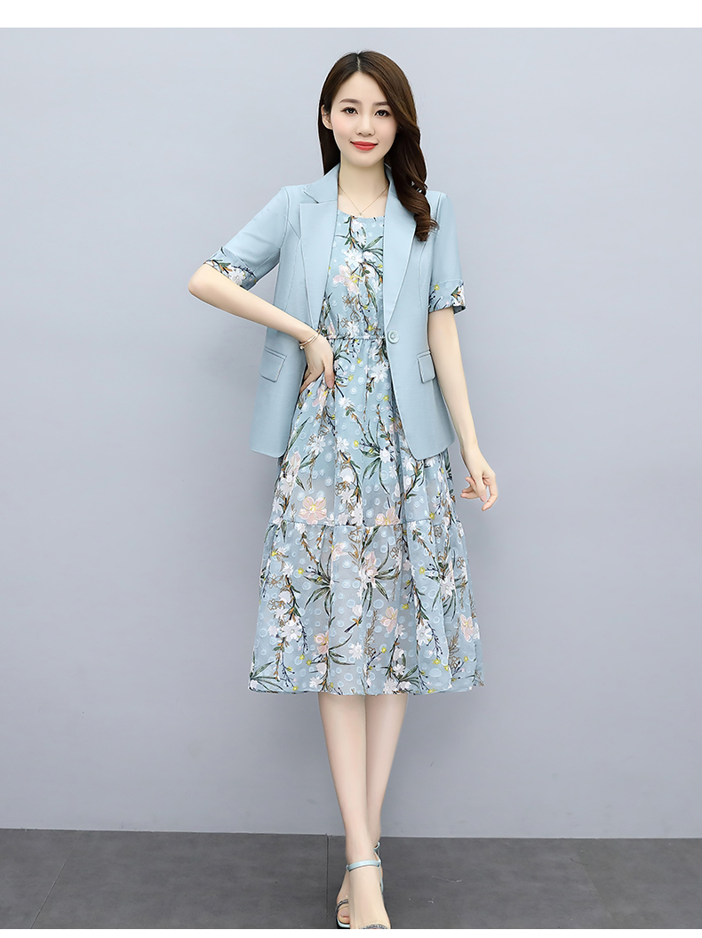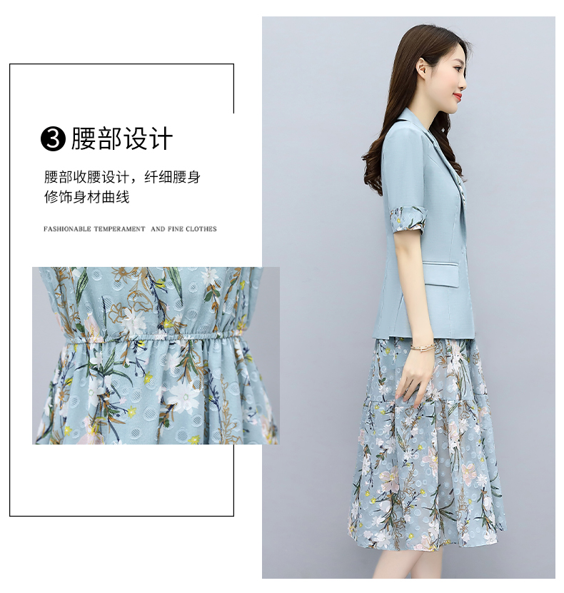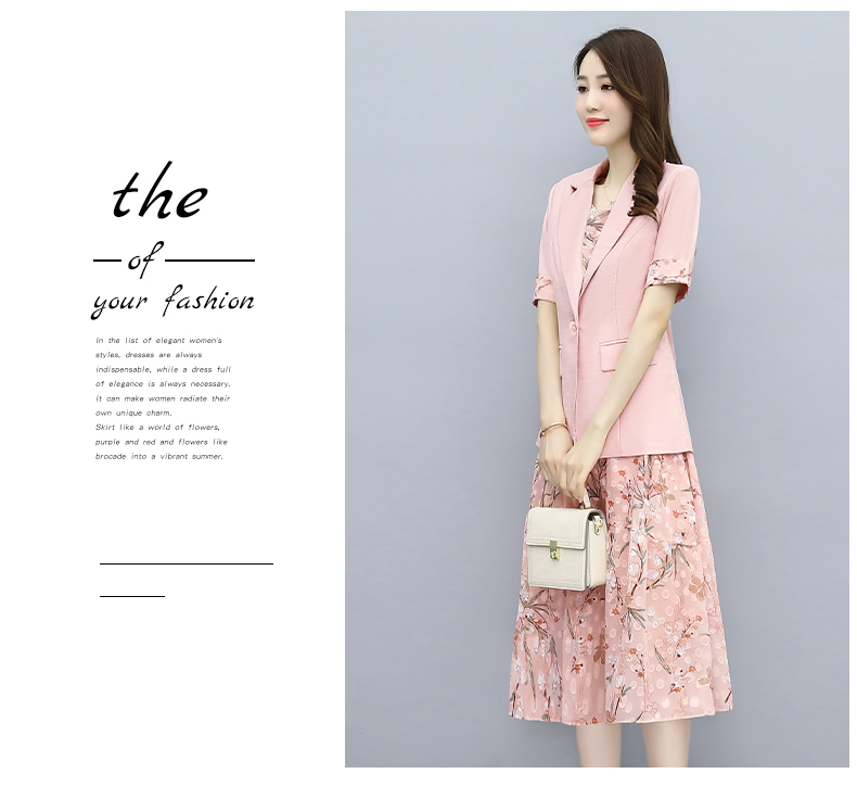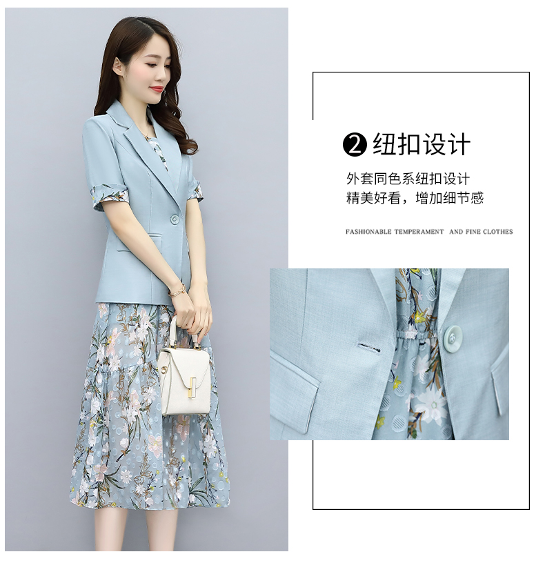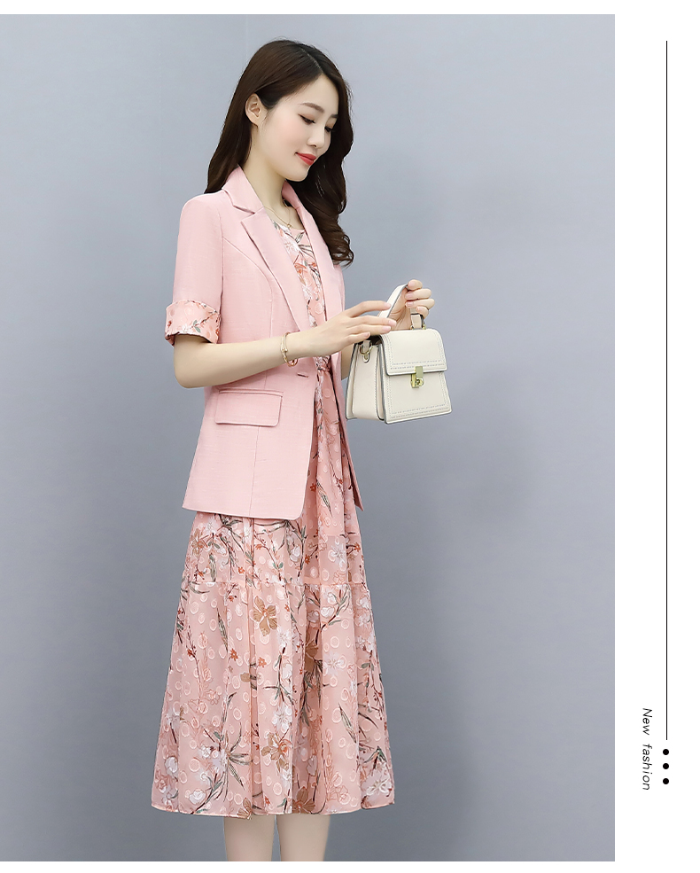 简约时尚,休闲西装外套+圆领花色连衣裙两件套HRYZ7296