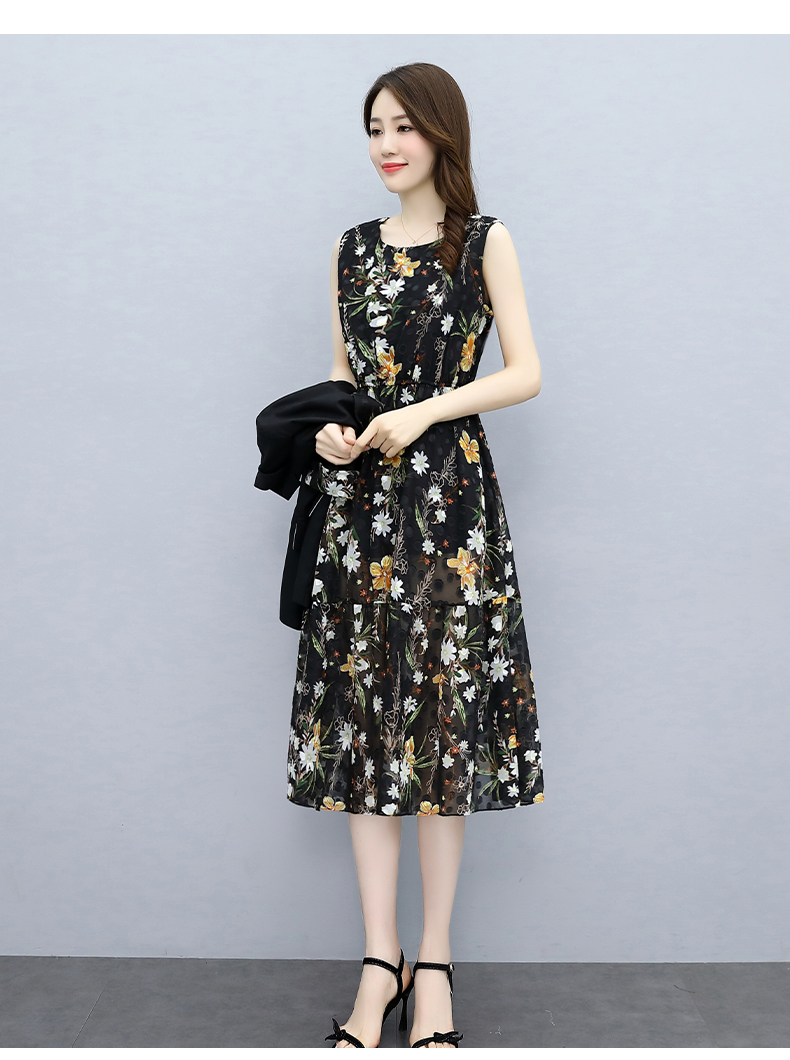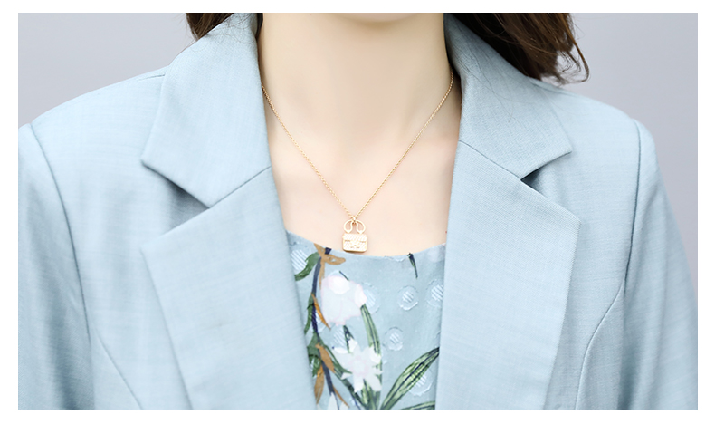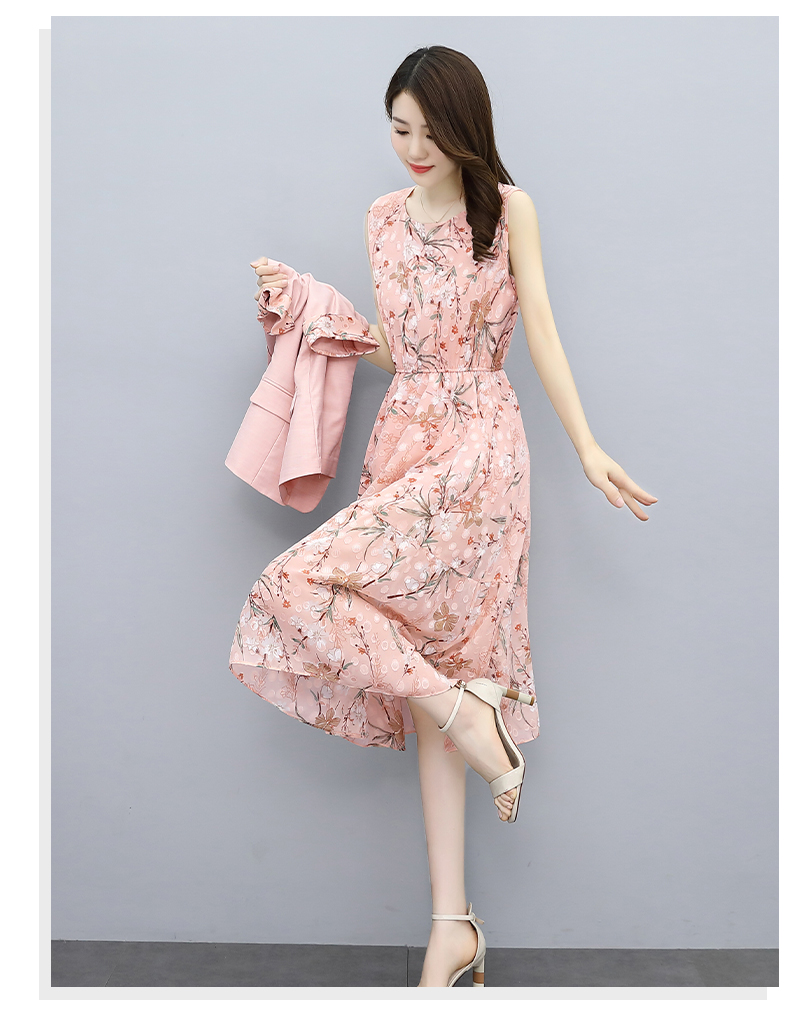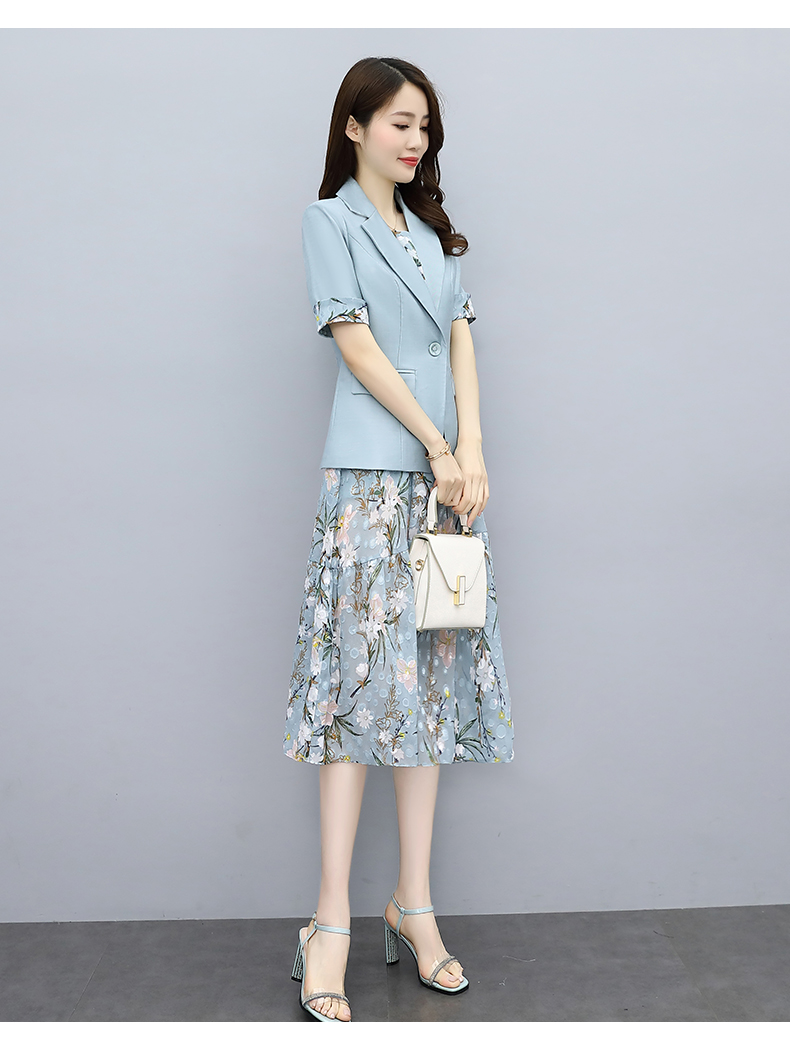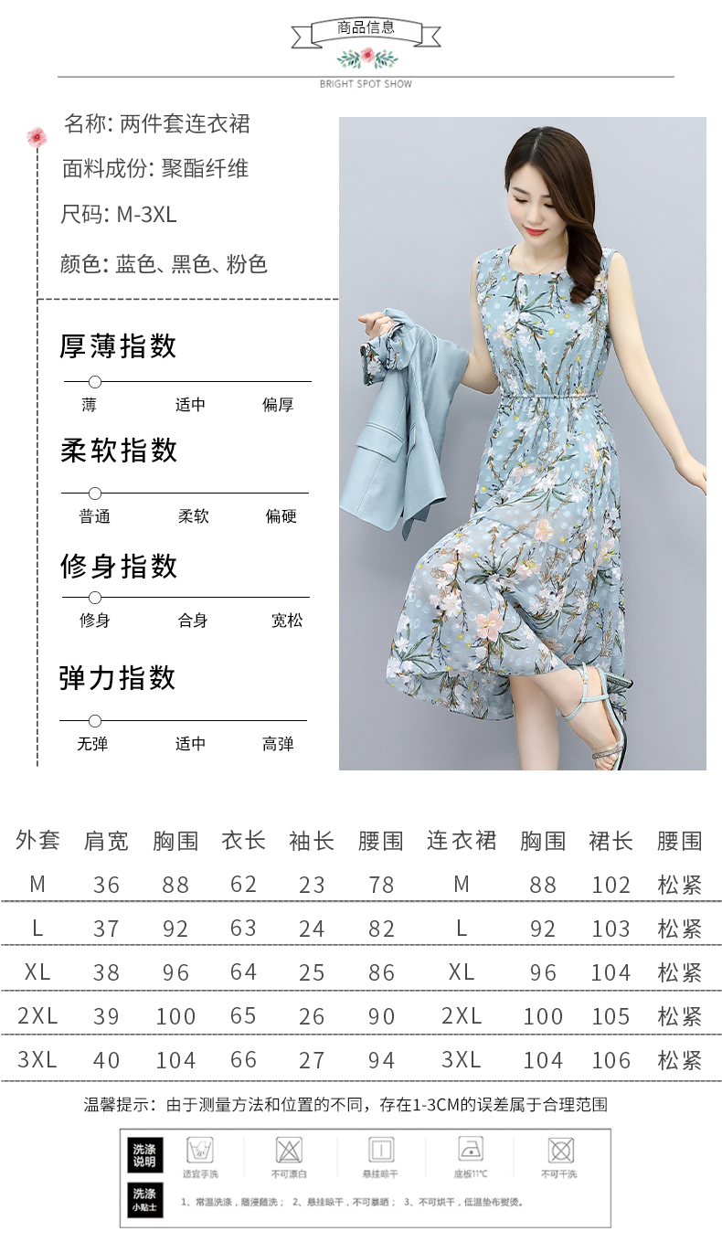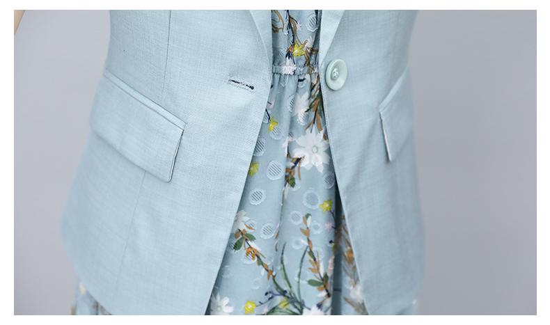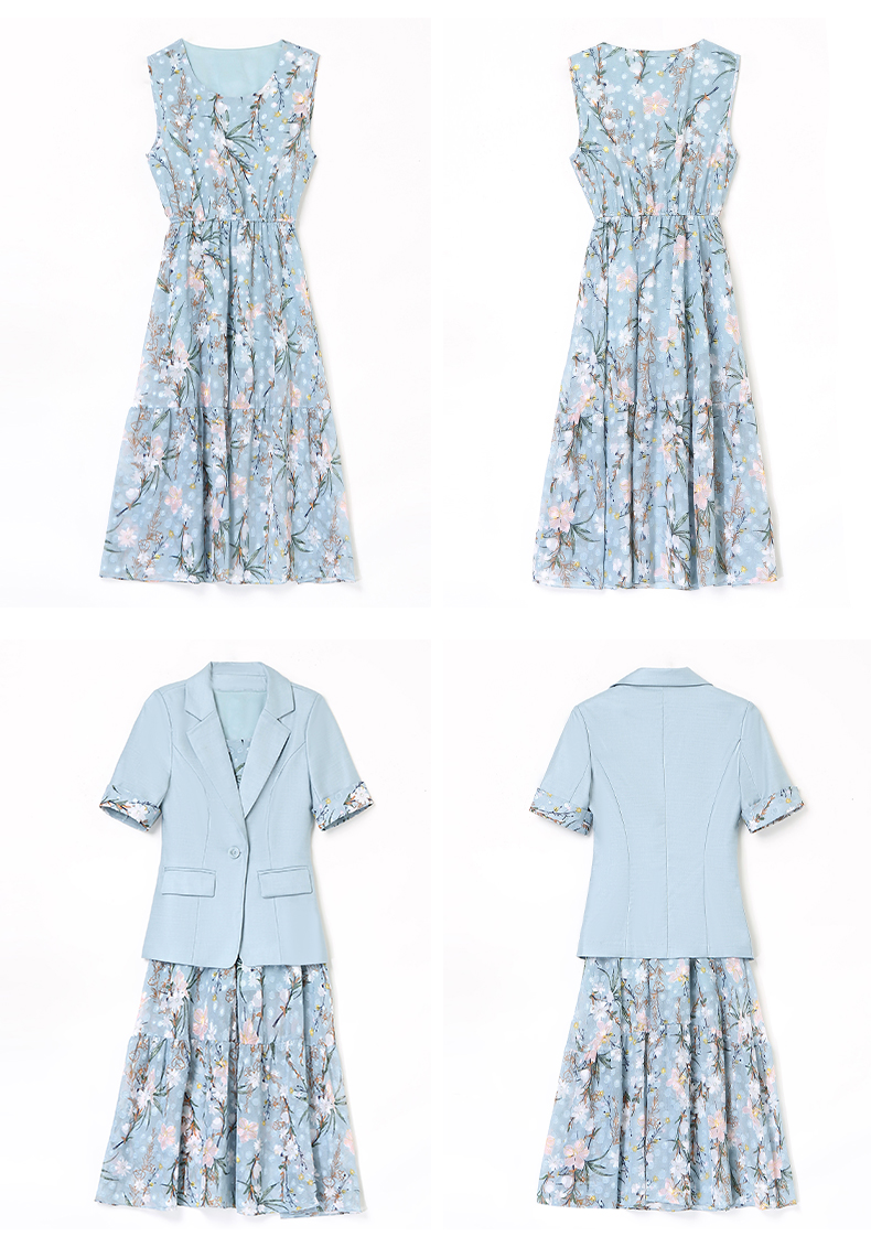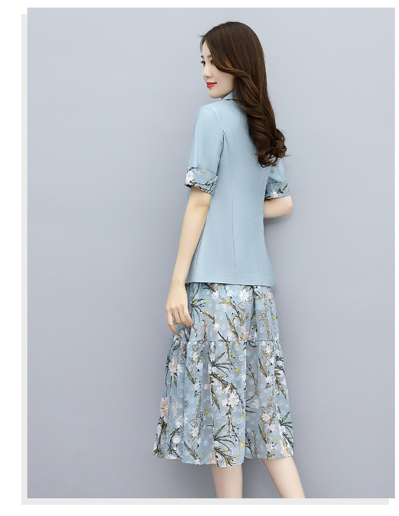 简约时尚,休闲西装外套+圆领花色连衣裙两件套HRYZ7296