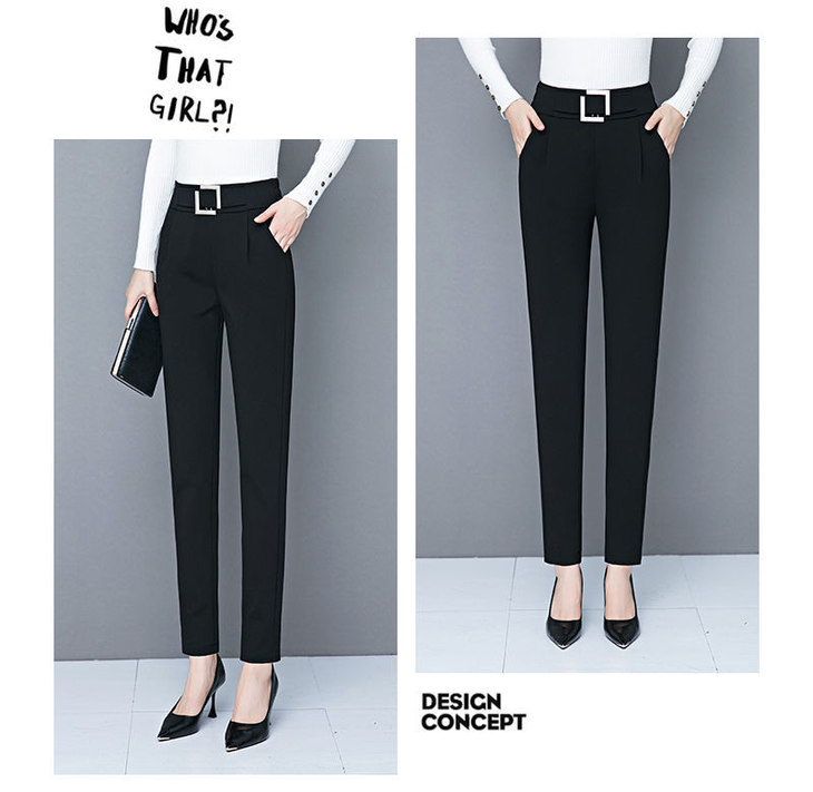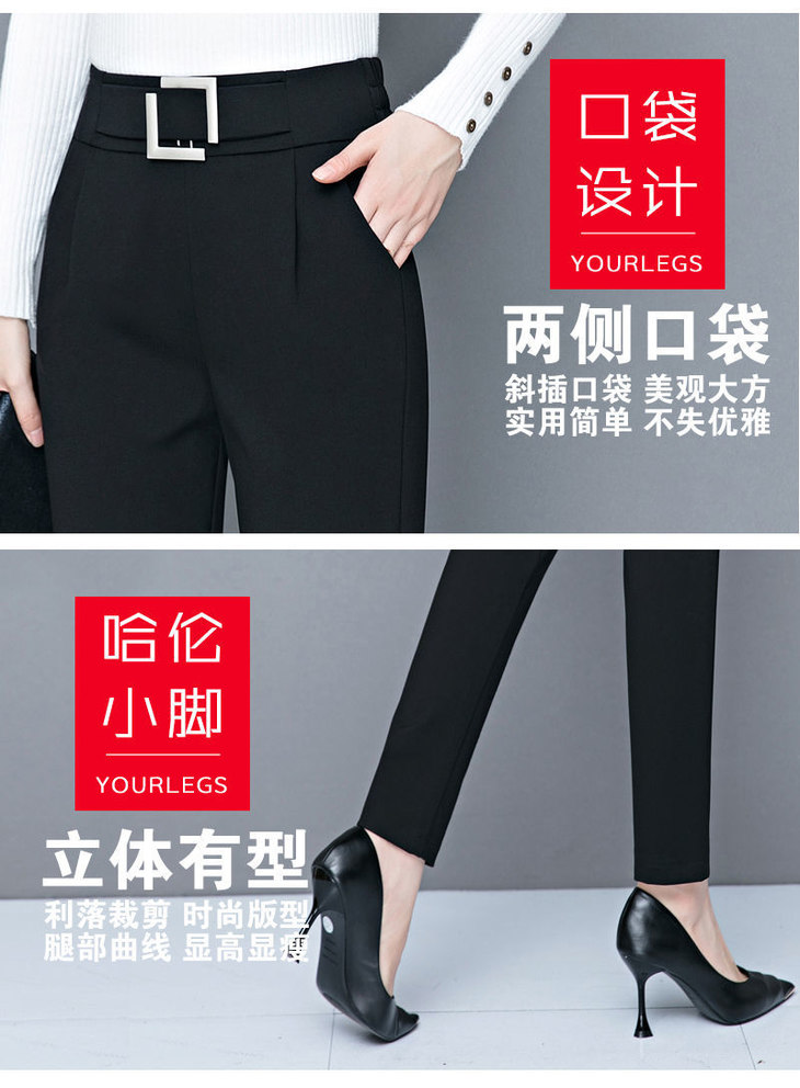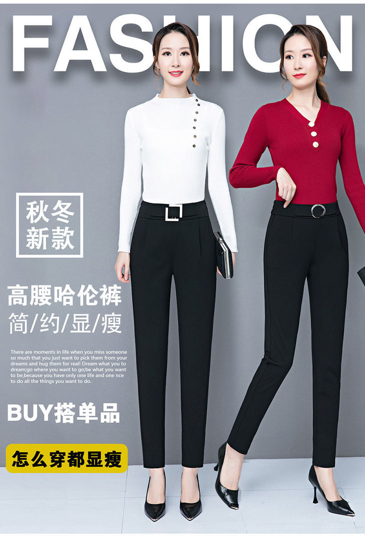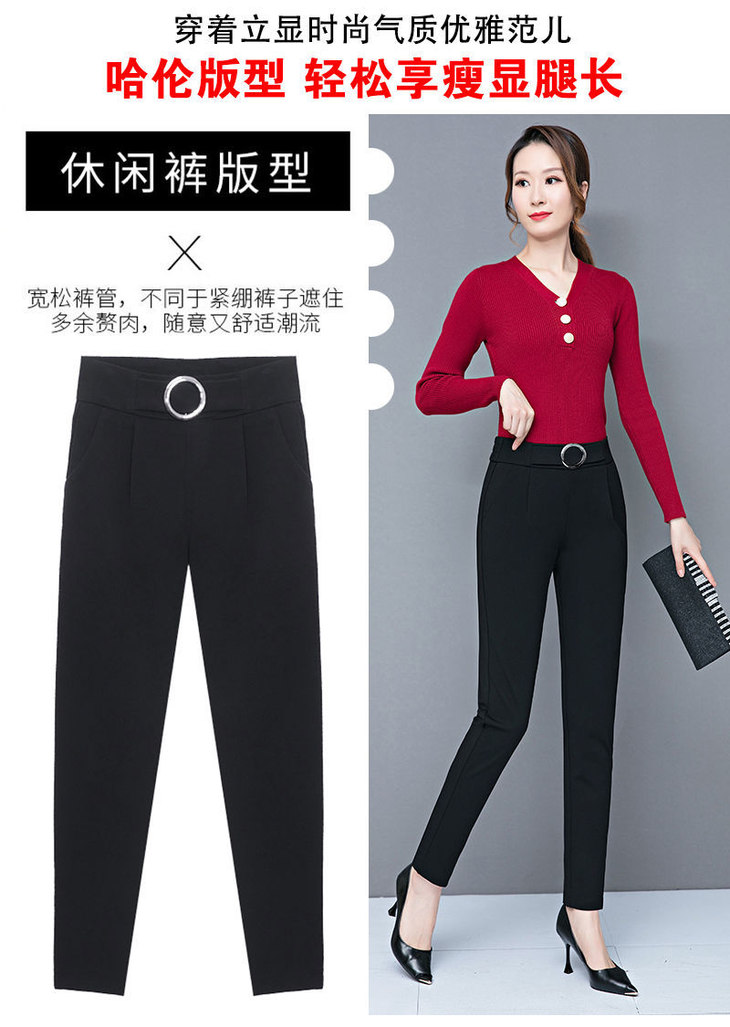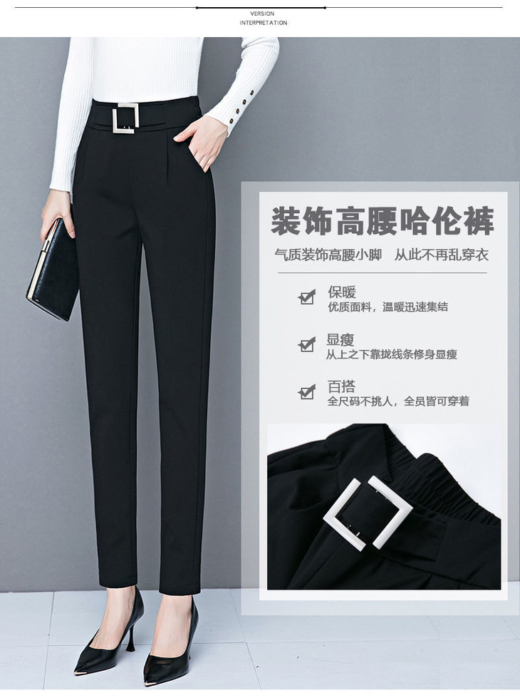 TZMZ-秋冬新款加绒加厚大码裤子女宽松显瘦高腰松紧洋气休闲哈伦打底裤