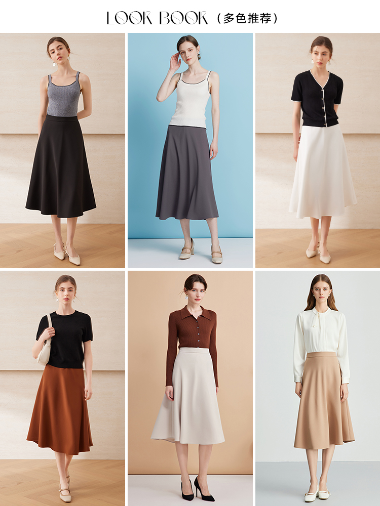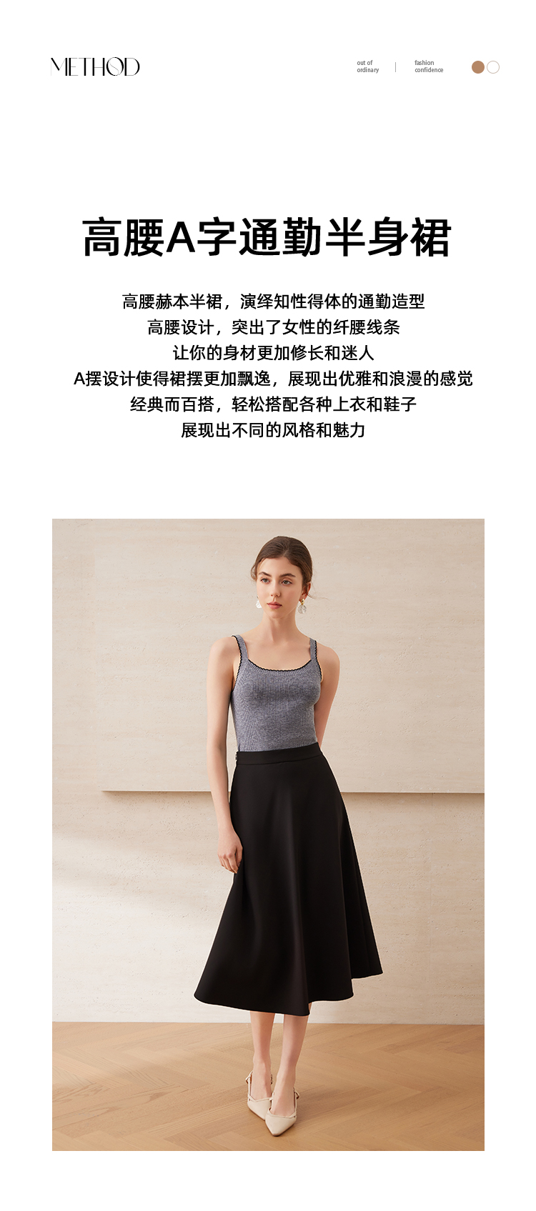 EITIE爱特爱经典伞裙高腰A字通勤OL百搭显瘦半身裙春新款A2506523
