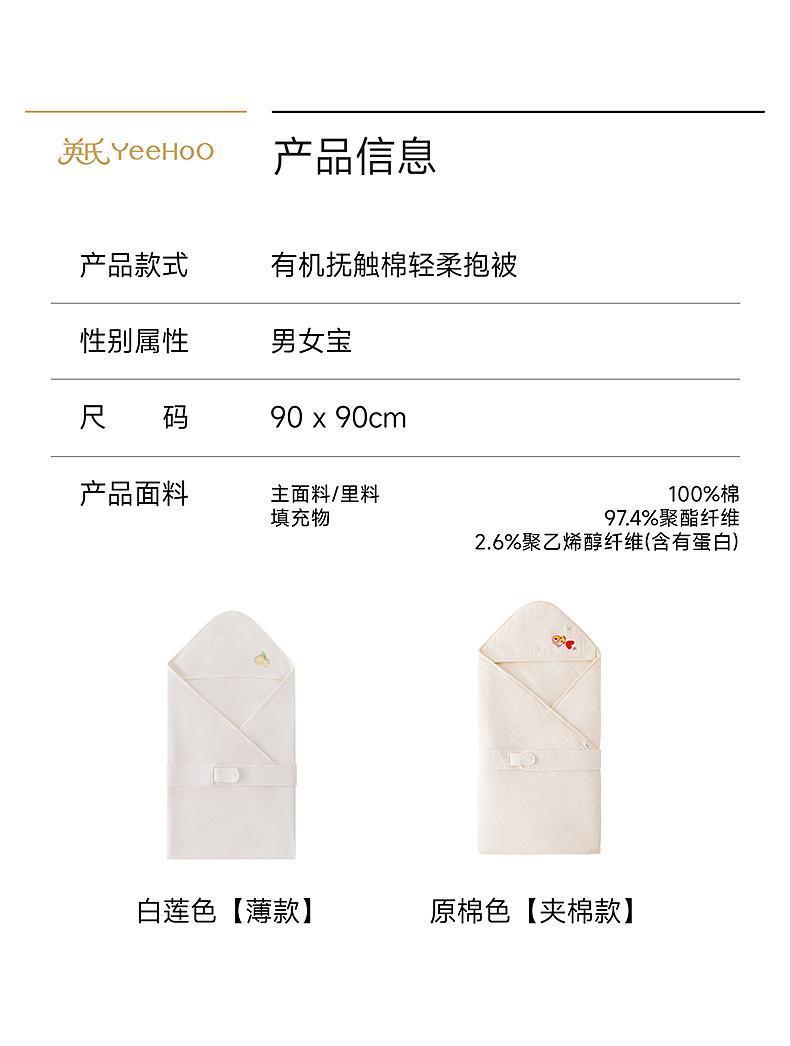 【商场同款】英氏婴儿抱被男宝女宝四季纯棉抱毯新生儿包单新款