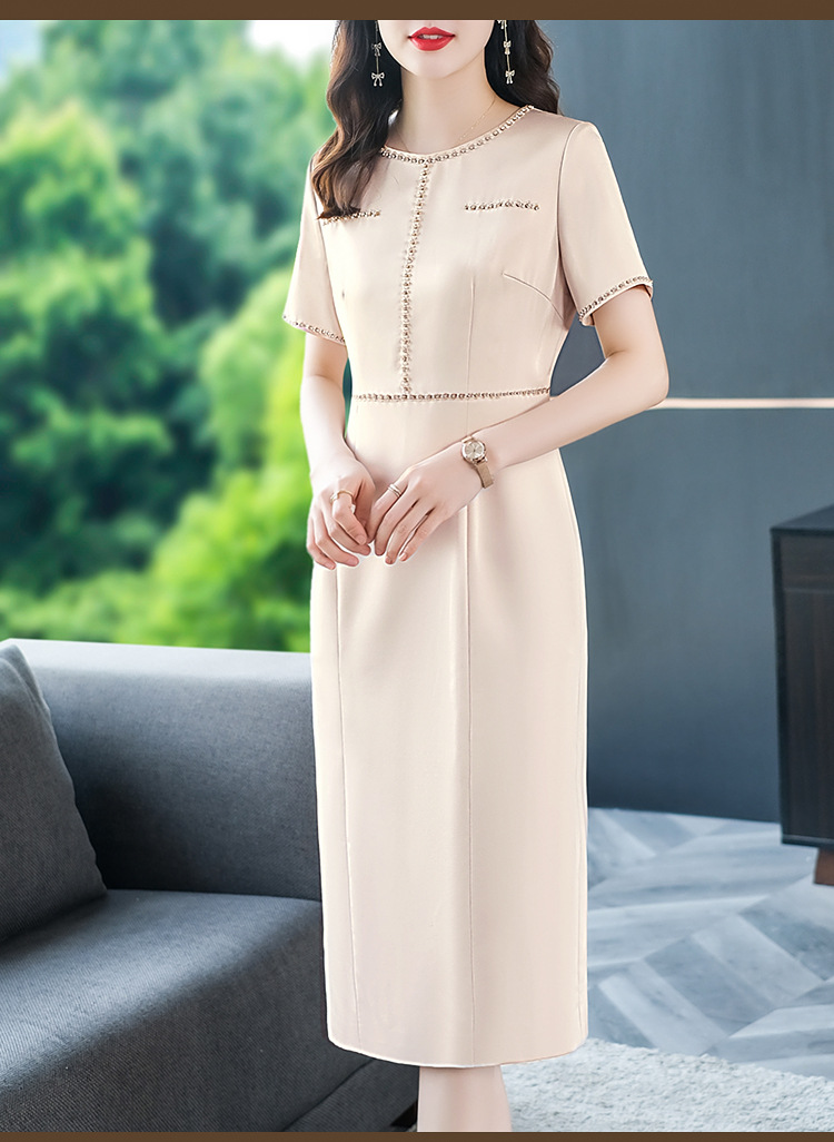 新款婚宴礼服妈妈装连衣裙,婚宴敬酒服重工钉珠收腰显瘦裙YMR-8709